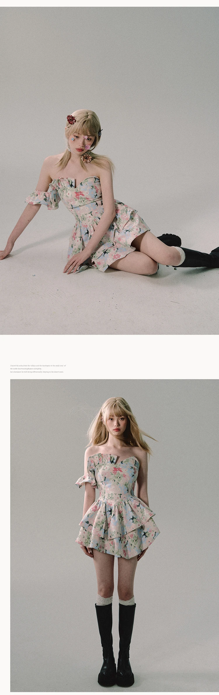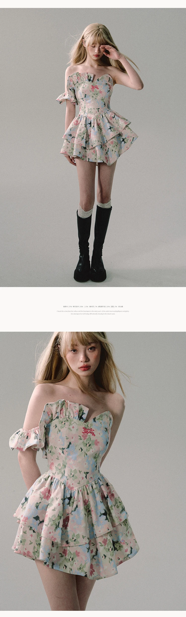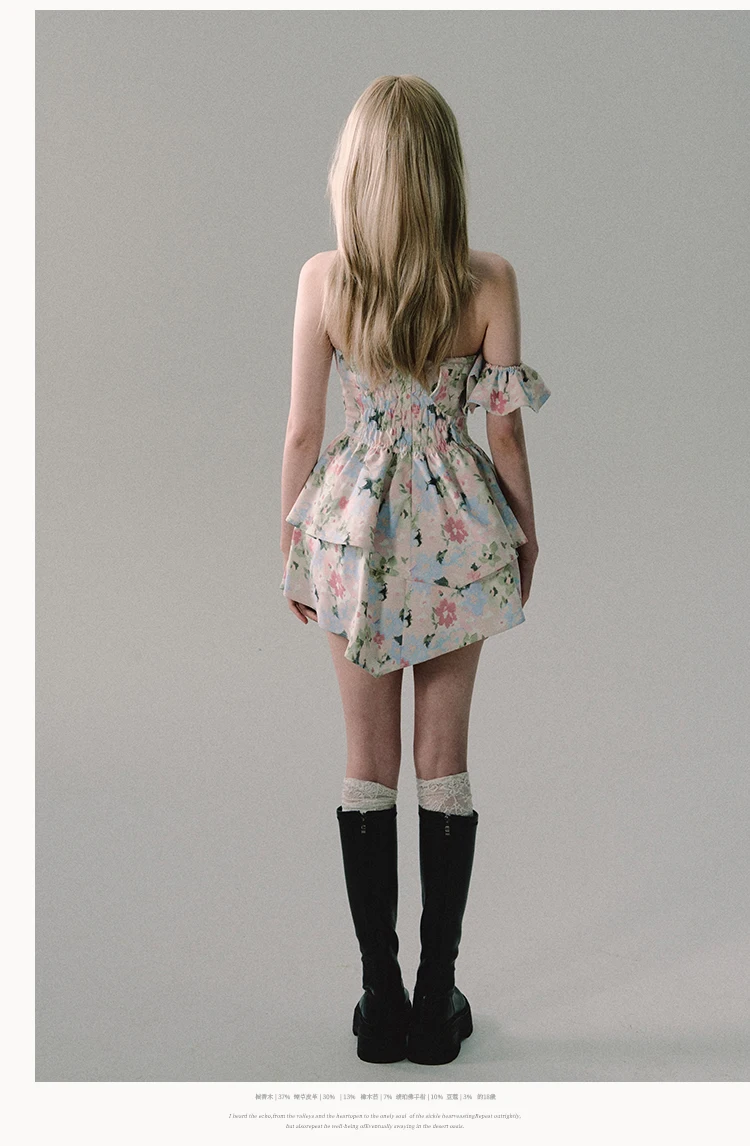 Daiiibabyyy High Quality "If Flowers Tear" Haute Couture Irregular Temperament Dress Women Autumn Winter Floral Short Dress Streetwear Y2k