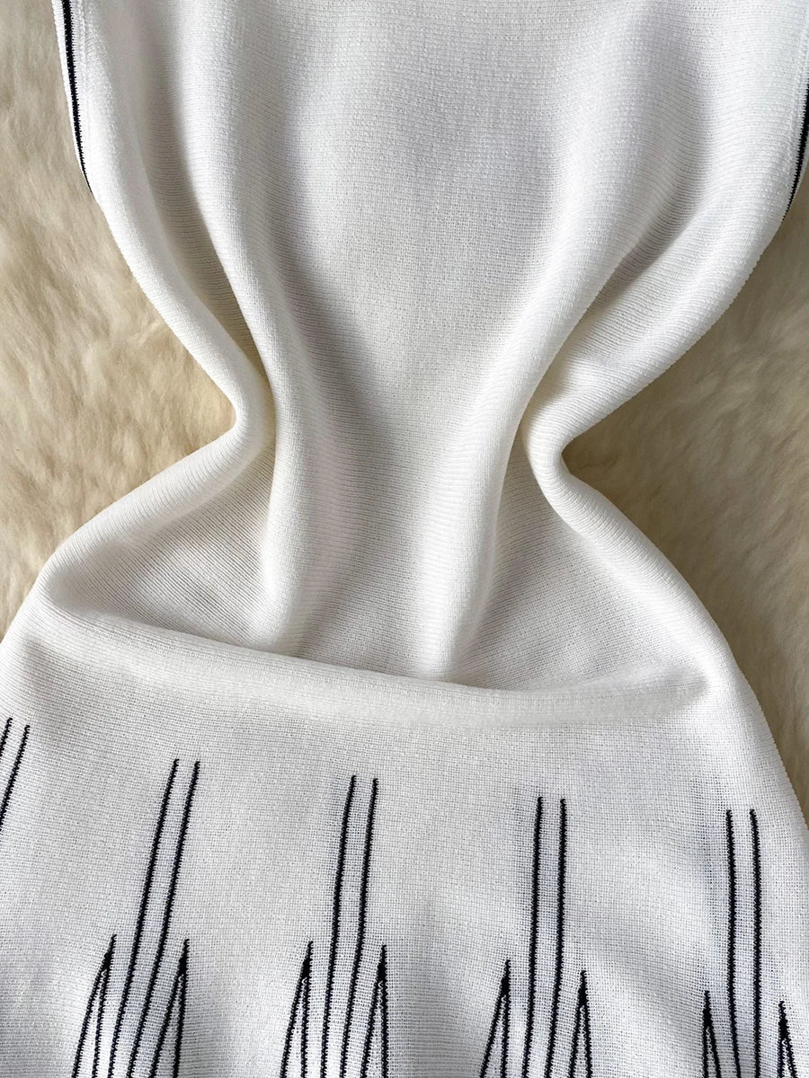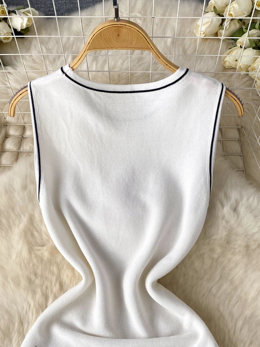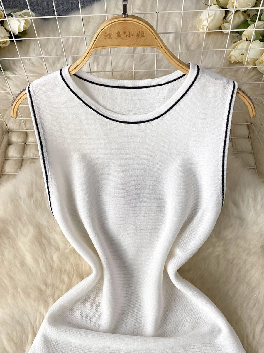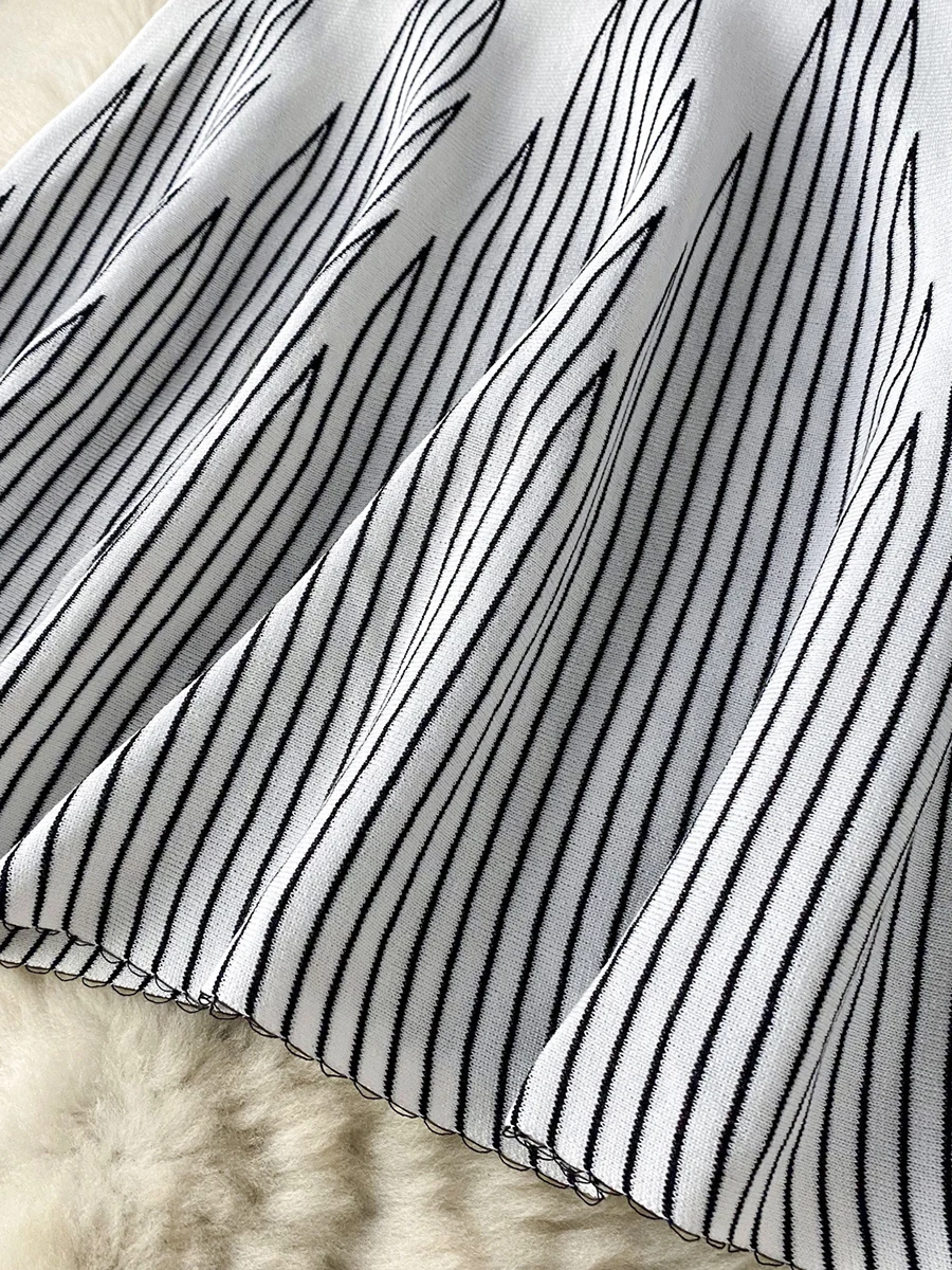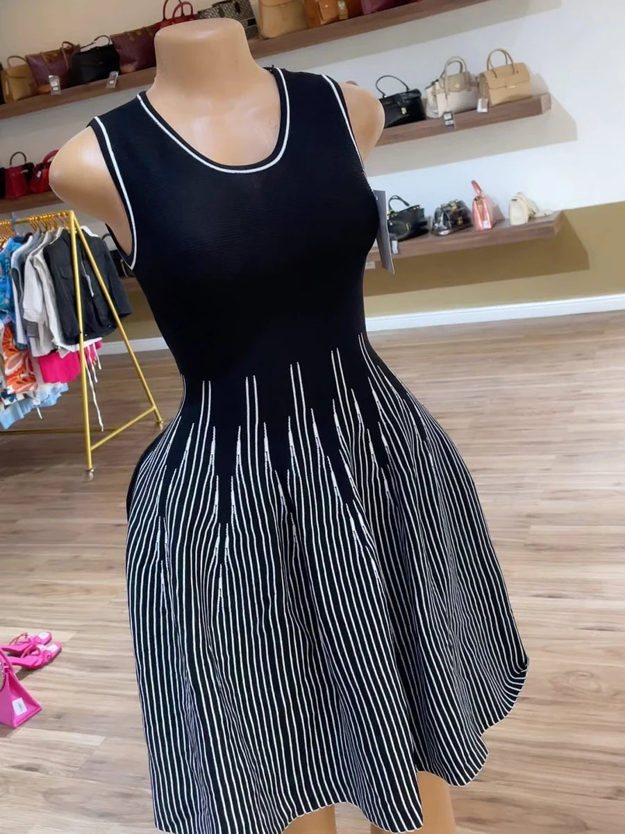 DAIIIBABYYY - Hit Color Stripe Knitting Tunic Dresses For Women Round Neck Sleeveless High Waist Temperament Dress Female Fshion Style