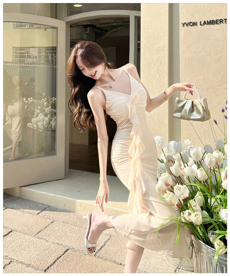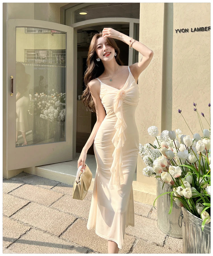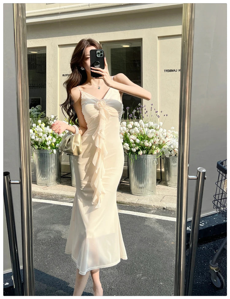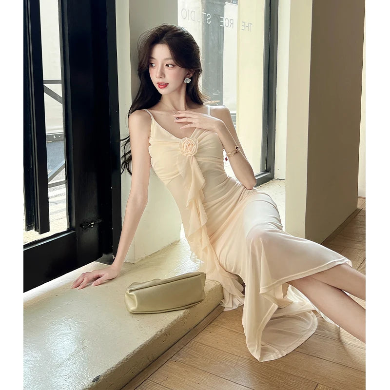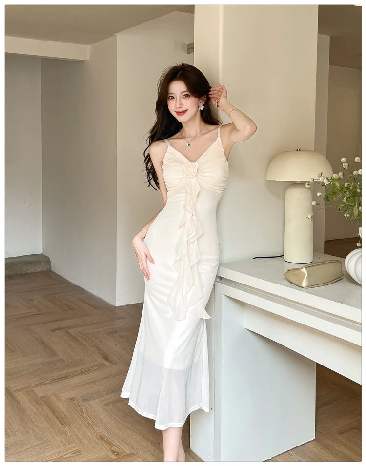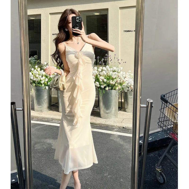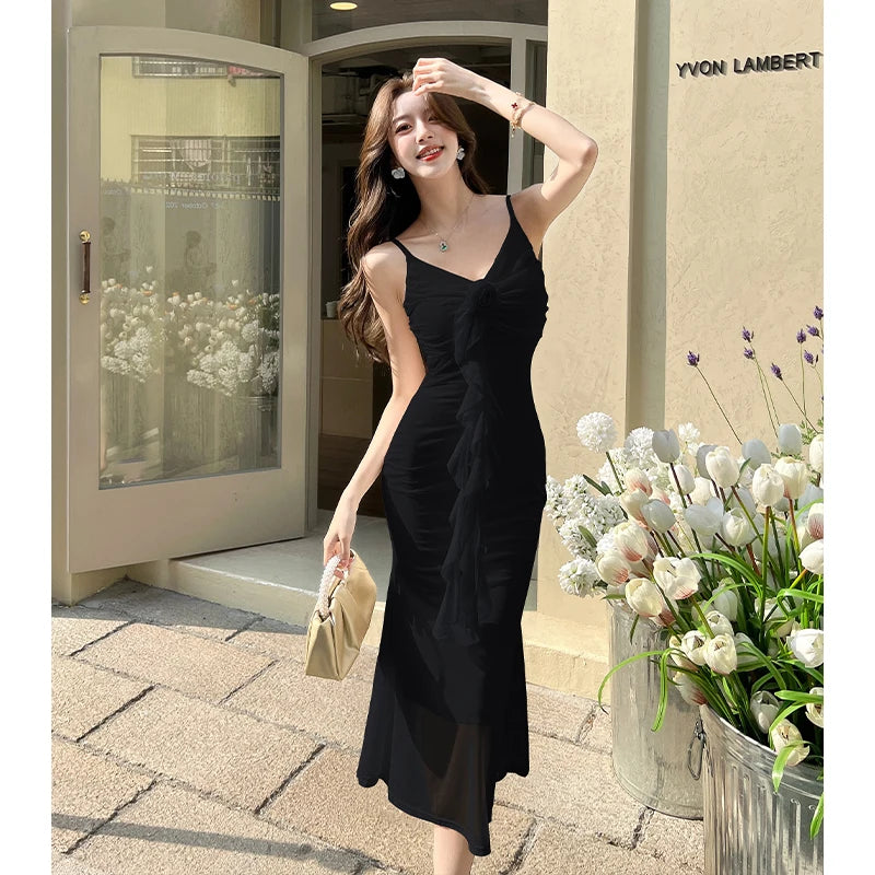 DAIIIBABYYY  -  Hot Girl Retro Sexy V-neck Strap Dress for Women's Summer Mesh Slim Fit Mermaid Long Dress Fashion Female Clothes