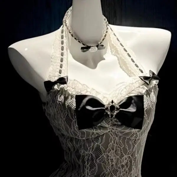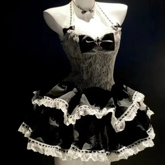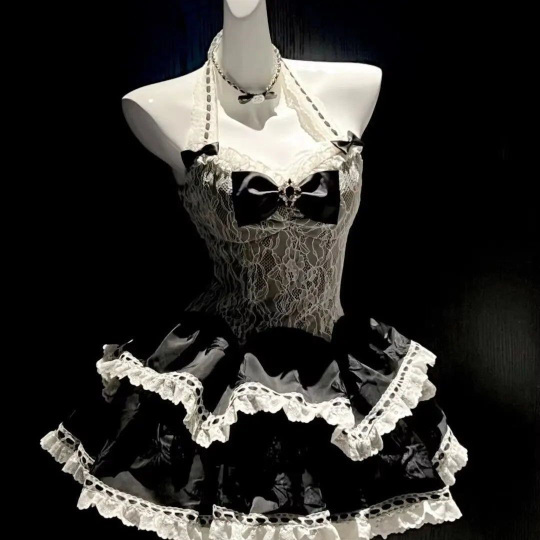 DAIIIBABYYY - Japan Dress Sweet Cute Romantic Lace Mini Halter Neck Sexy Dress For Women Fashion Lolita Style Elegant Short Princess Dress