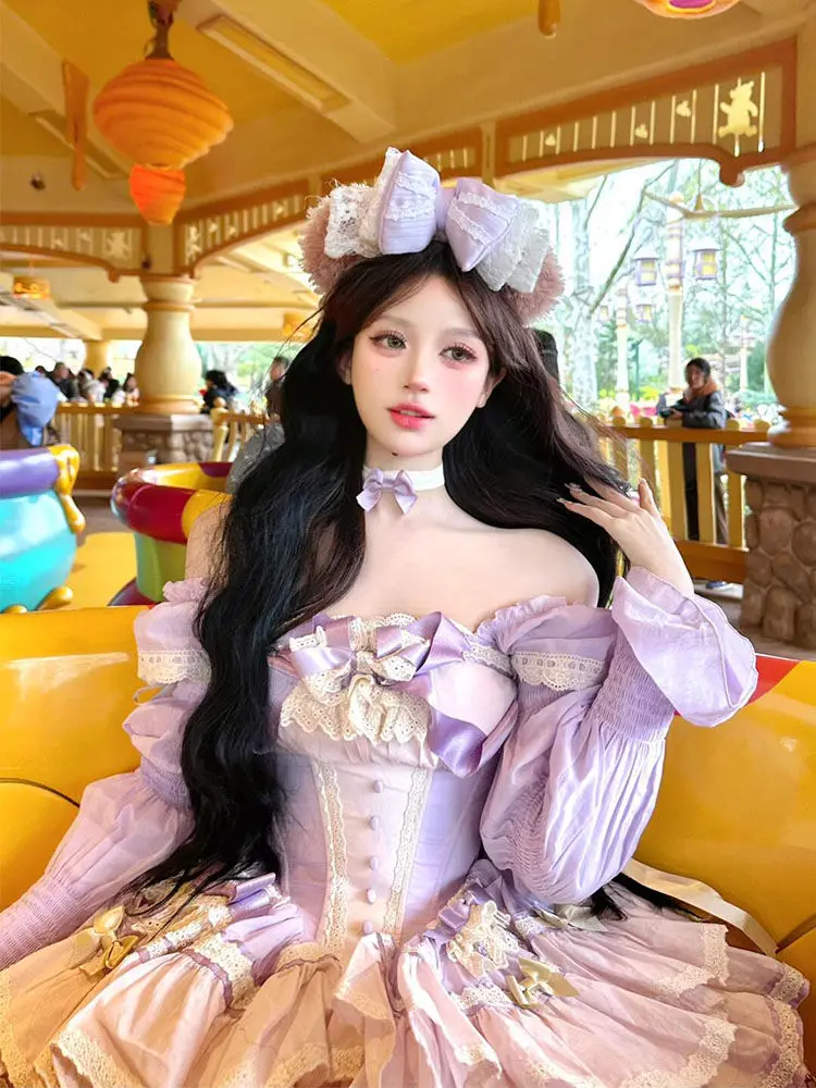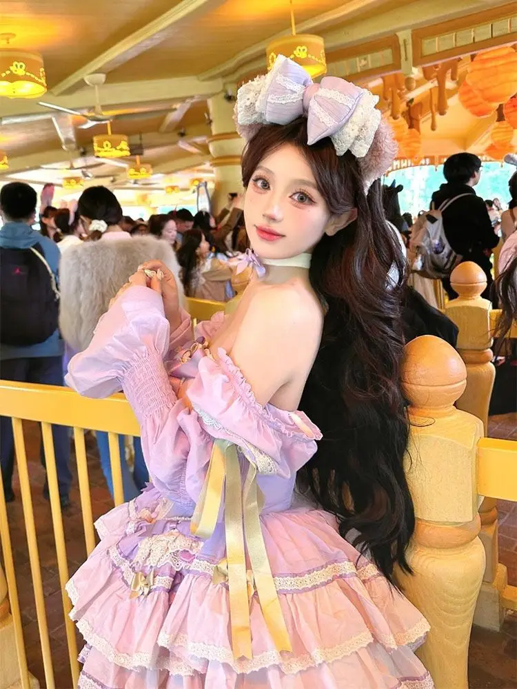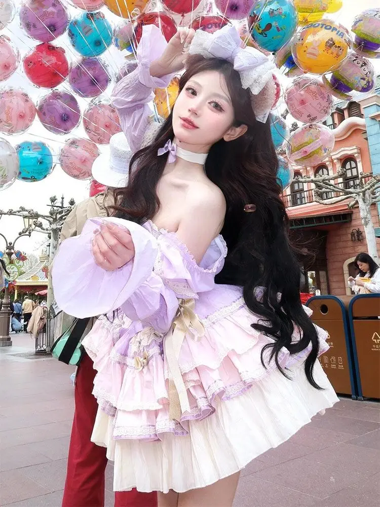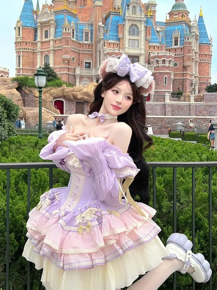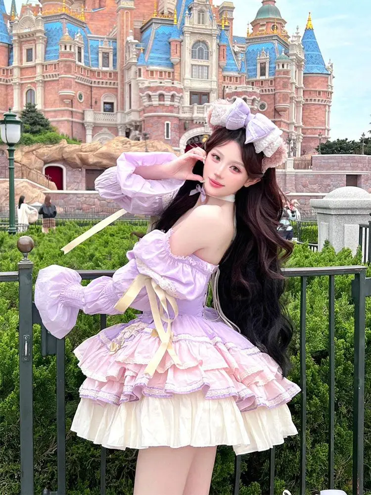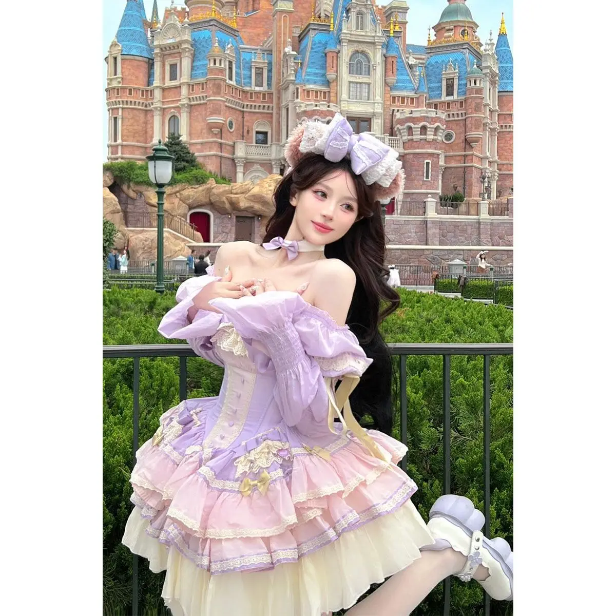 Daiiibabyyy Japan Dress Women Gothic Y2k Puff Short Sleeve Laminated Flounces Mini Dresses Bow Ruffles Princess Vestidos