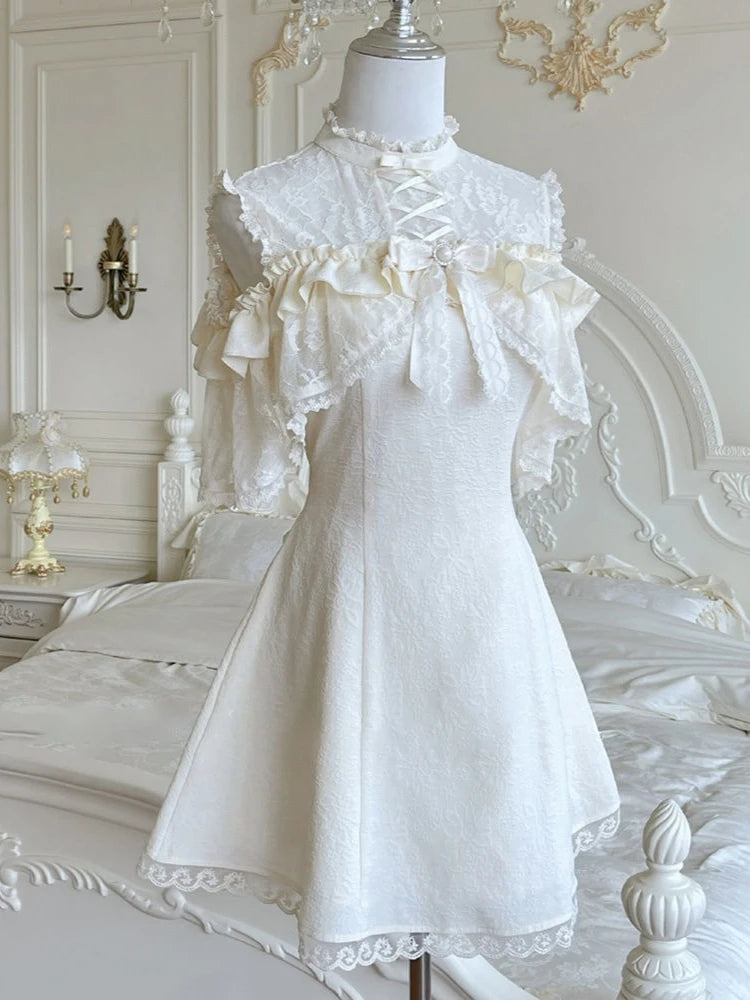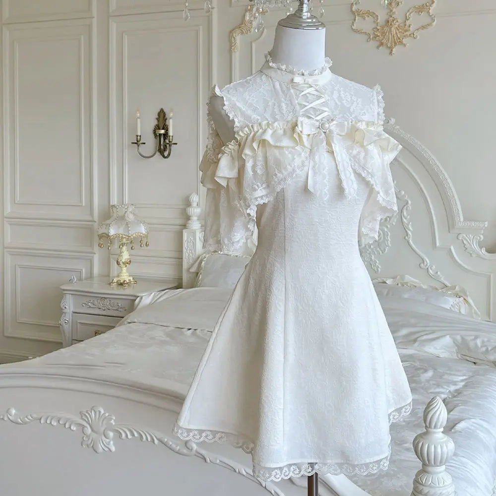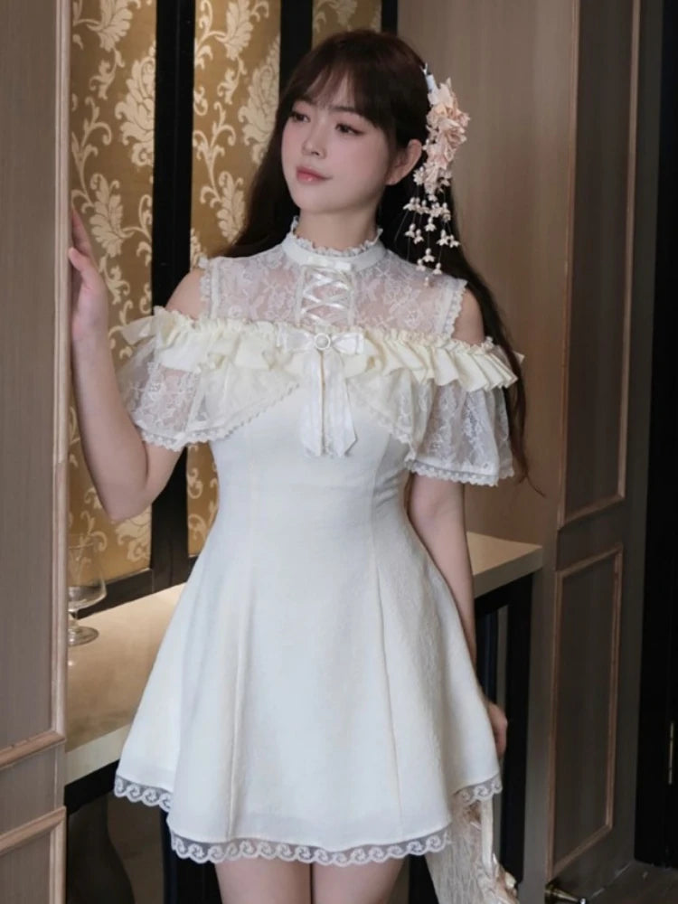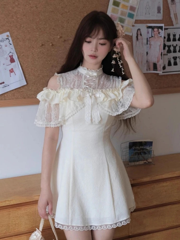 Daiiibabyyy Japanese Sweet Off Shoulder Bow Dresses Y2k Aesthetic Lace Patchwork Grunge Vestidos Harajuku Women A-Line Ruffled Mini Dress