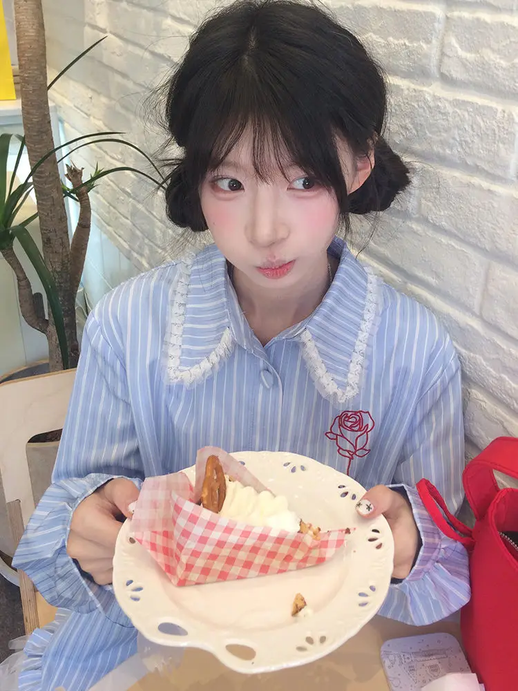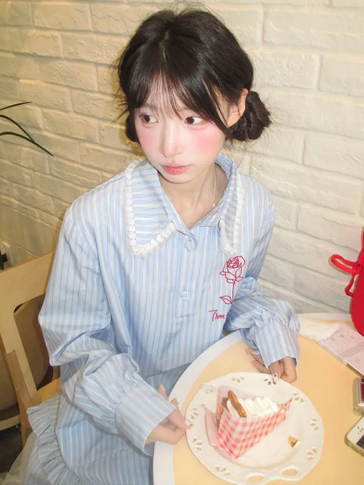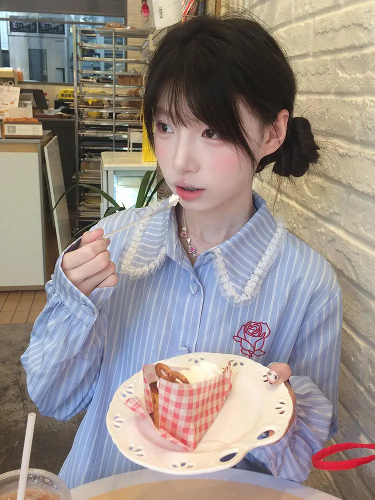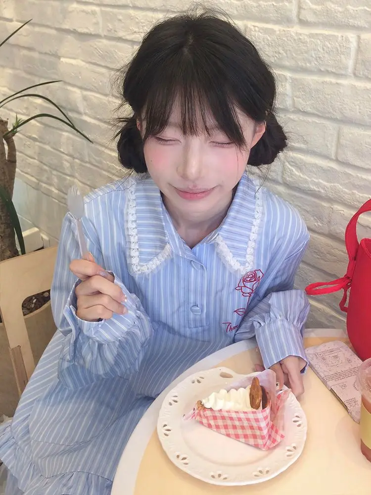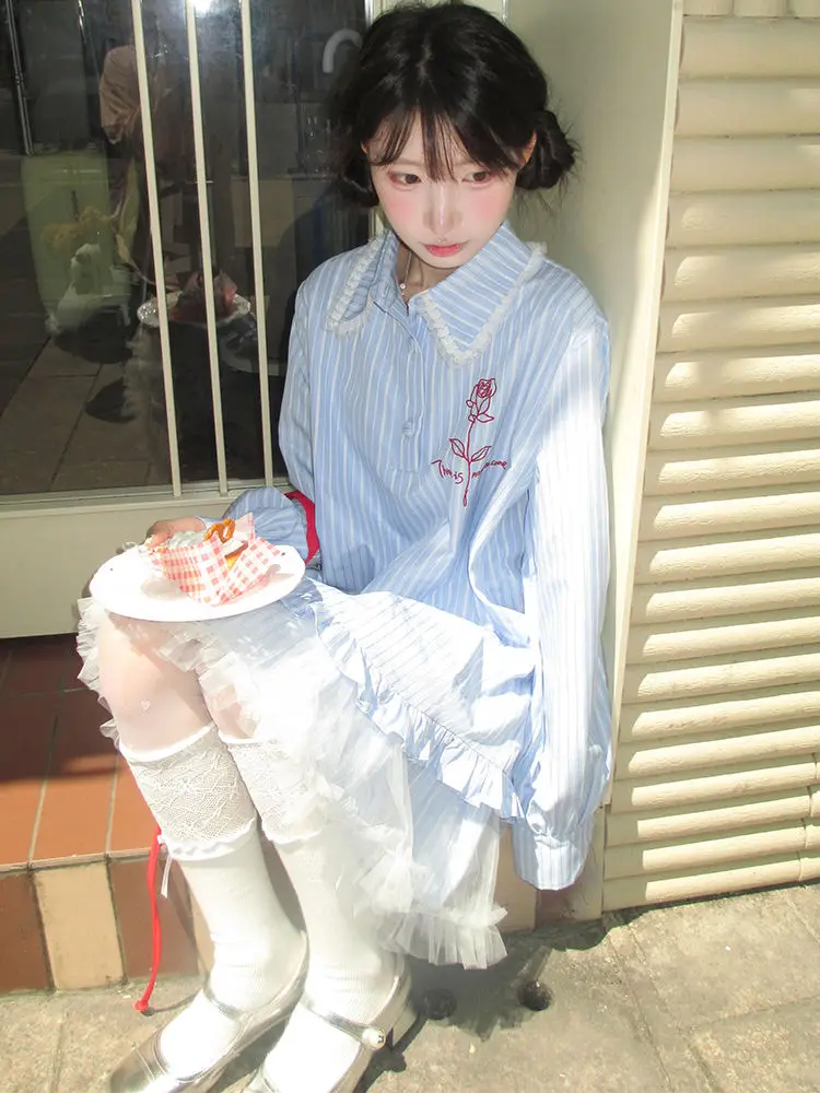 DAIIIBABYYY - Kawaii Cute Striped Mini Dress Women Japanese Ruffles Mesh Patchwork Dresses Korean Fashion Long Sleeve Design Vestidos