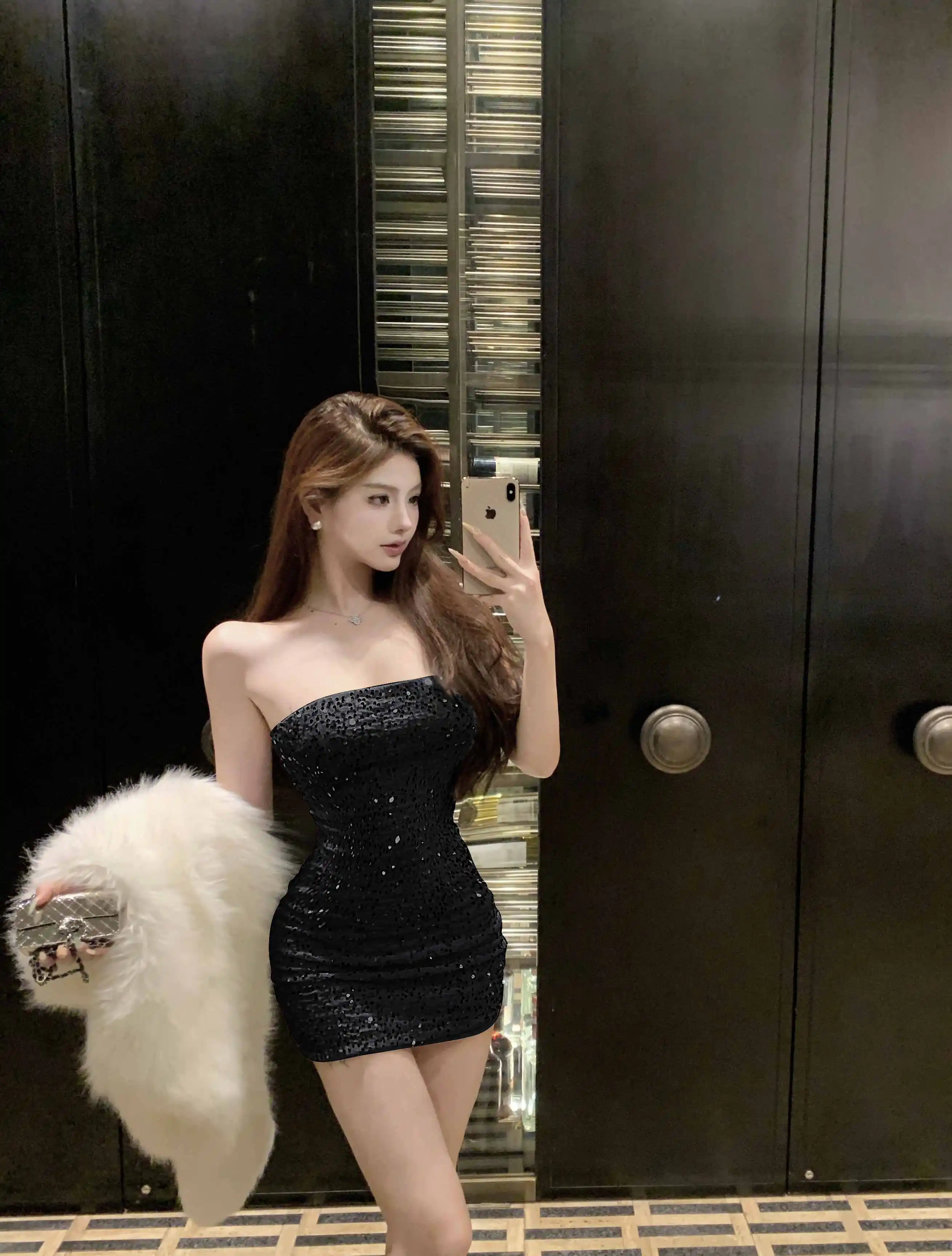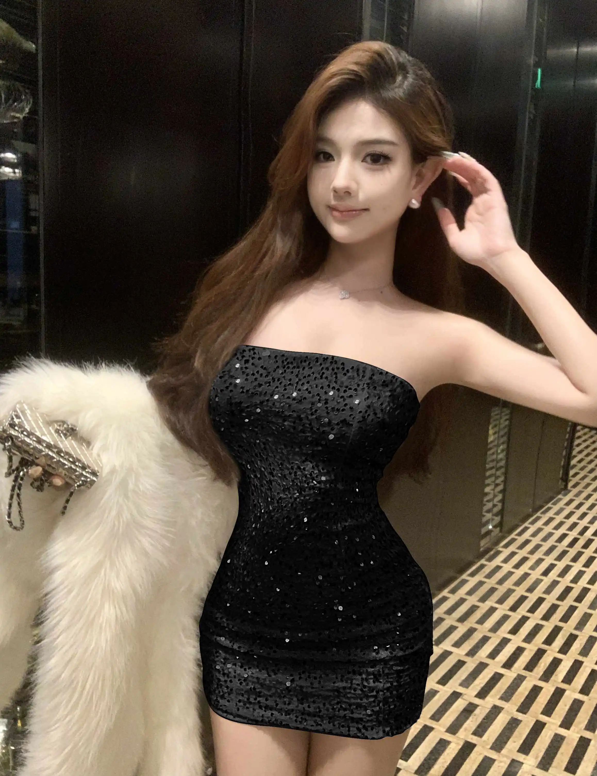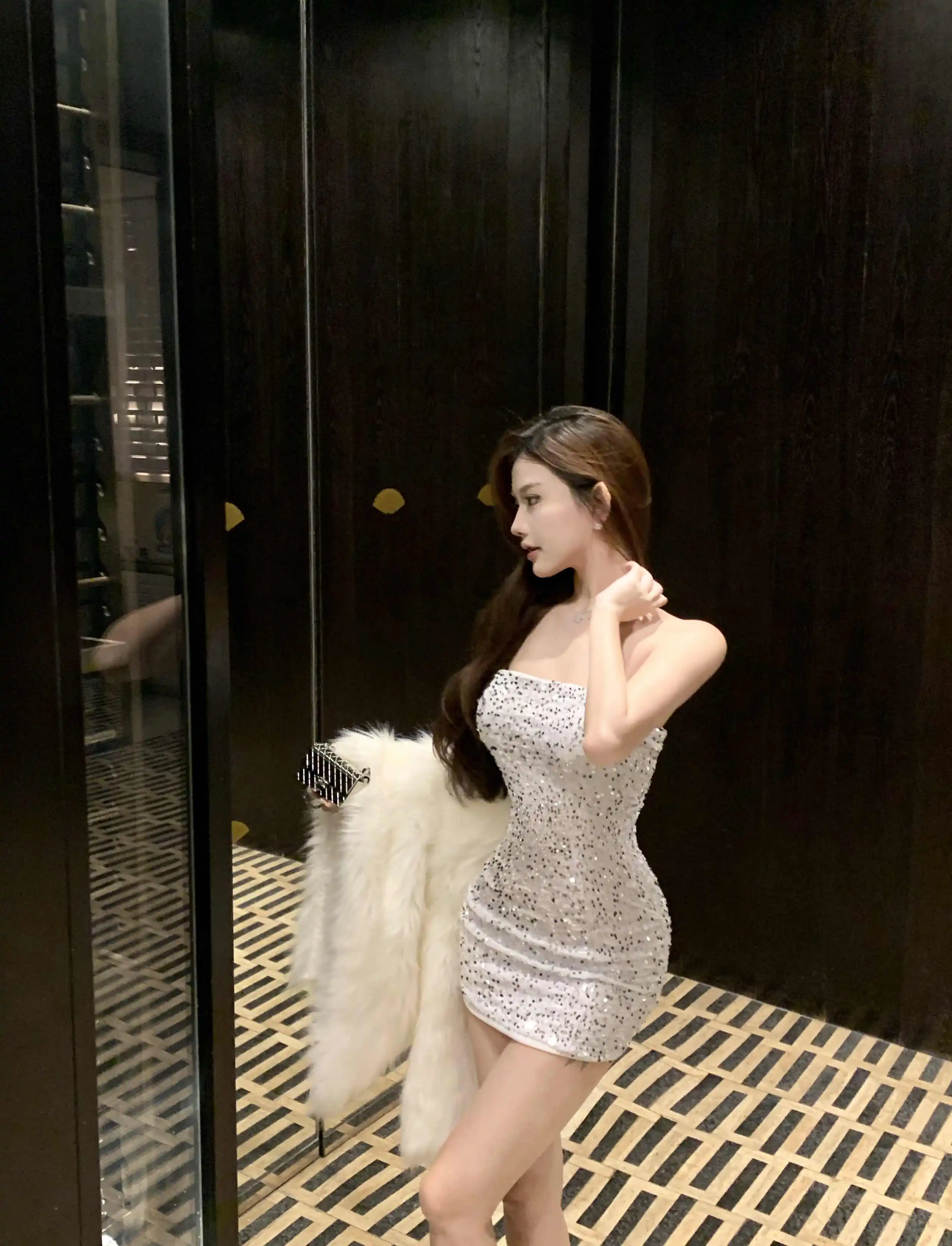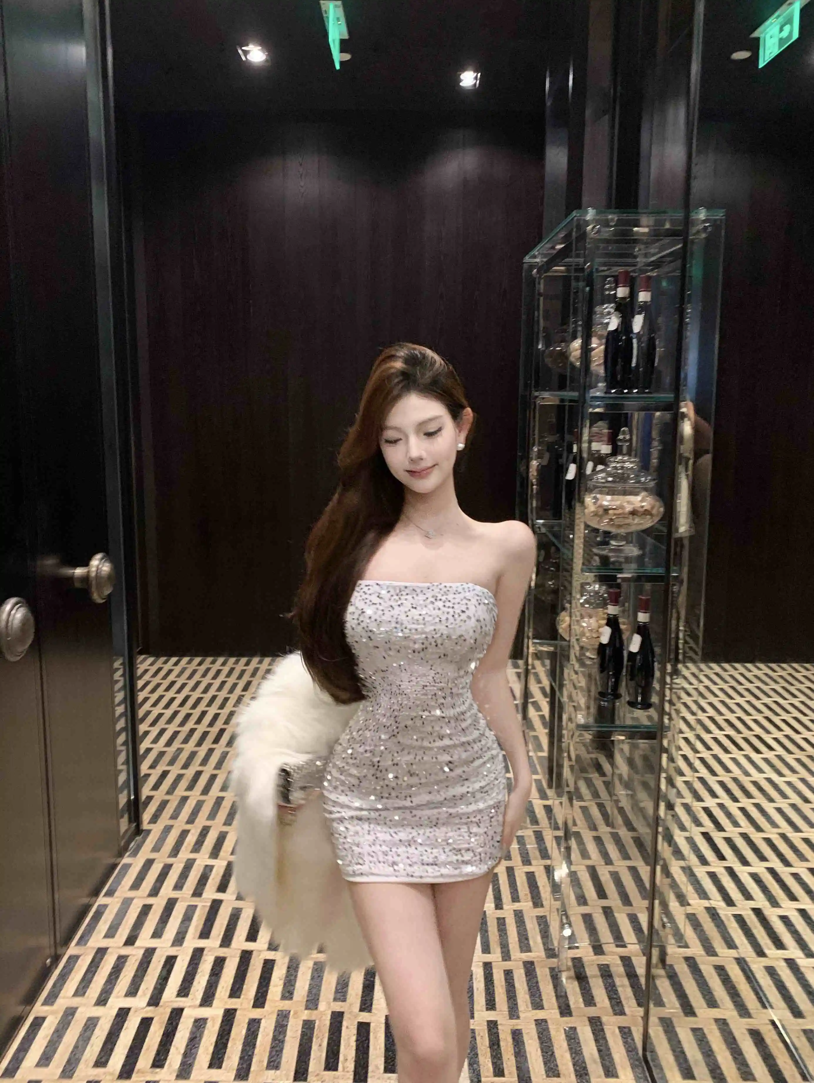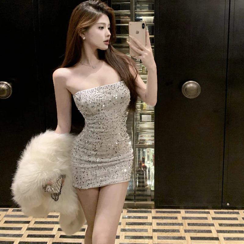 DAIIIBABYYY - New Sequins Sleeveless Sexy Club Short Dress Women Elegant Hip Wrap Bodycon Dress Autumn Winter Korean Luxury Evening Dress