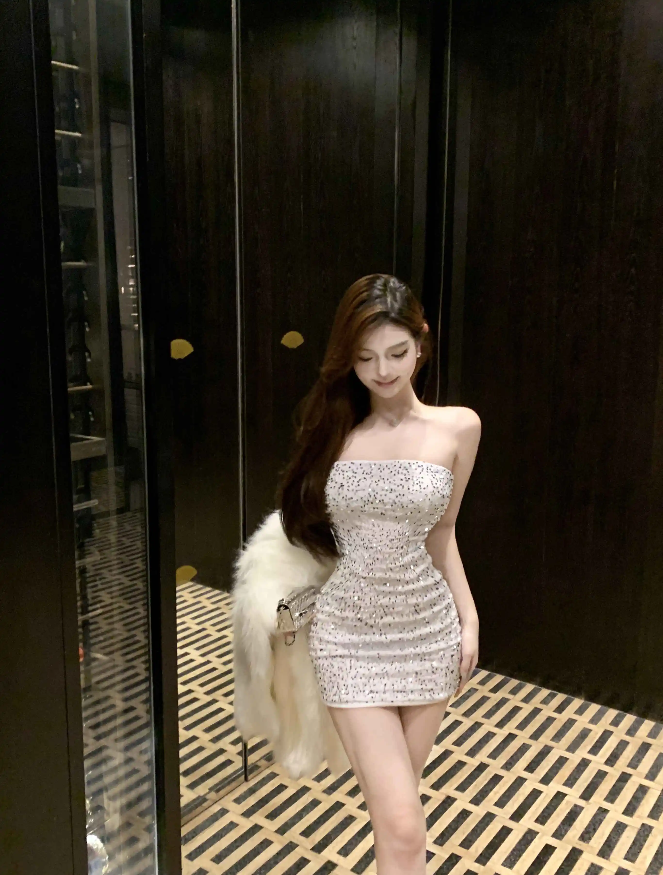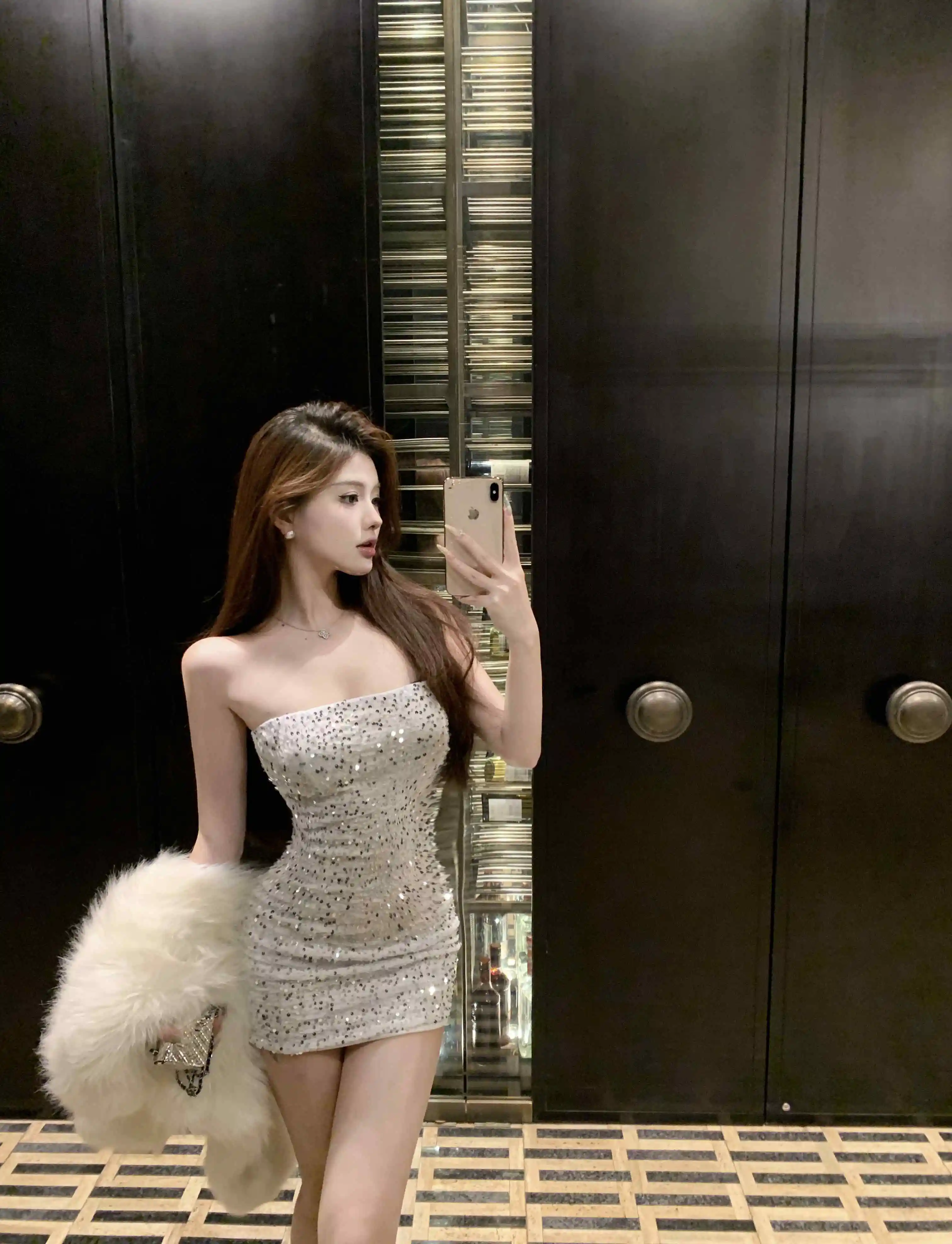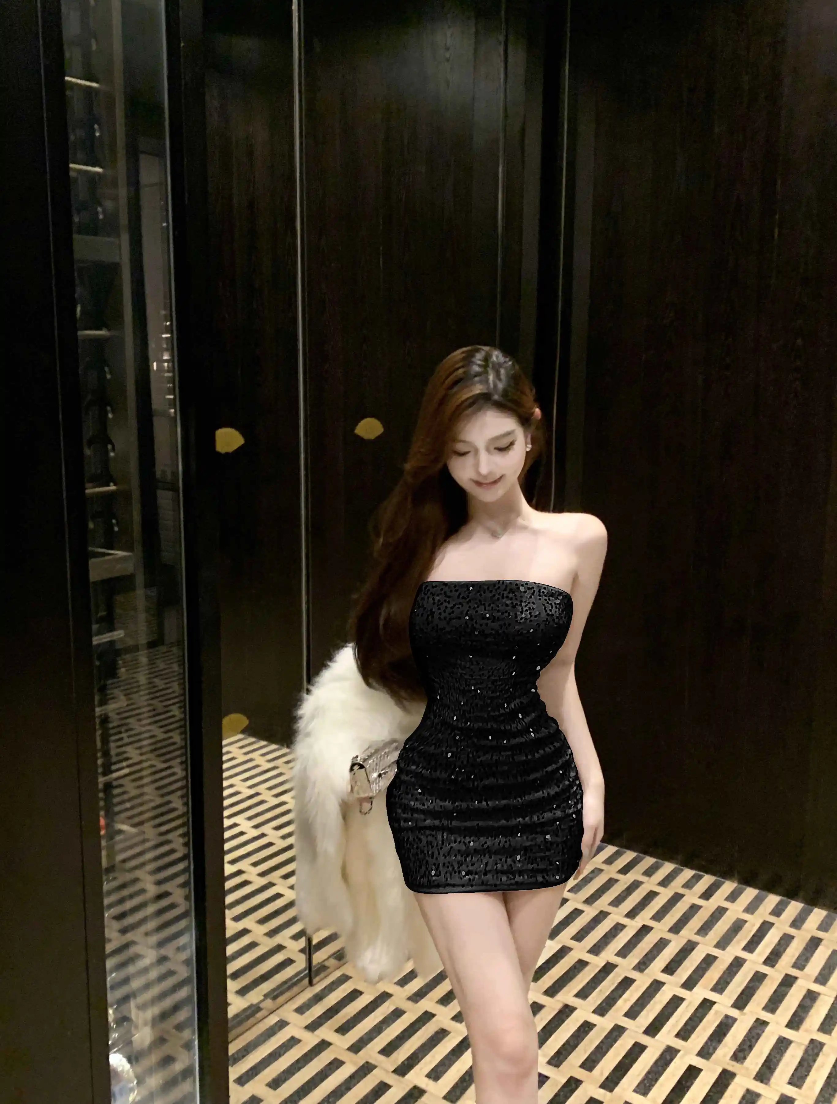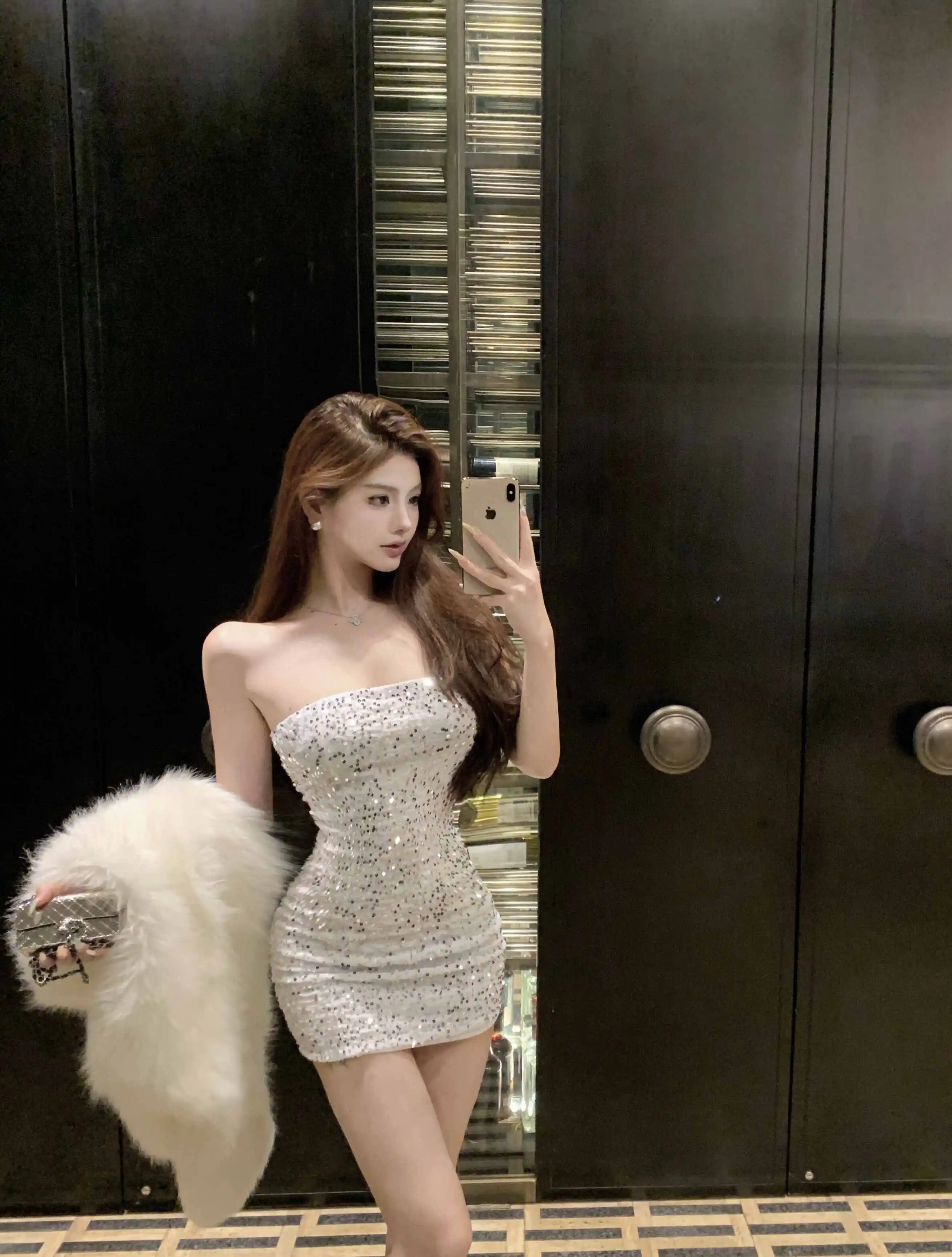 DAIIIBABYYY - New Sequins Sleeveless Sexy Club Short Dress Women Elegant Hip Wrap Bodycon Dress Autumn Winter Korean Luxury Evening Dress