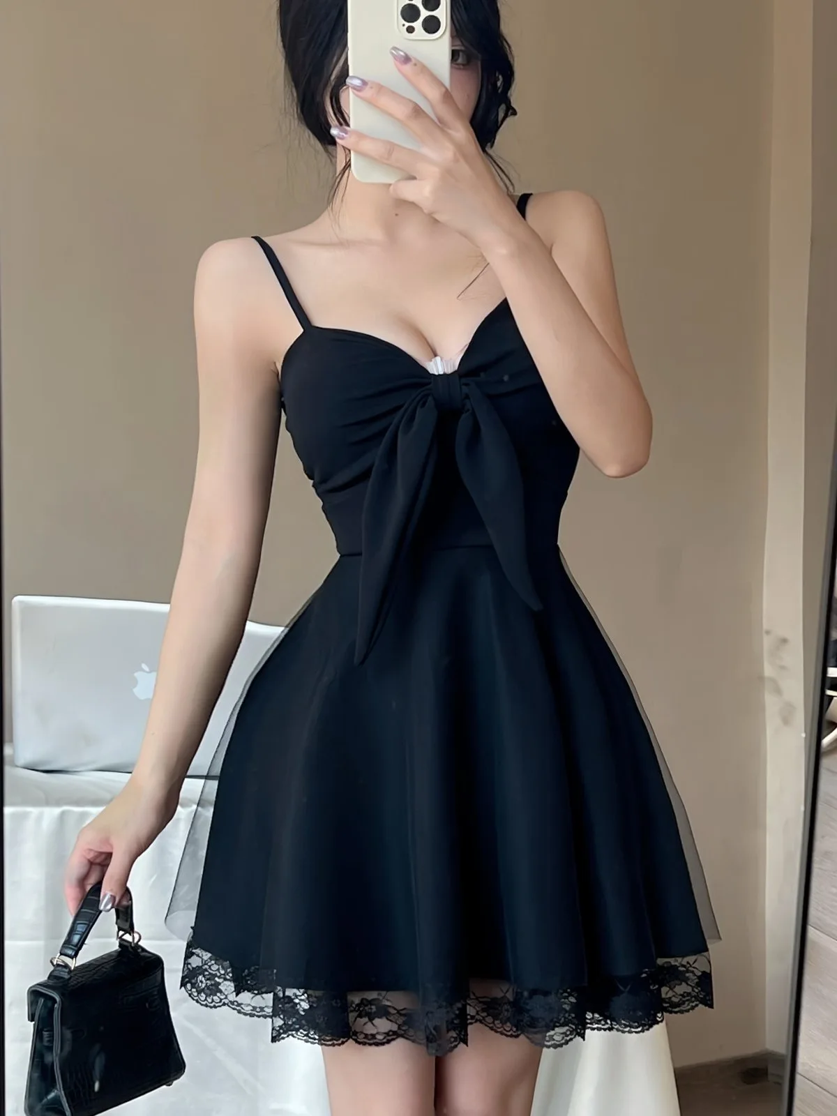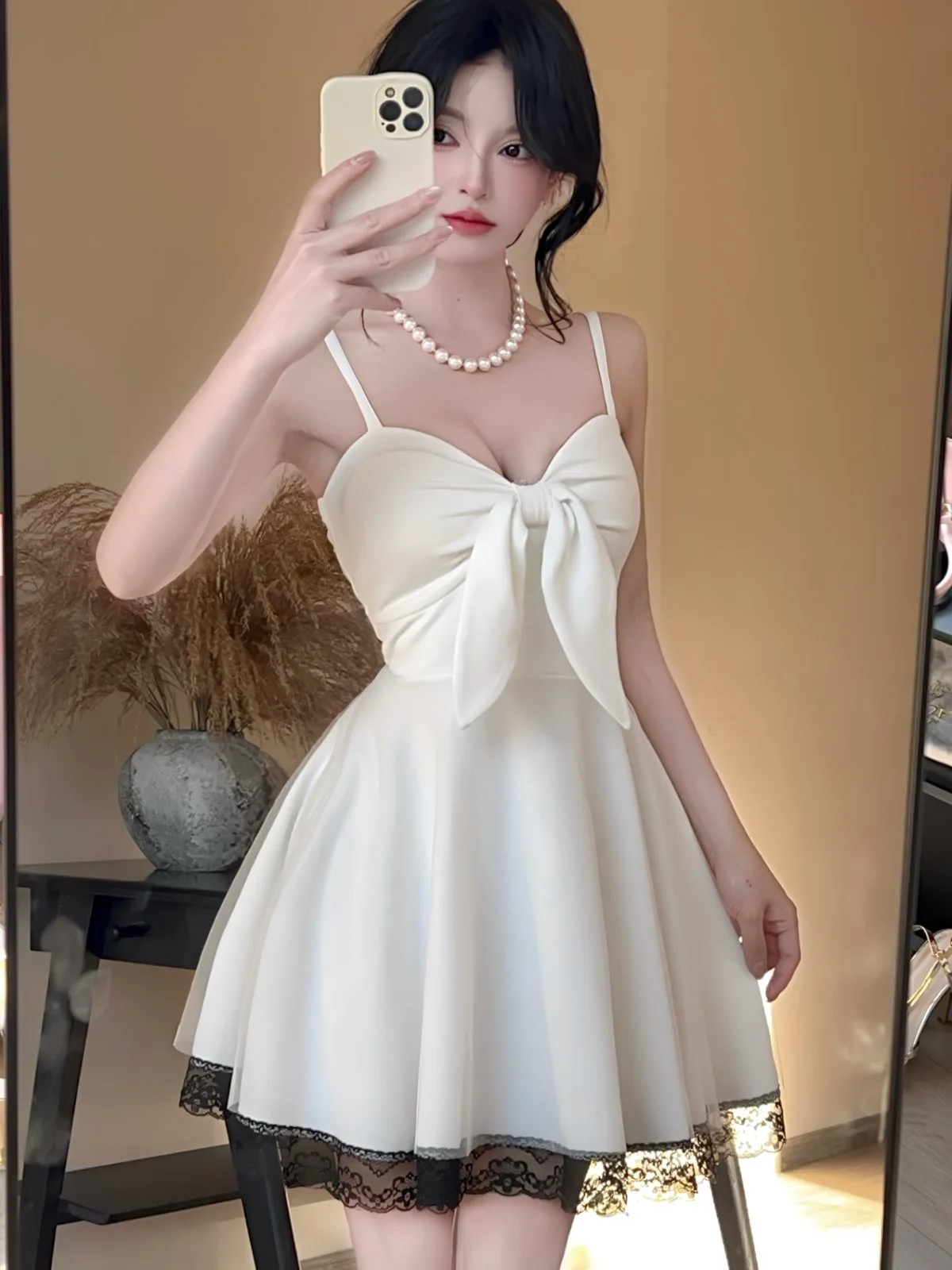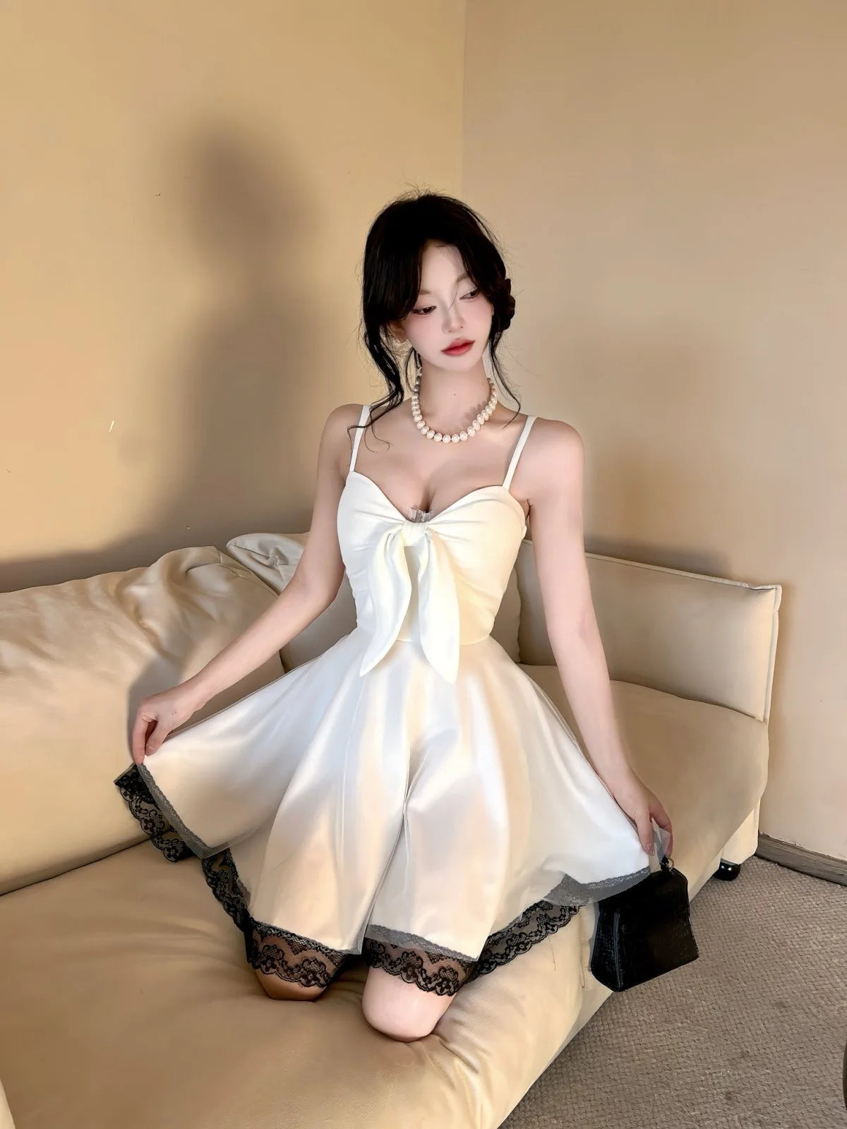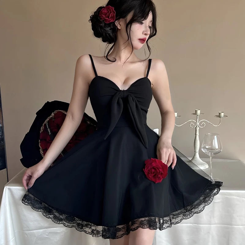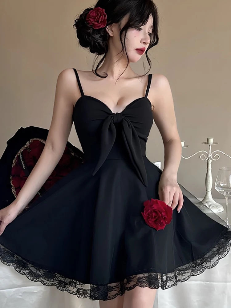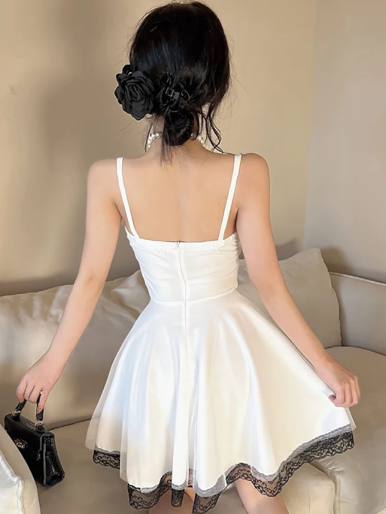 DAIIIBABYYY - New White Bow Sling Sexy Mini Dress Women Fashion Patchwork Mesh Ruffled Y2k Dress Summer Elegant Bodycon Birthday Dresses