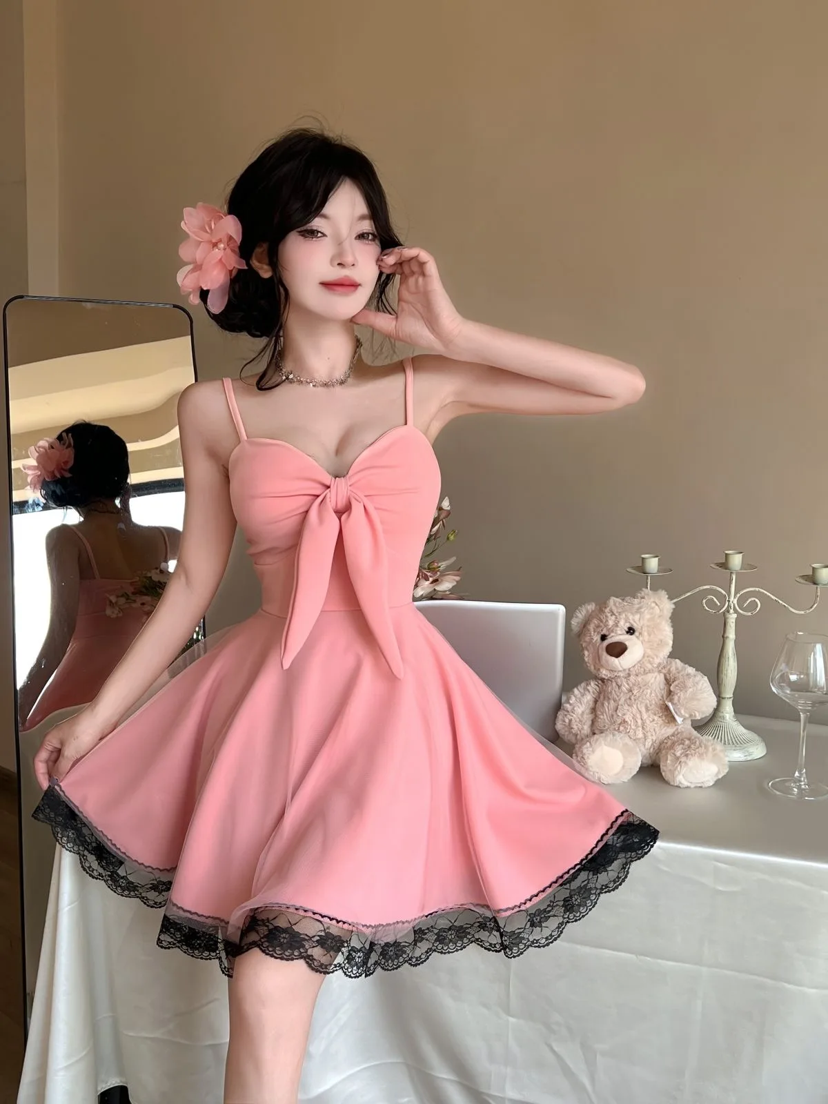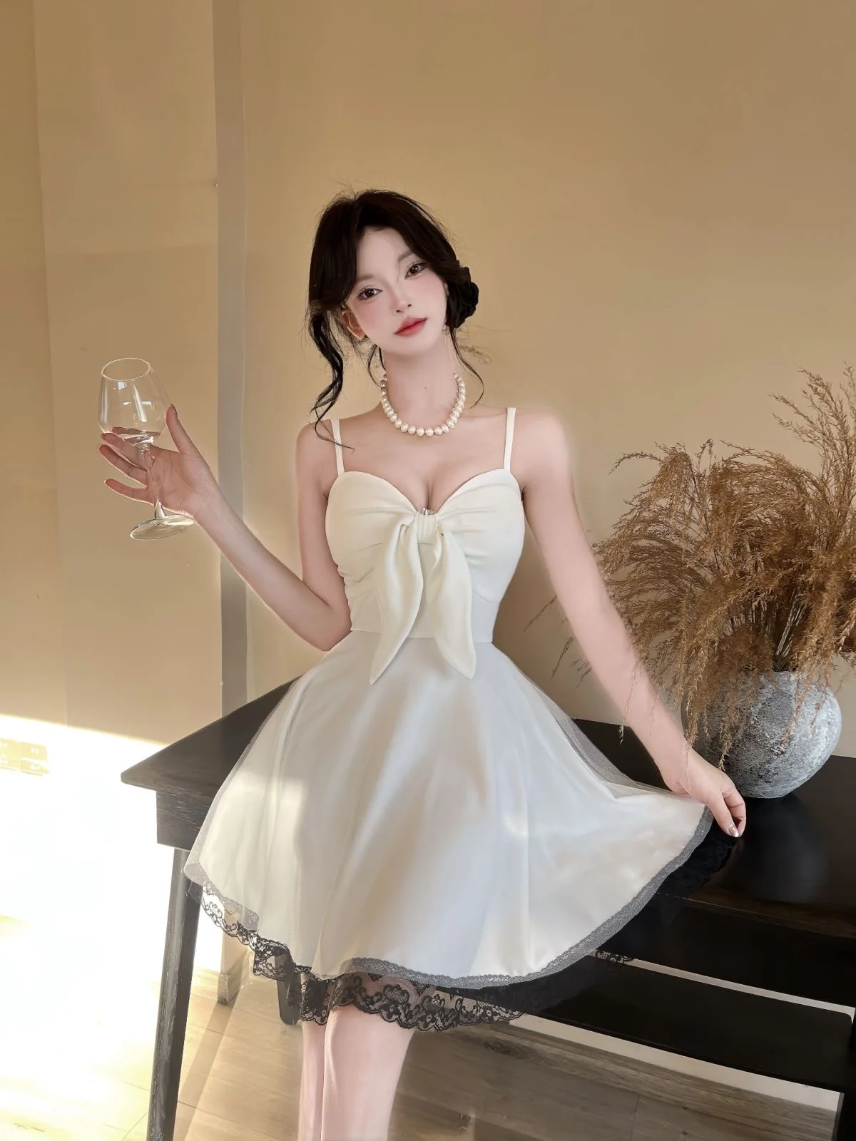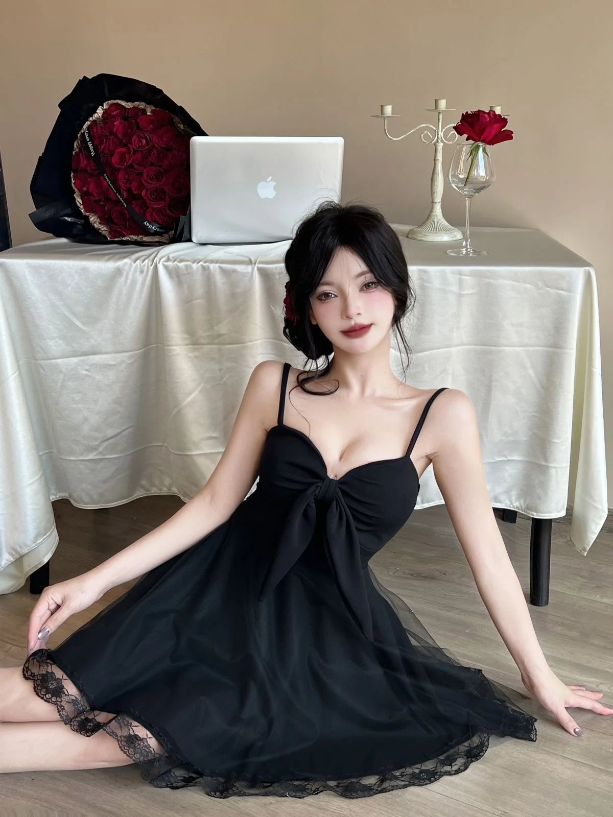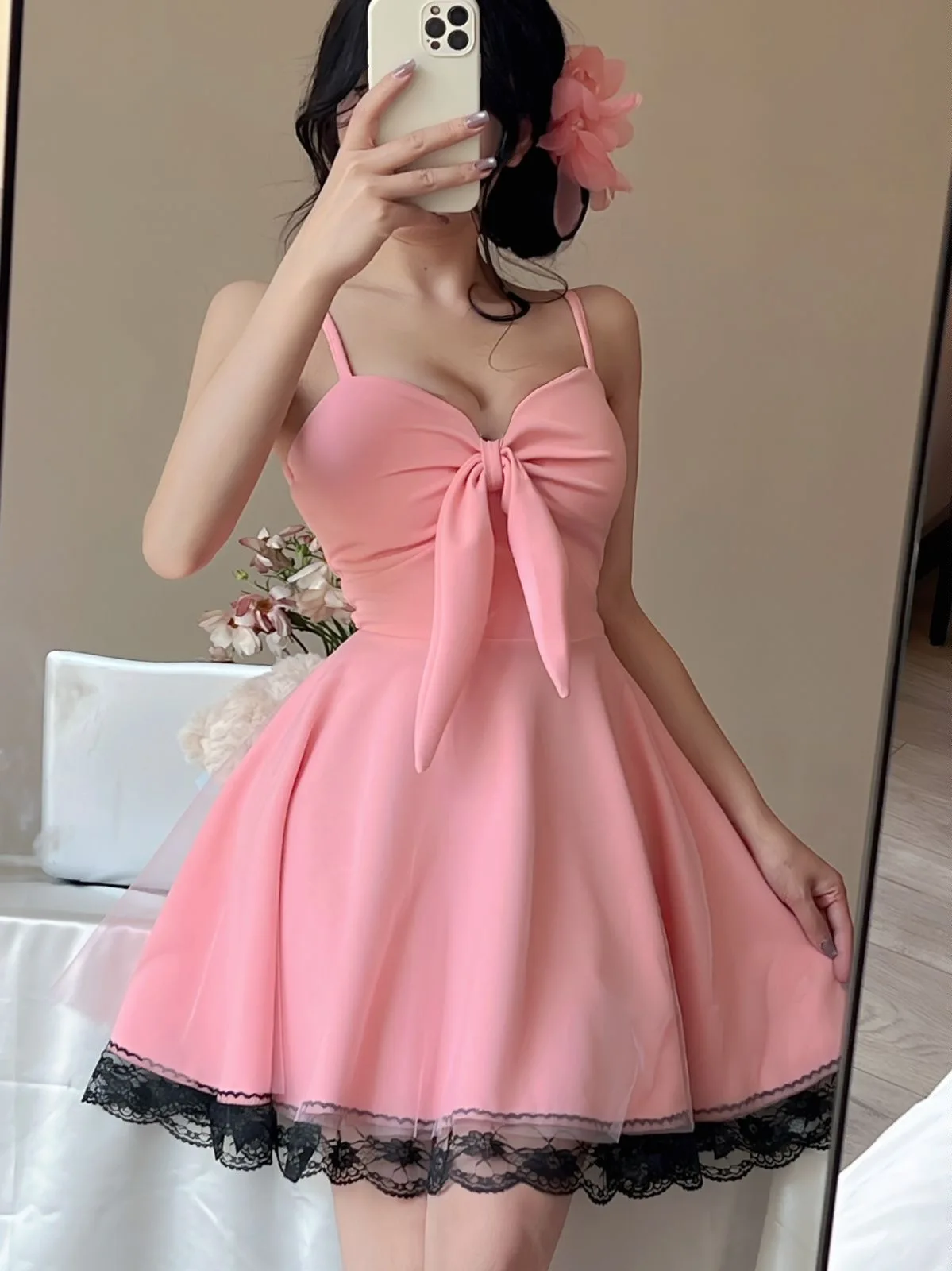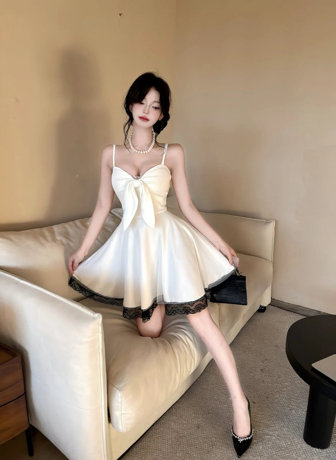 DAIIIBABYYY - New White Bow Sling Sexy Mini Dress Women Fashion Patchwork Mesh Ruffled Y2k Dress Summer Elegant Bodycon Birthday Dresses