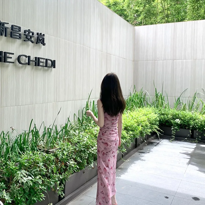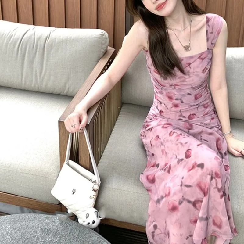 DAIIIBABYYY - Printing Women's Summer Square Collar New Patchwork Fashion Elegant Zipper Folds Slim Fit Sleeveless Camisole Dress