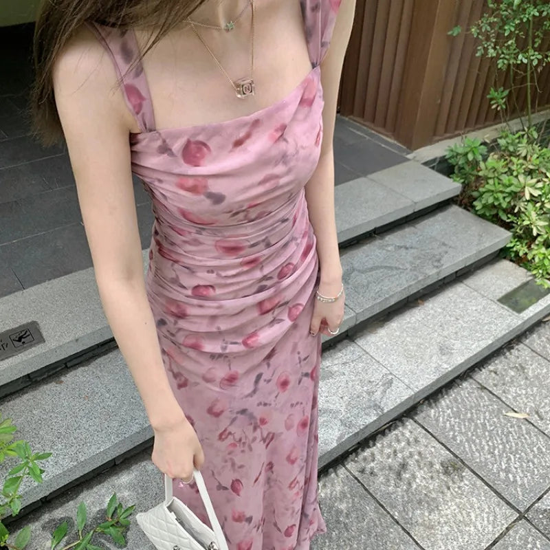DAIIIBABYYY  -  Printing Women's Summer Square Collar New Patchwork Fashion Elegant Zipper Folds Slim Fit Sleeveless Camisole Dress