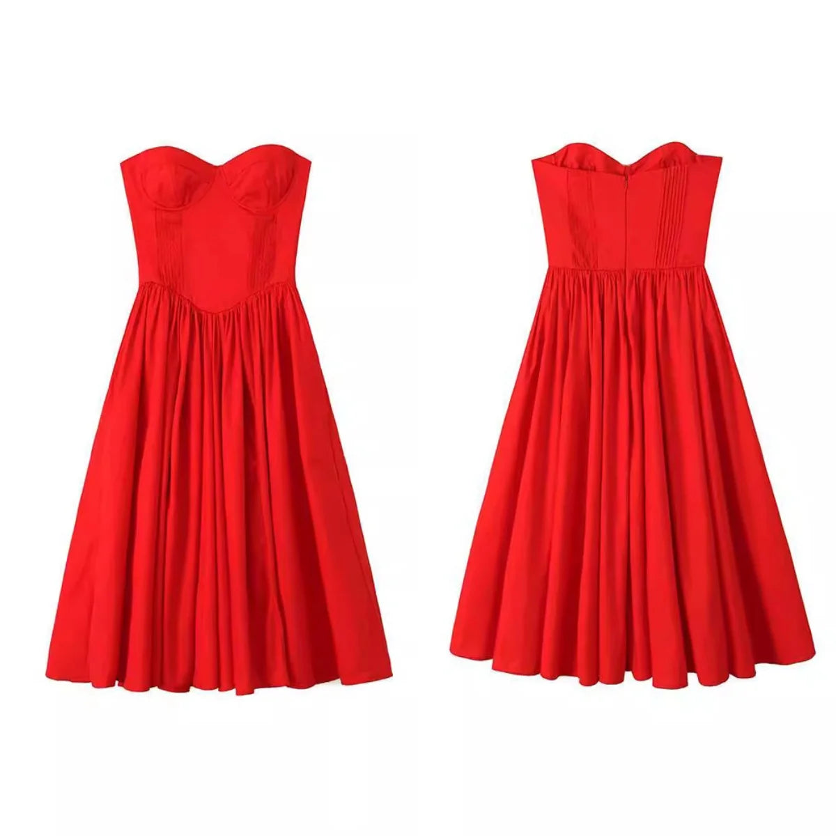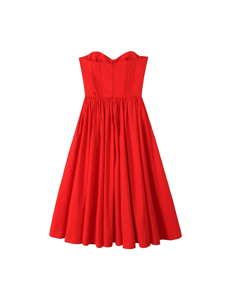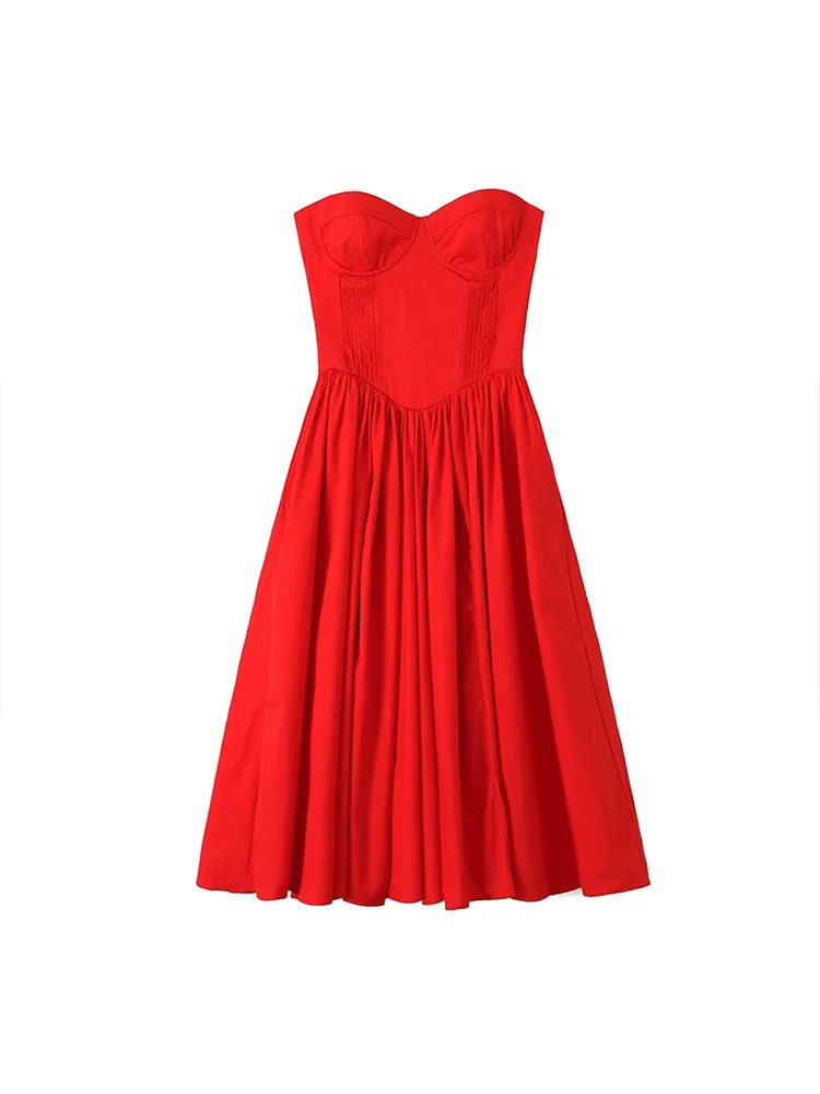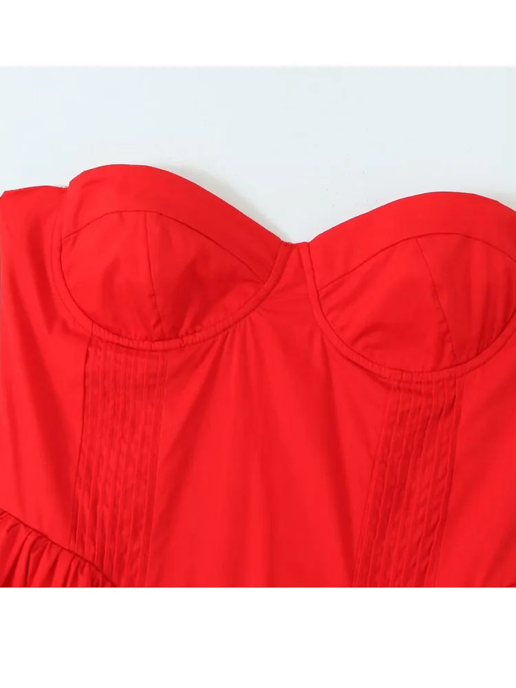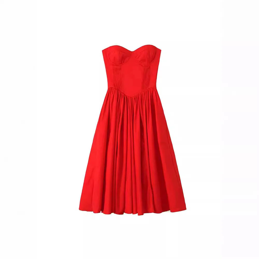 Daiiibabyyy - Red Elegant Wedding Event Dresses Sexy Strapless Corset Midi Christmas Party Dresses for Women Clothing 2024