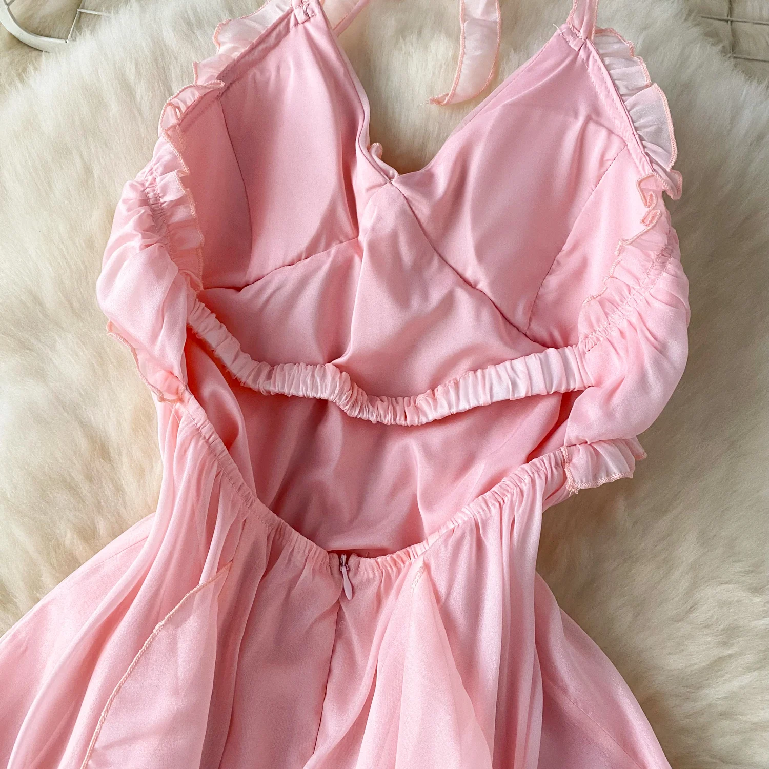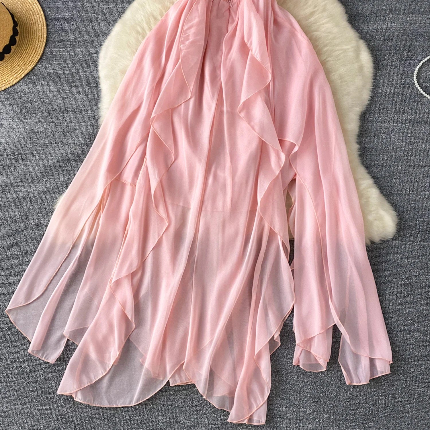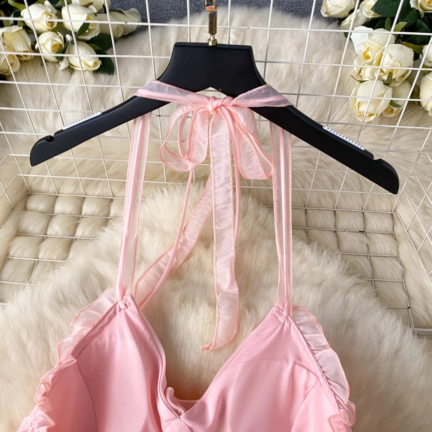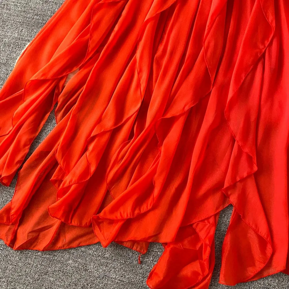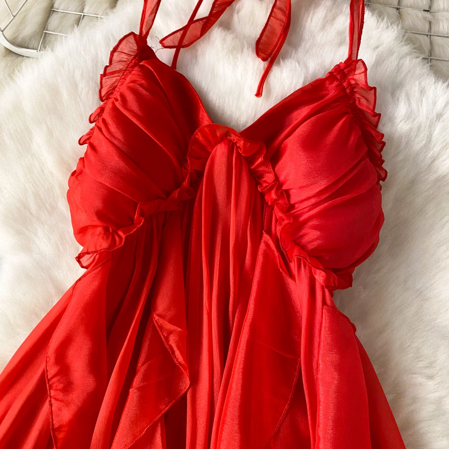 DAIIIBABYYY - Retro Ruffle chiffon halter off shoulder backless Dress asymmetrical Casual sweet High Waist evening Women Summer dresses