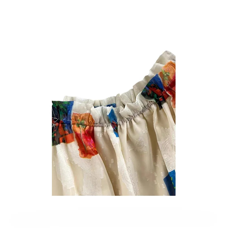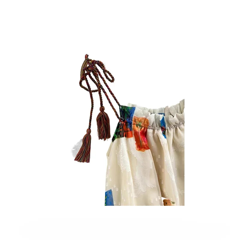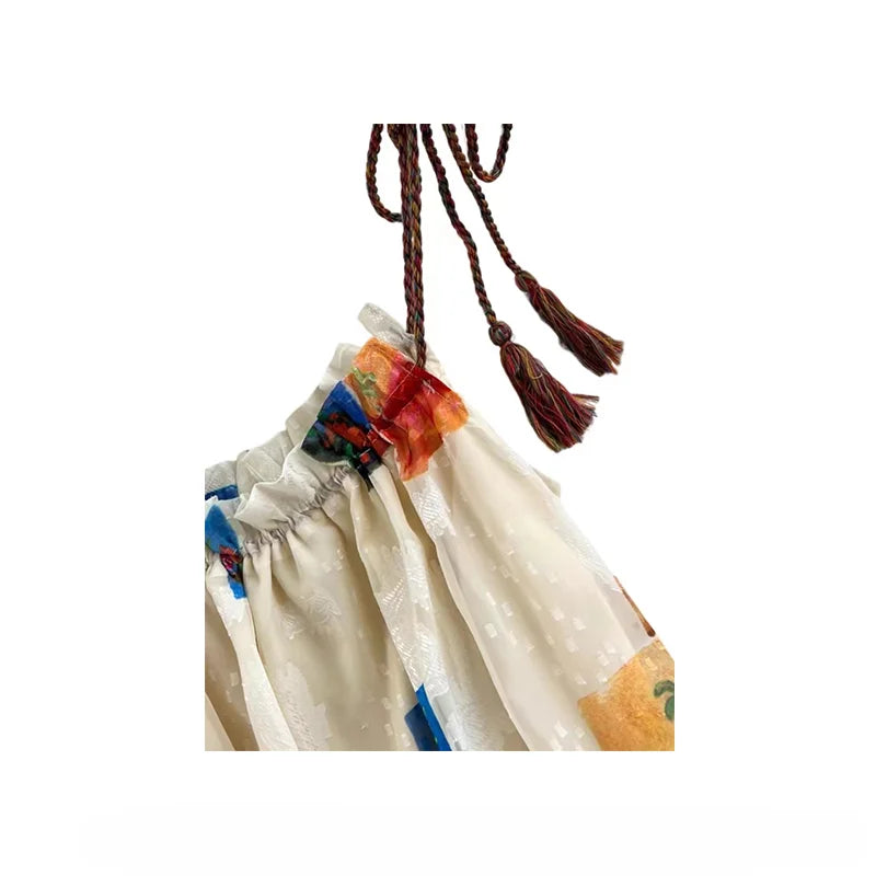 DAIIIBABYYY - Retro Women Dress Lace-up Printed Sleevevess Off Shoulder A-line Beach Dresss Sweet Hot Girls Holiday Skirts Fashion Clothes