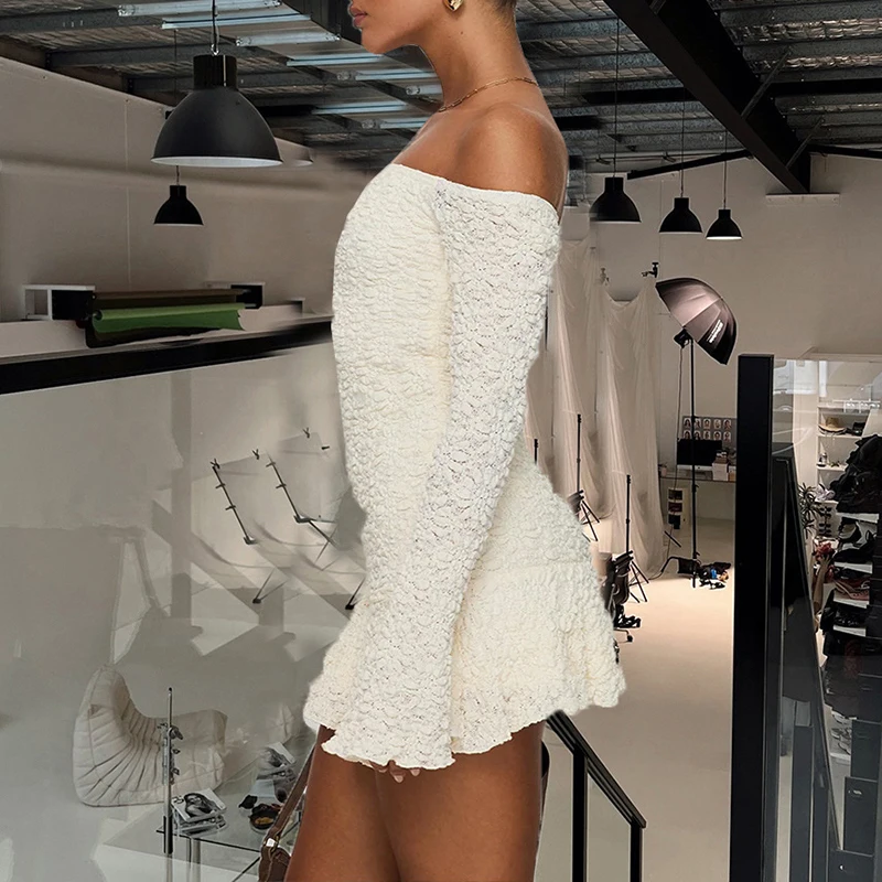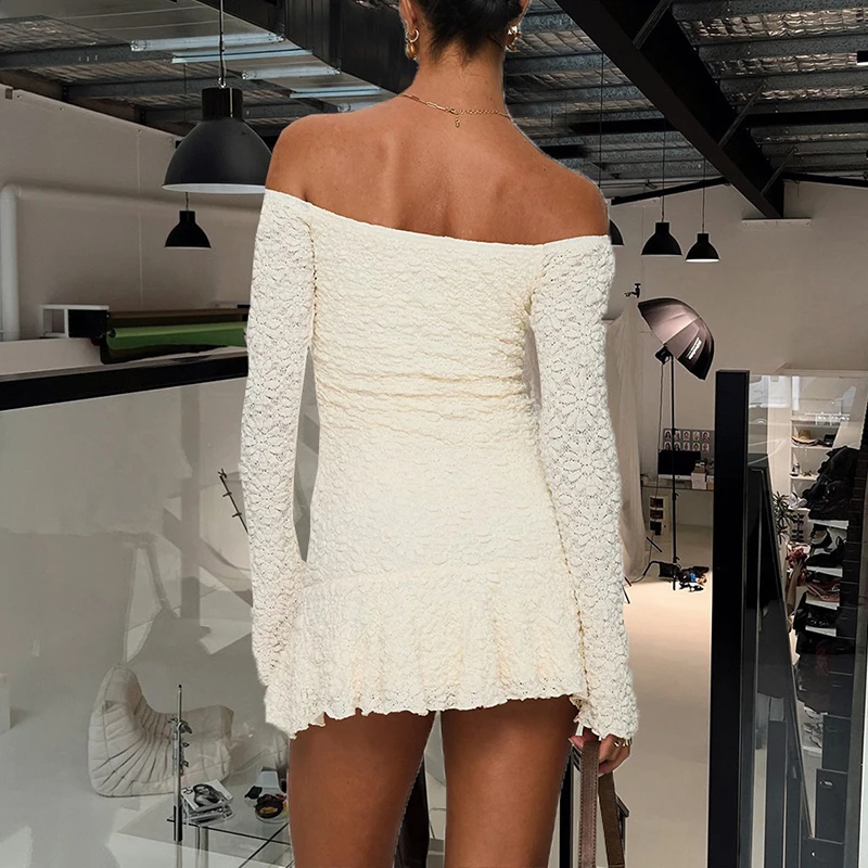 Daiiibabyyy Sexy 2025 One-Shoulder High Street Mini Dress Women Fashion Soft Long Sleeve Solid Party Dress Casual Solid Color Ruffles Dress