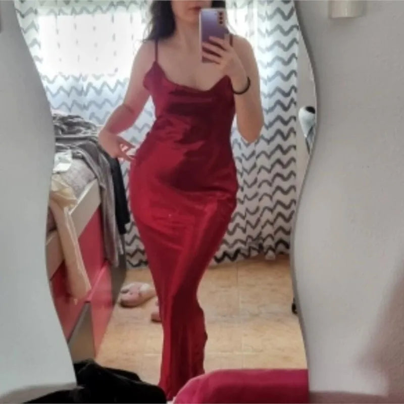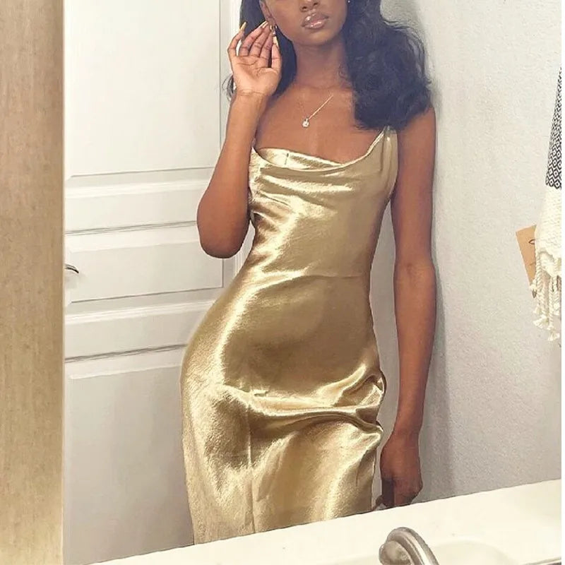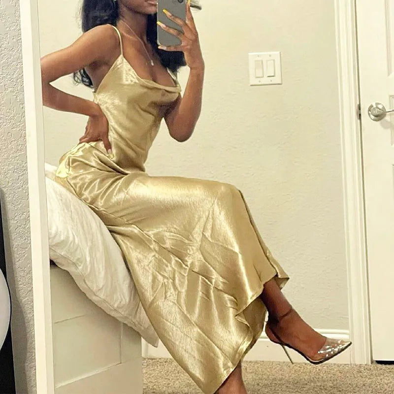 Daiiibabyyy Sexy Champagne Bodycon Club Wear Female Party Robe Summer Women Backless Satin Long Dress