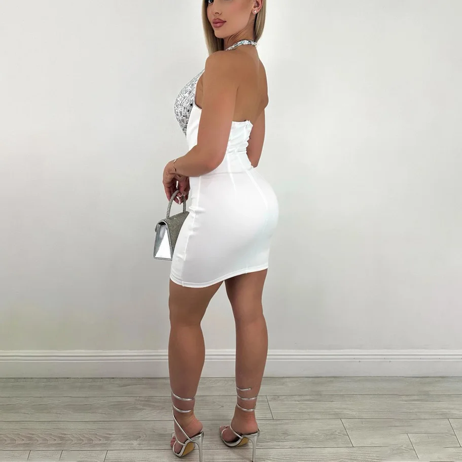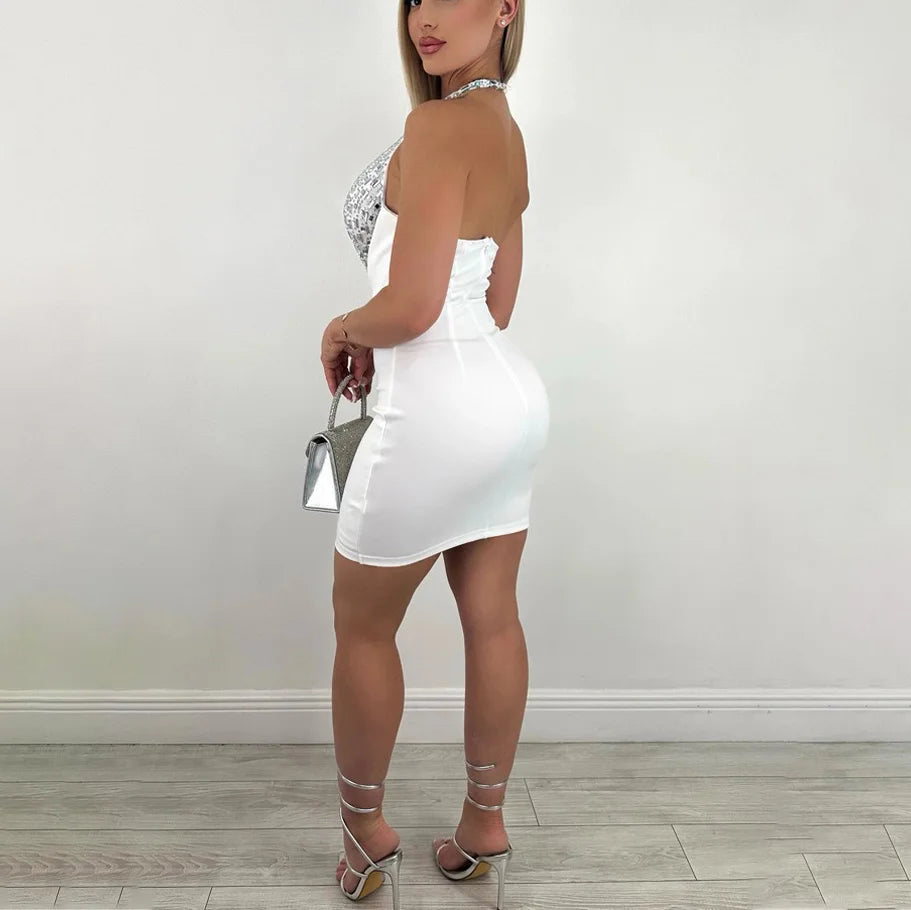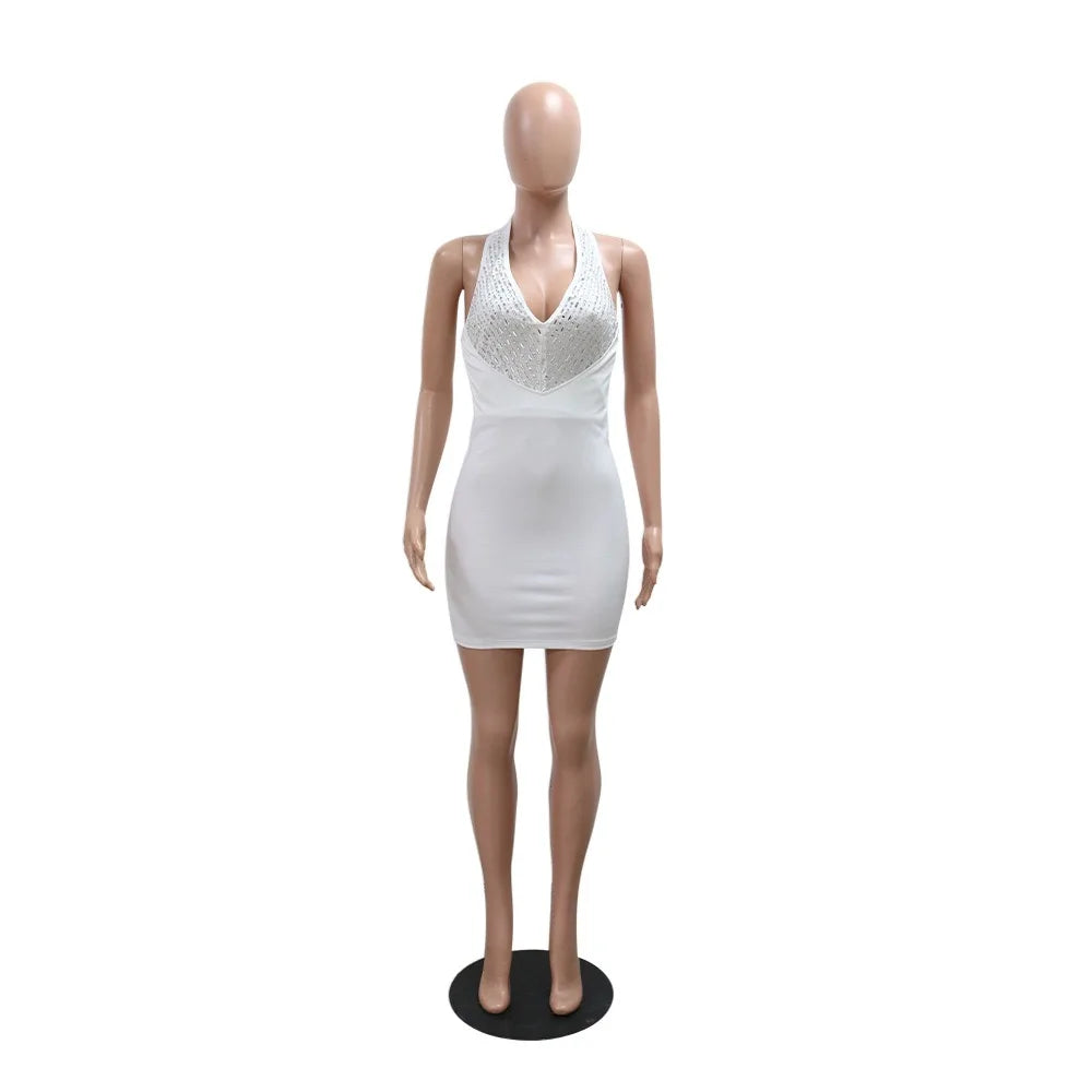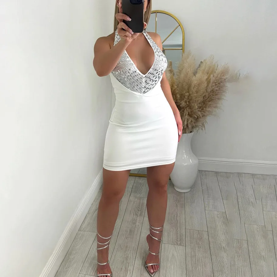 DAIIIBABYYY - Sexy Evening Dresses for Women Halter V Neck Backless Diamond Sheath Mini Length Elegant Evening Night Party Club Vestidos Mujer