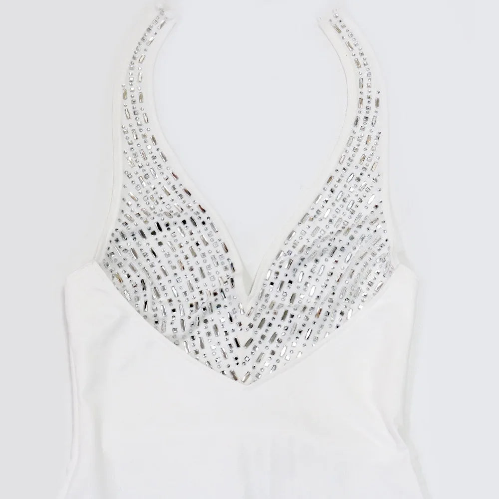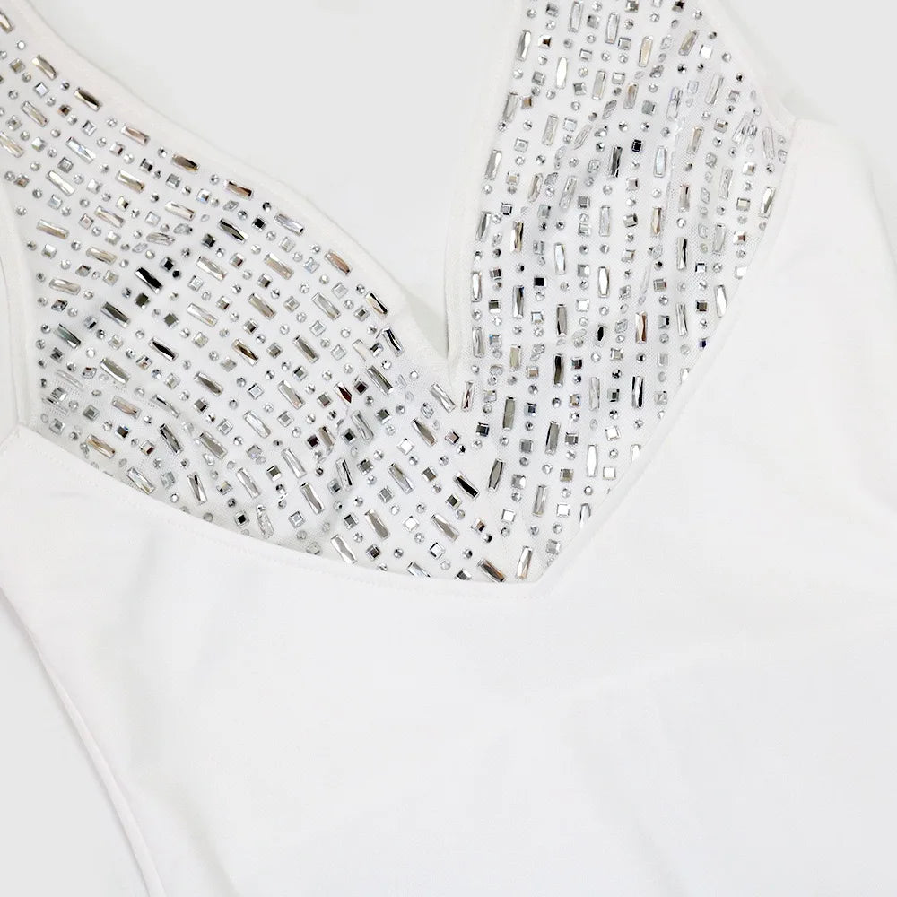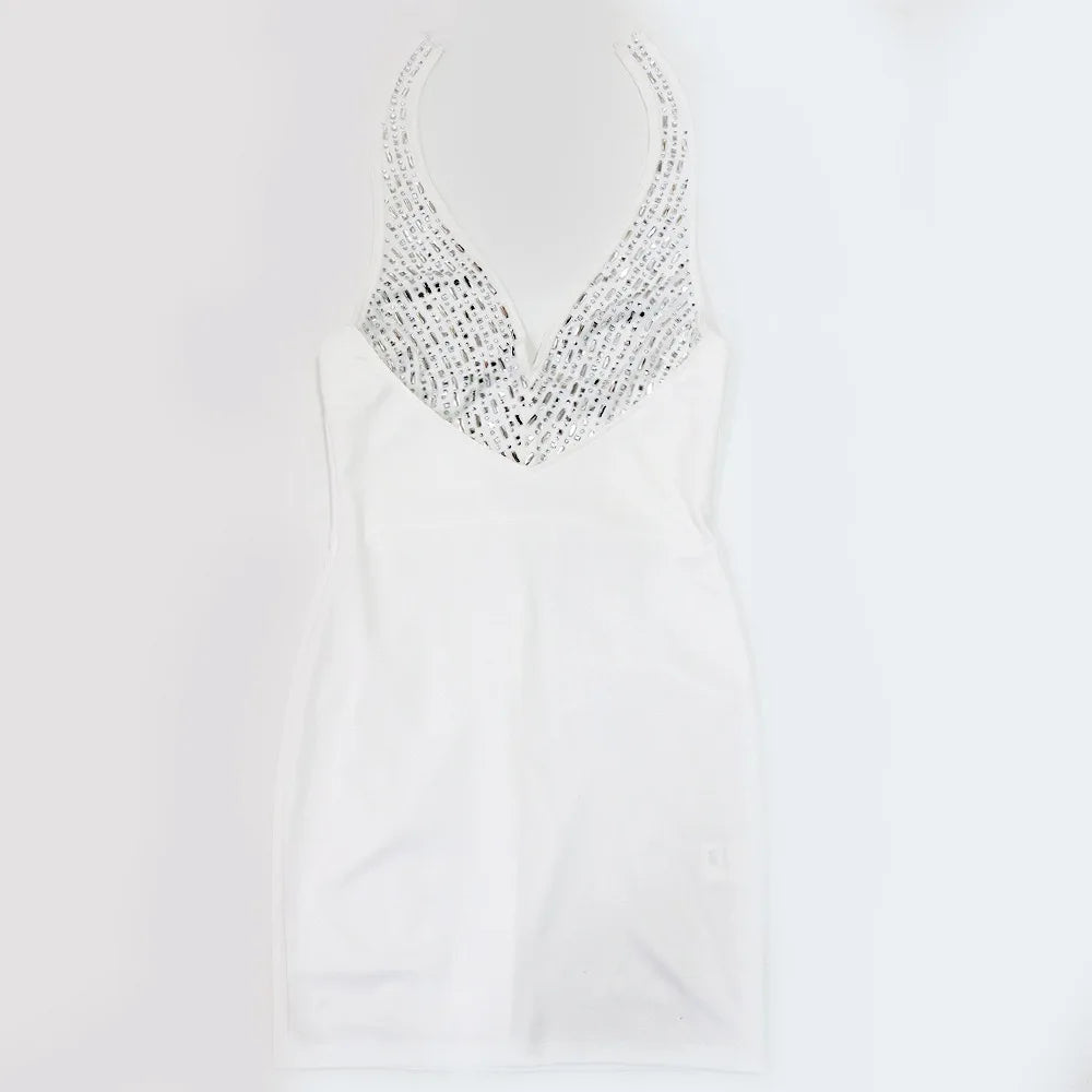 DAIIIBABYYY - Sexy Evening Dresses for Women Halter V Neck Backless Diamond Sheath Mini Length Elegant Evening Night Party Club Vestidos Mujer