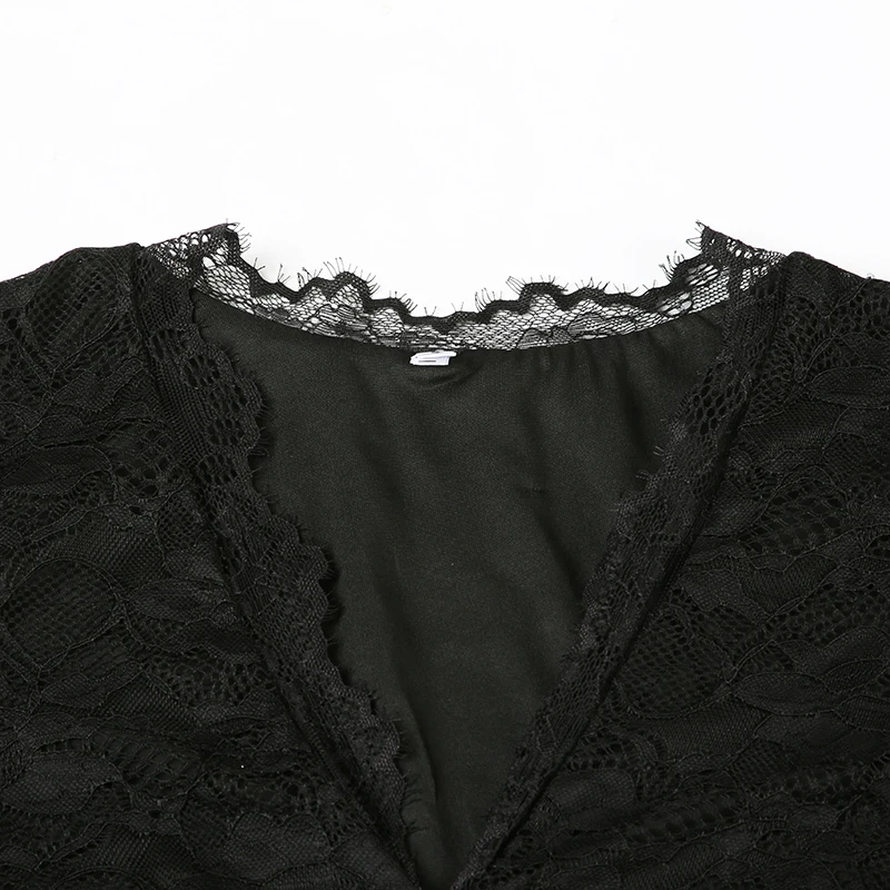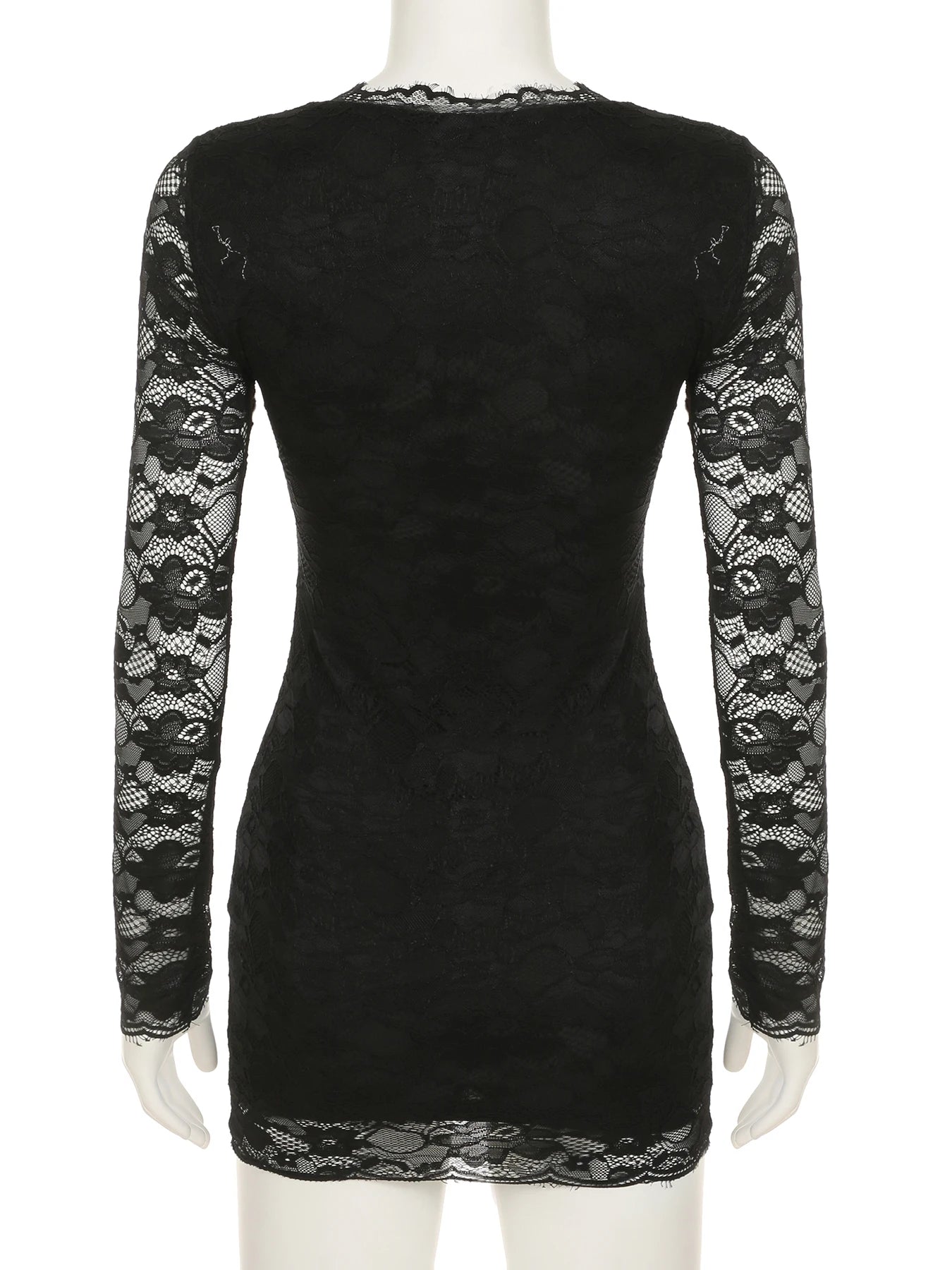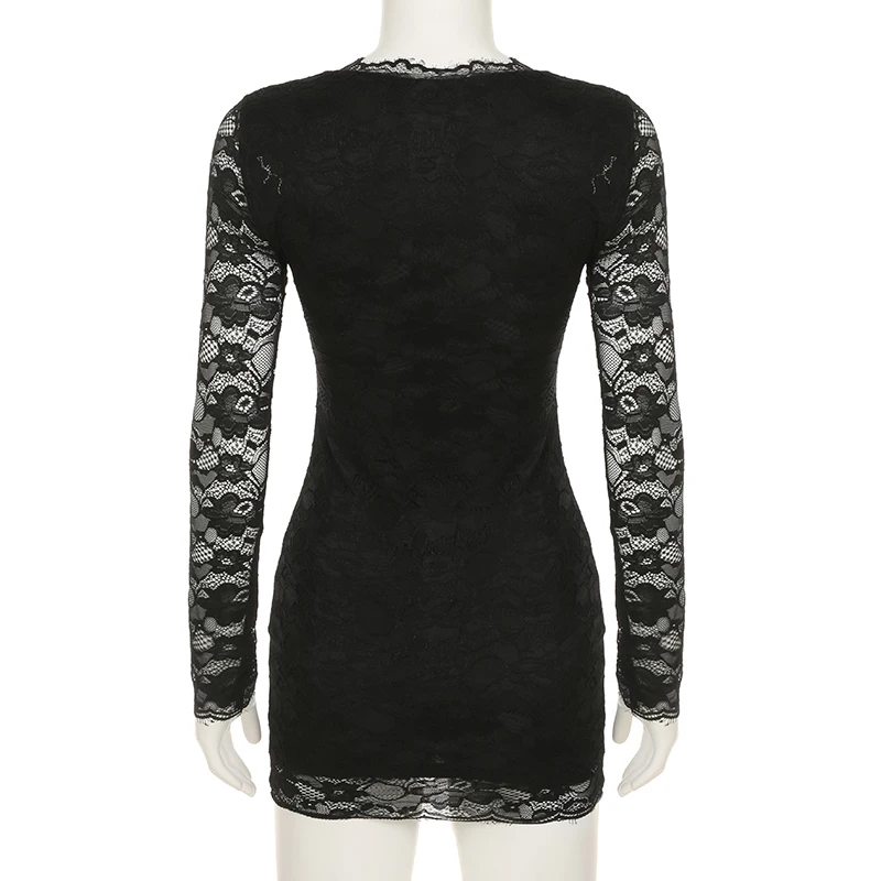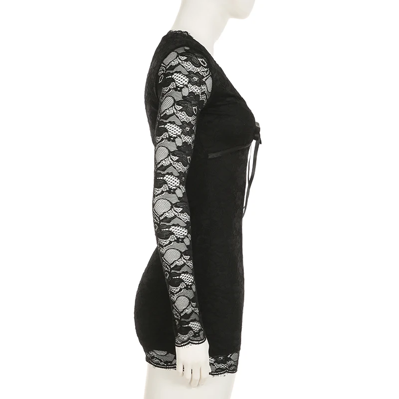 DAIIIBABYYY - Sexy Slim Lace Bodycon Dress Casual Bow V-Ncek Long Sleeve Mini Dresses For Women 2025 Spring Autumn Streetwear Lady
