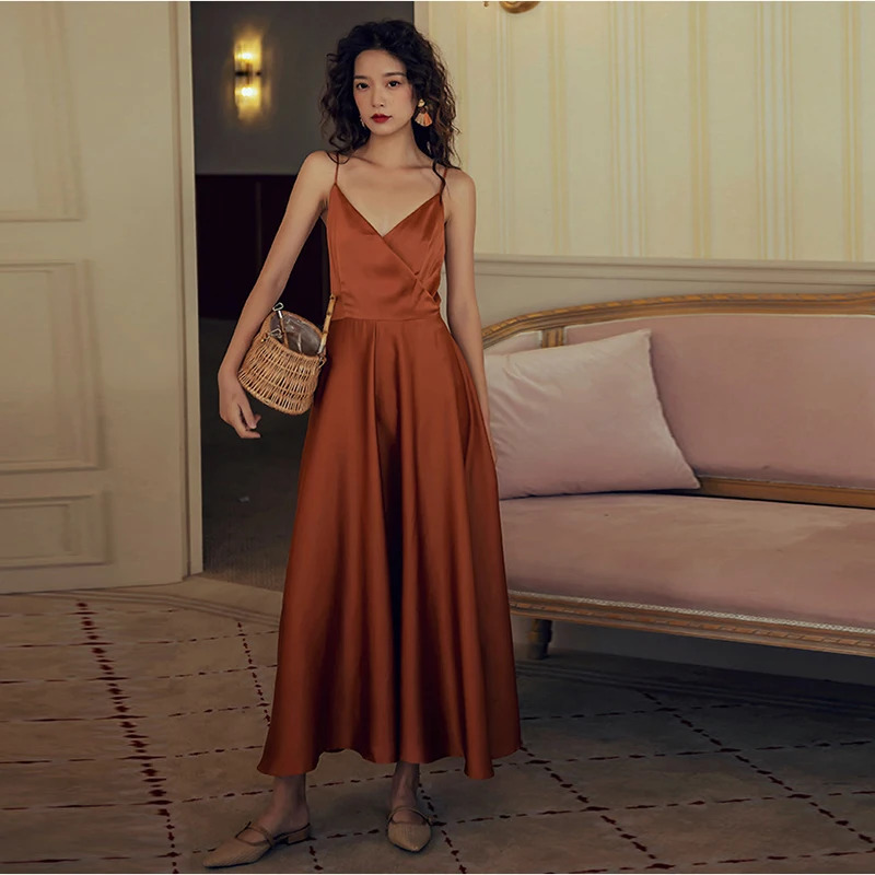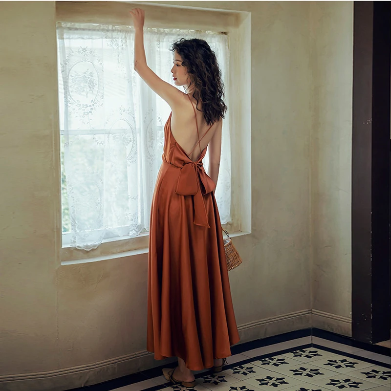 Daiiibabyyy Sexy Sling v-Neck Long Dress Summer A-Line Backless Back Cross Bow-knot Satin Women Party Club Bar Dress New