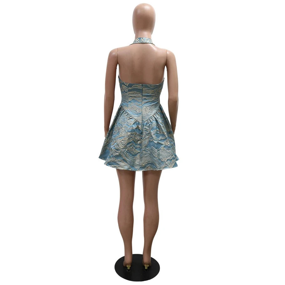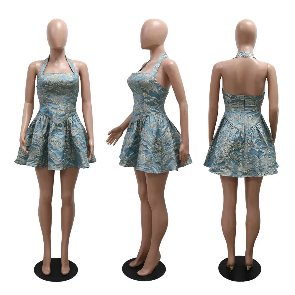 Daiiibabyyy Sexy Spaghetti Strap Dresses for Women Halter Backless High Waisted A Line Mini Length Elegant Evening Night Party Vestidos Gown