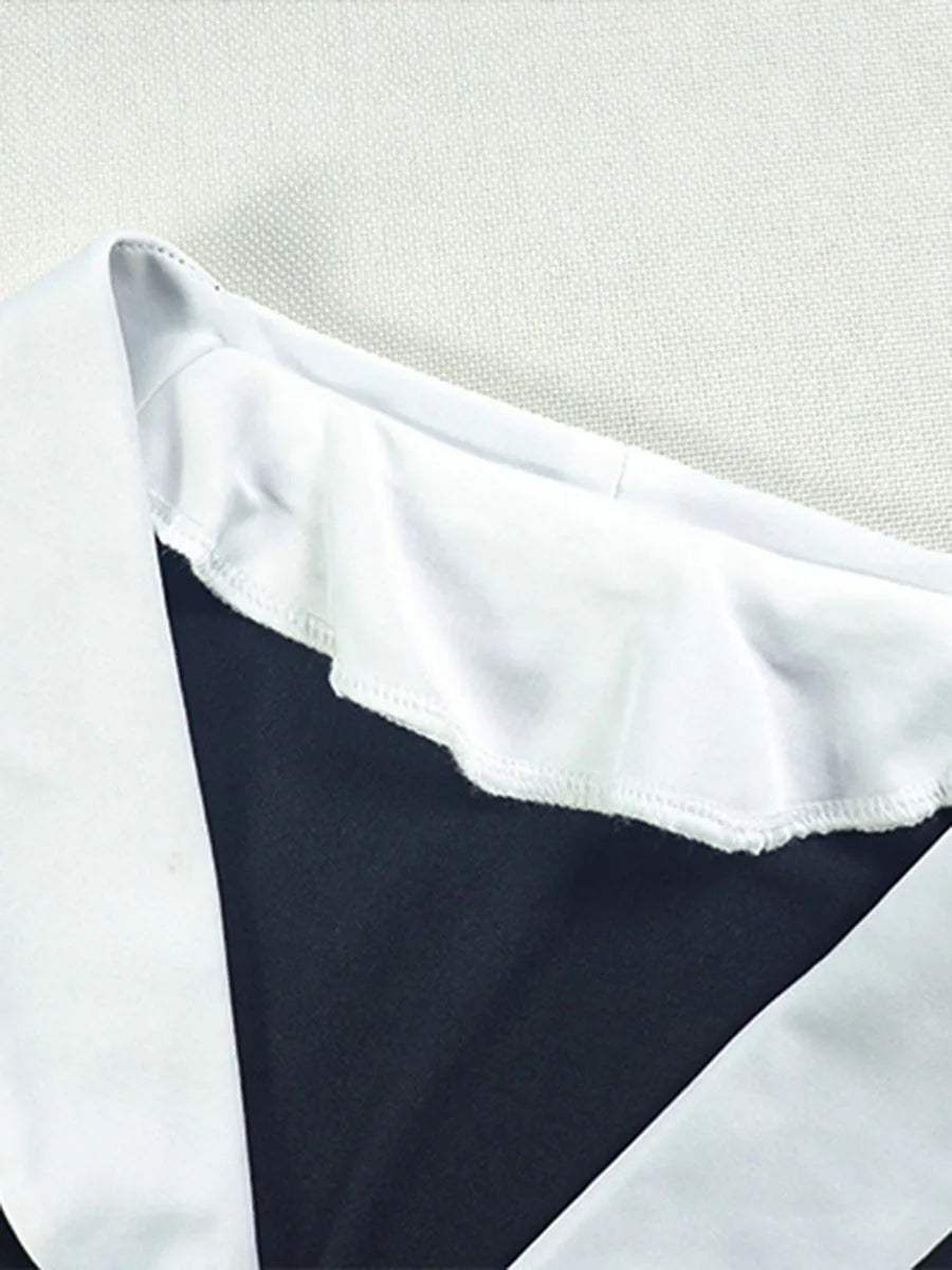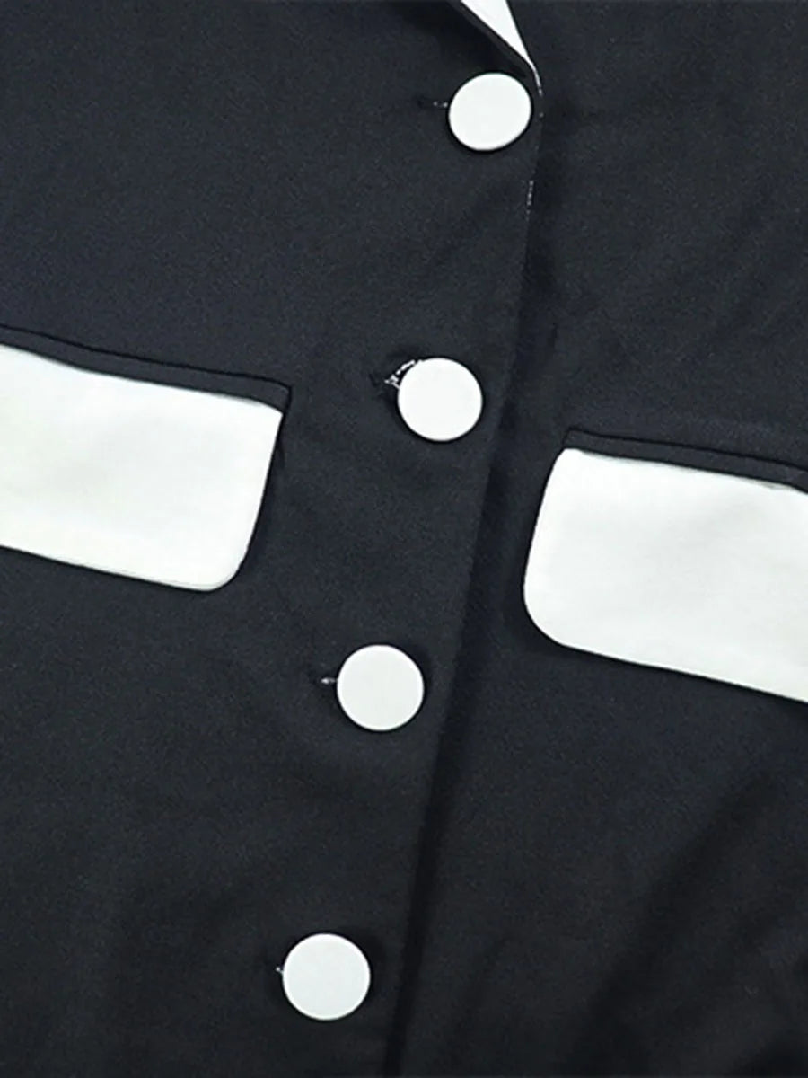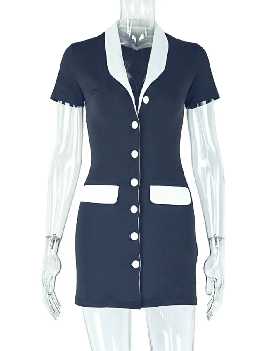 Daiiibabyyy Sexy Spliced Pockets Slimming Dress for Women Lapel Short Sleeves High Waist Temperament Chic Evening Dresses Female New