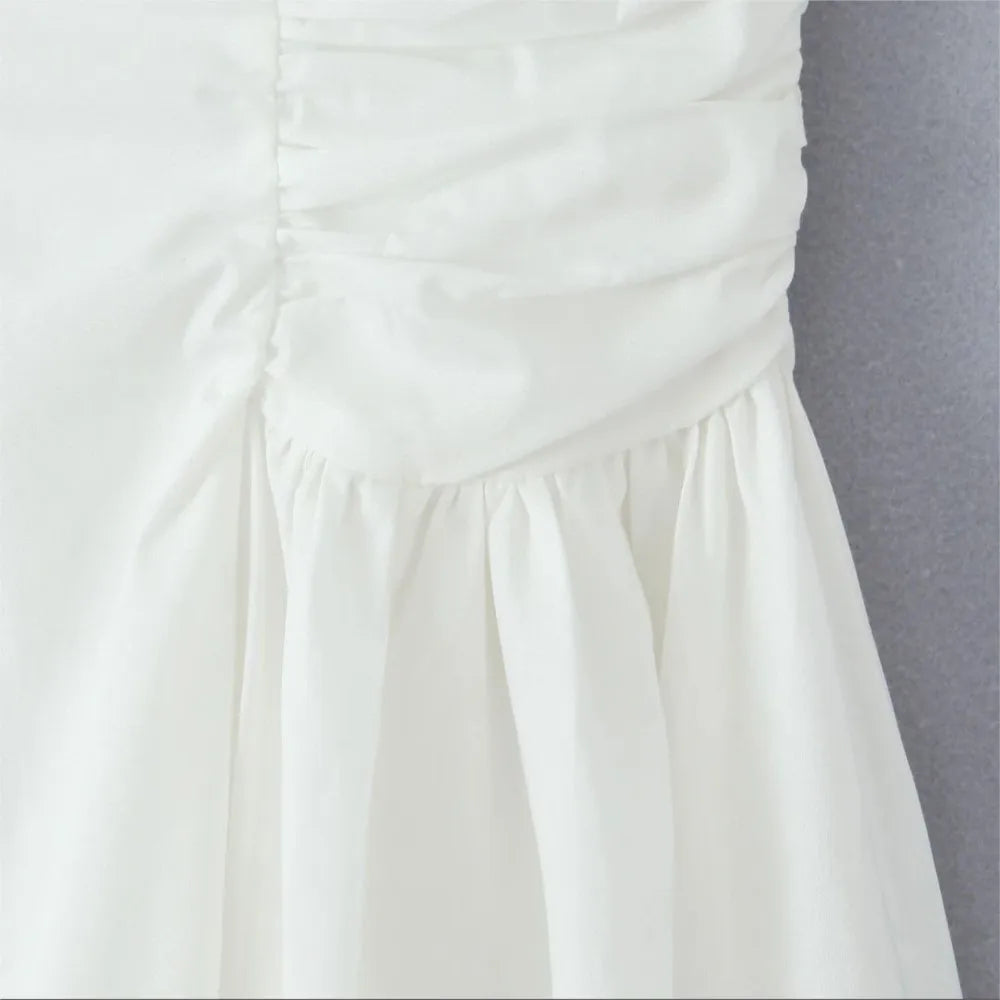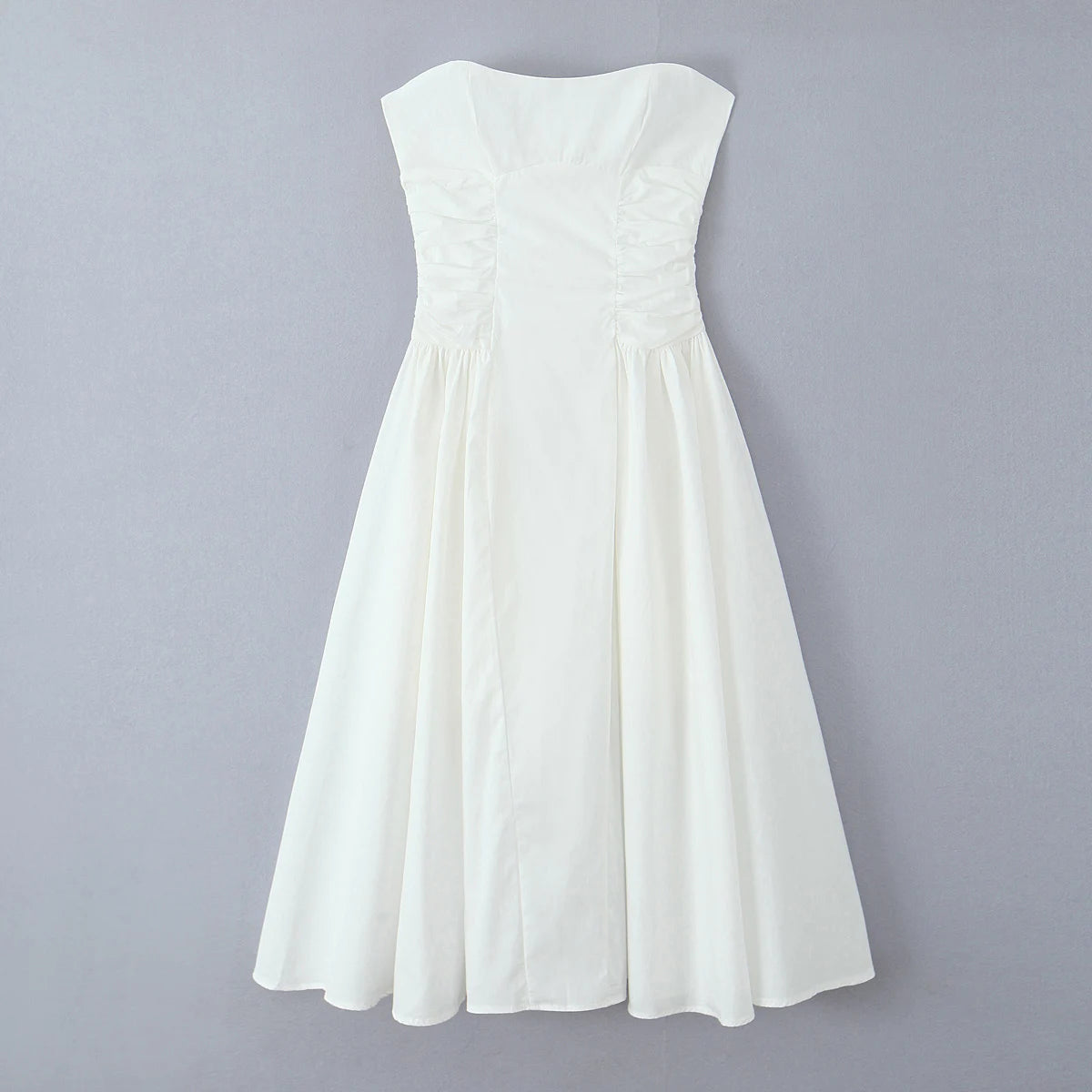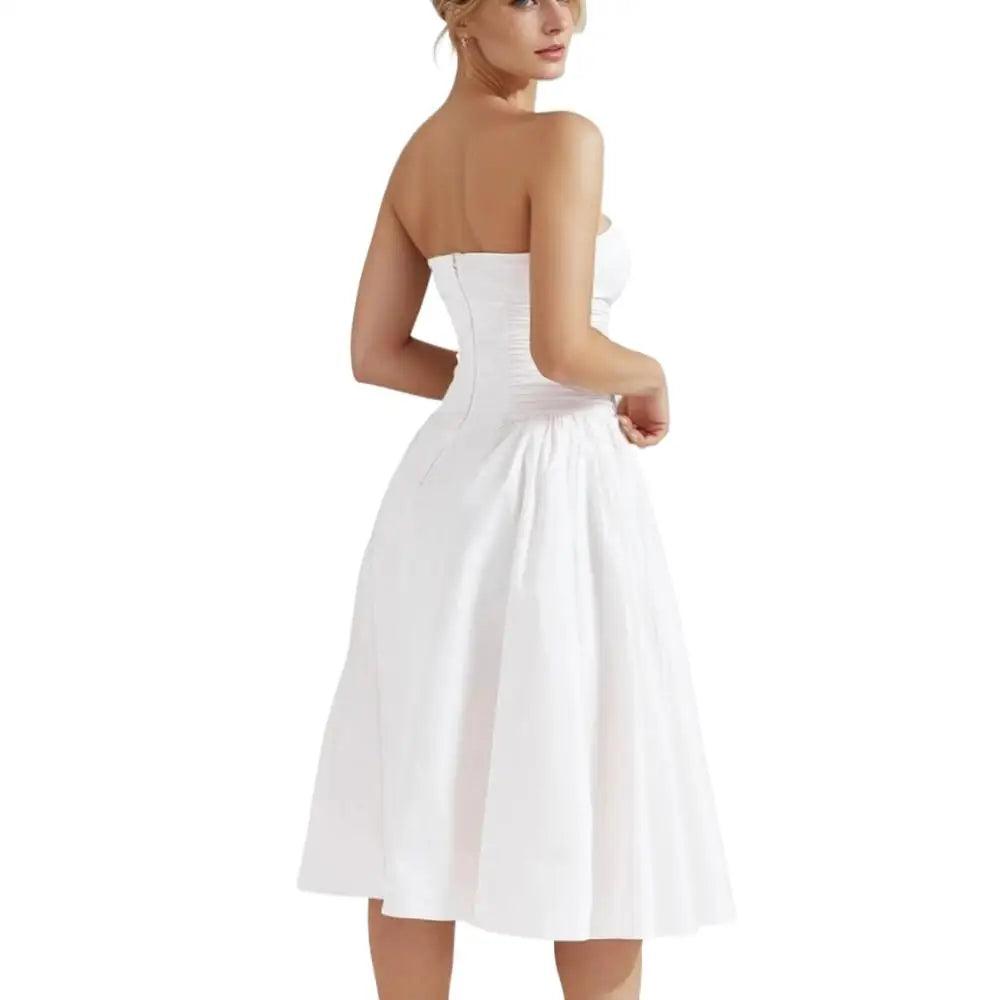 Daiiibabyyy Sexy White Slash Collar Backless Midi Long Strapless Dress Women Pleated Folded Low Waist Pleated Ruched Hem Swing Party Robe