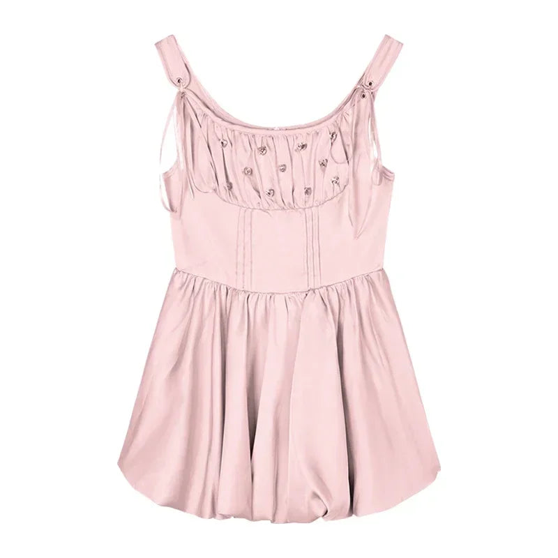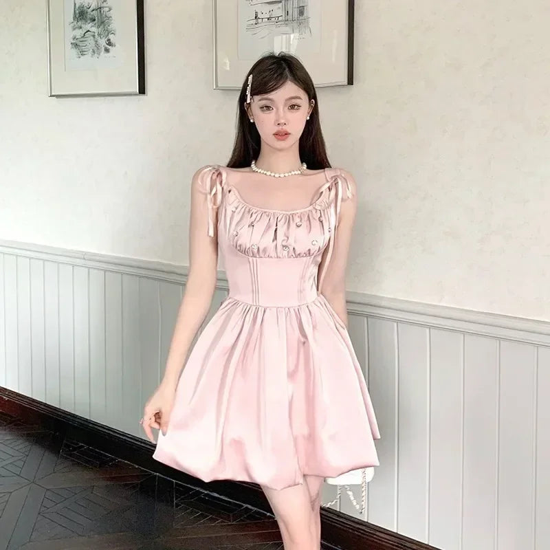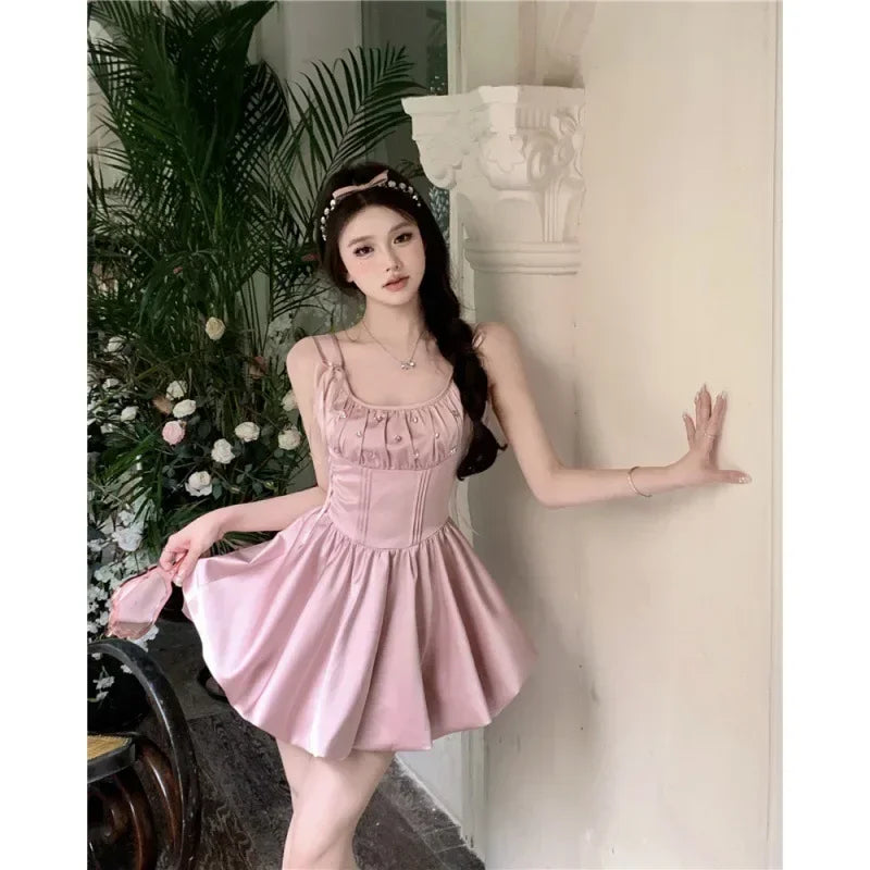 DAIIIBABYYY  -  Sexy Women Little Pink Dress Satin Beading Corset Slim Suspender Short Mini Dress Fashion Short Elegant Birthday Party Dress