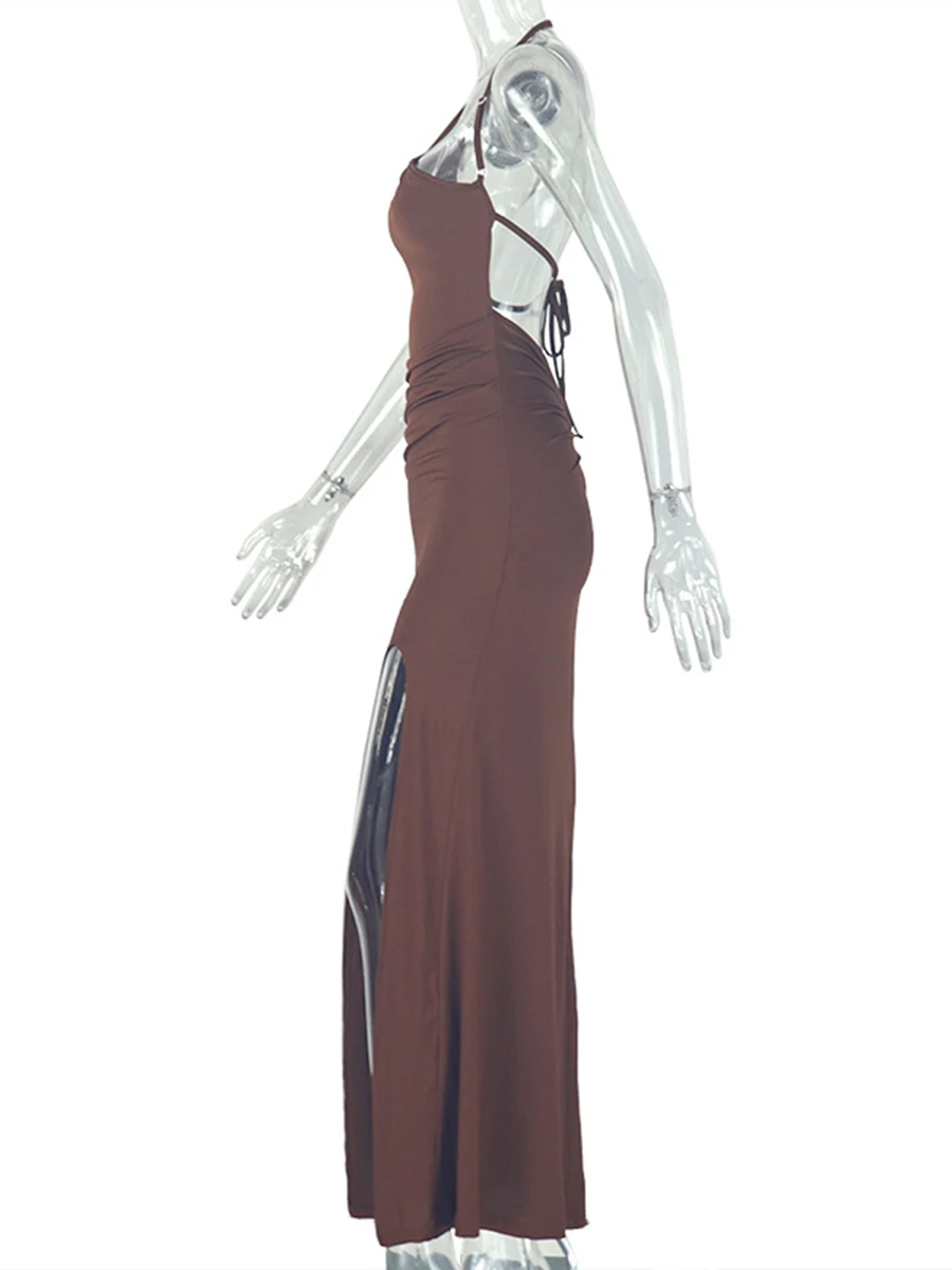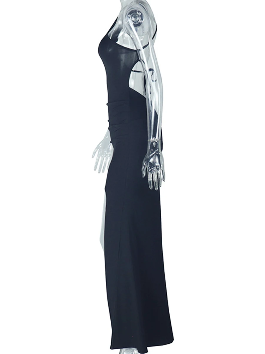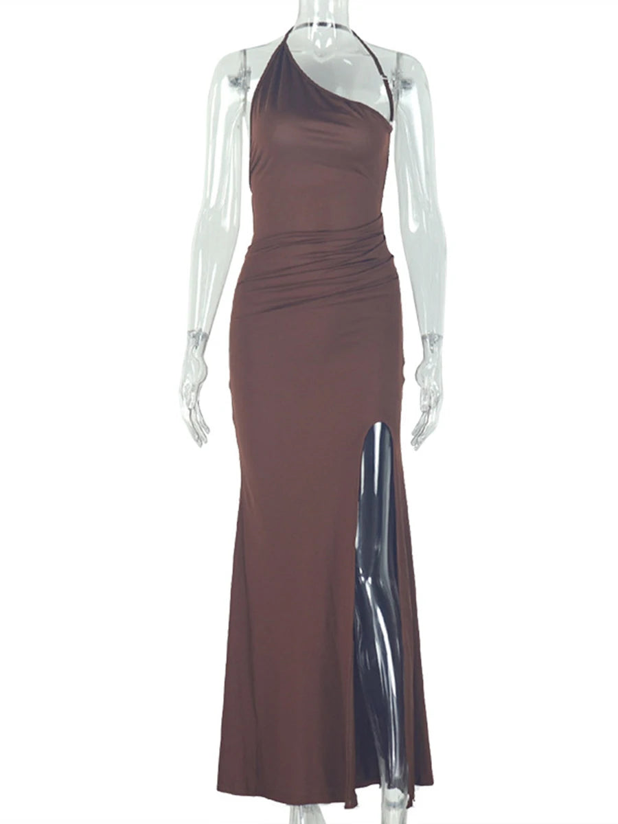 DAIIIBABYYY - Solid Slimming Backless Evening Dresses for Women Diagonal Collar One Shoulder Sleeve High Waist Elegant Dress Female New