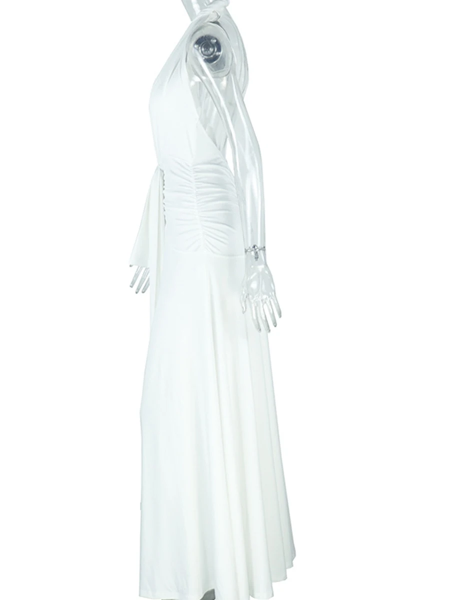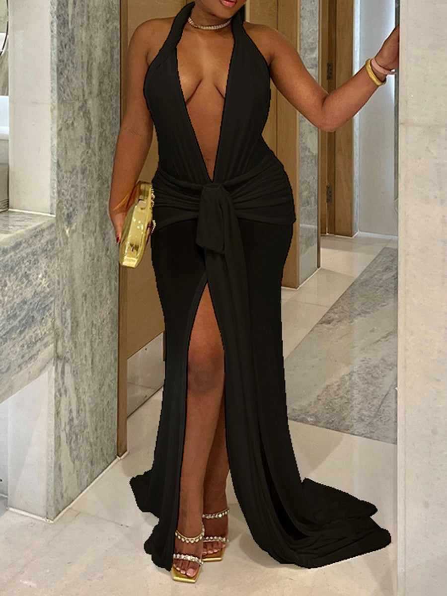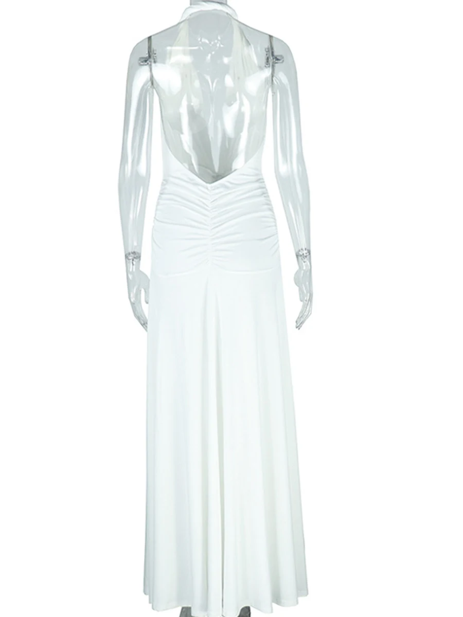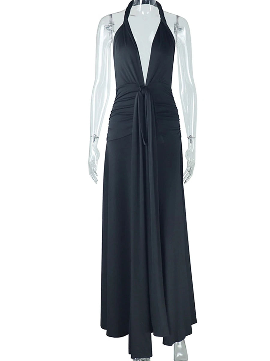 DAIIIBABYYY  -  Solid Spliced Folds Slimming Backless Dresses For Women Halter Sleeveless Spliced Lace Up Chic Dress Female Fashion Style