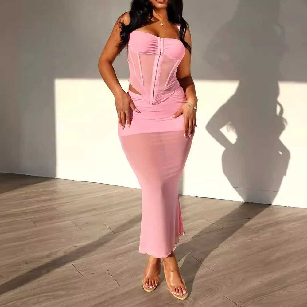 DAIIIBABYYY - Solid Temperament Slimming Dresses For Women Strapless Sleeveless Backless High Waist Elegant Chic Dress Female Fashion New
