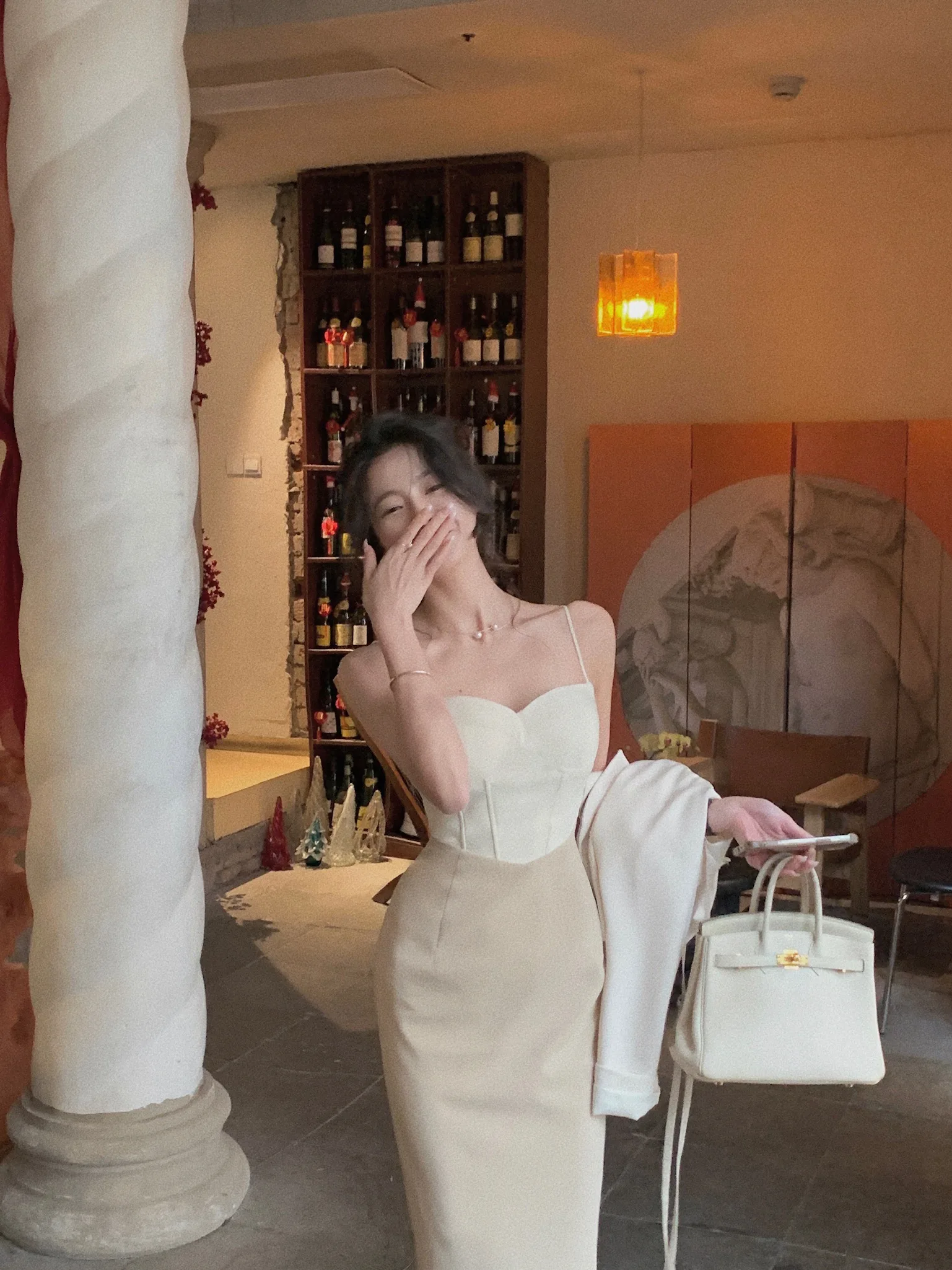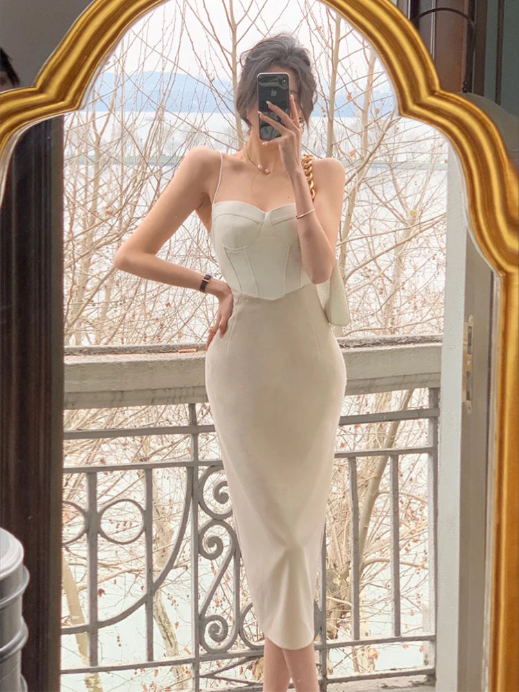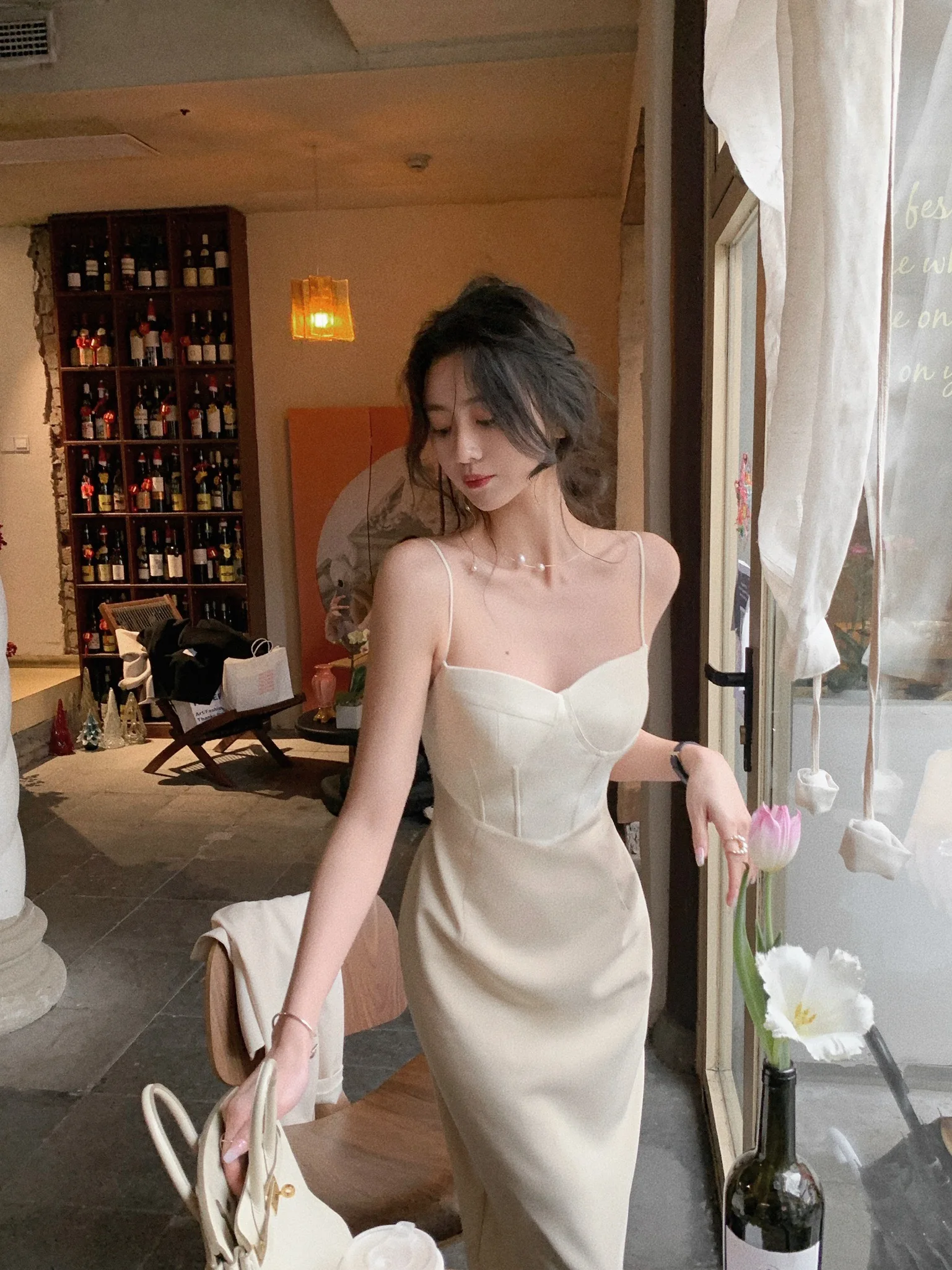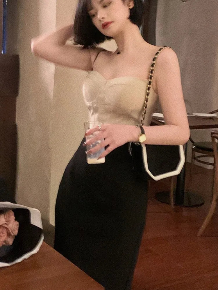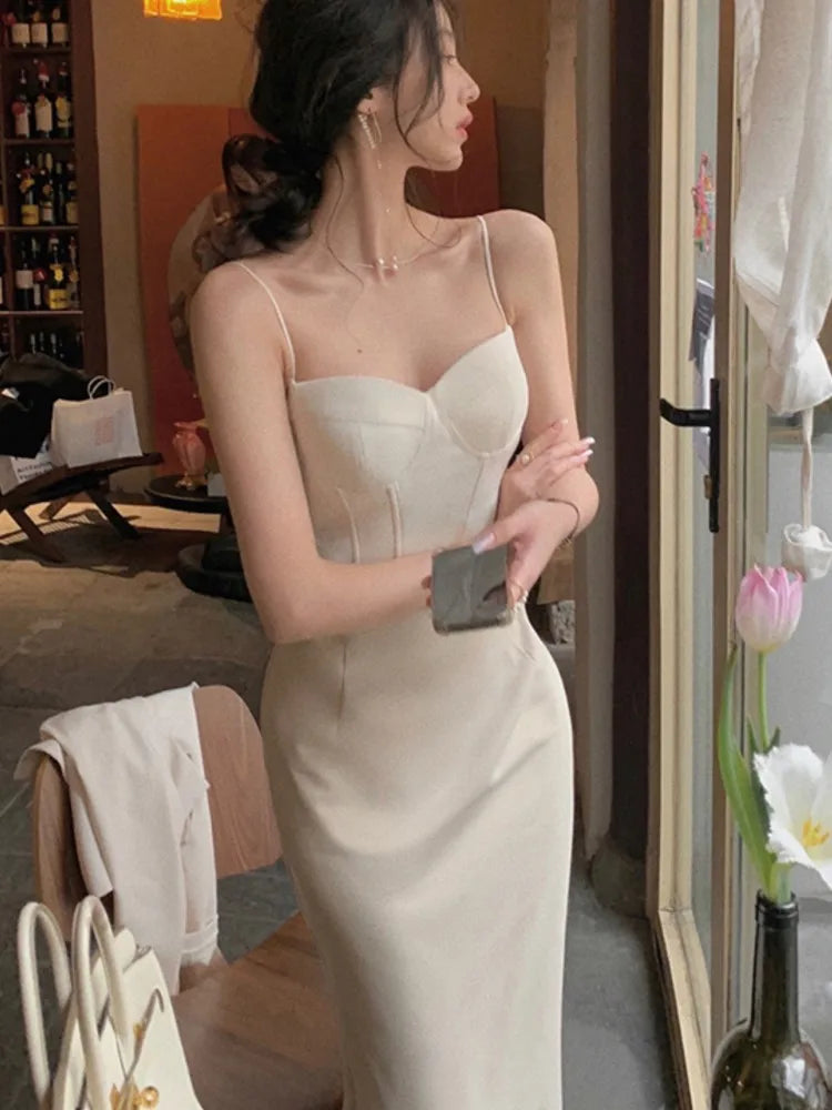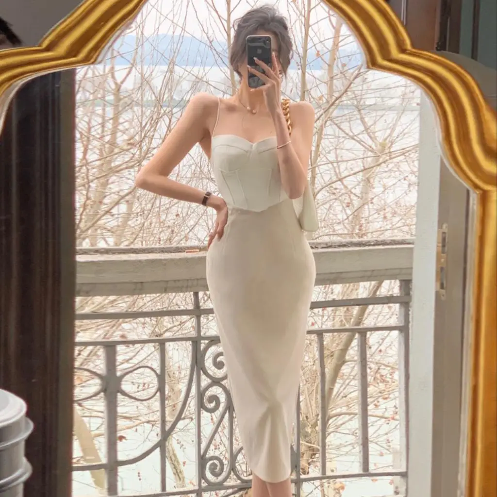 DAIIIBABYYY - Spaghetti Strap Sexy Bodycon Midi Dress for Women Summer Elegant Luxury Corset Ruched Slim Party Evening Vestidos