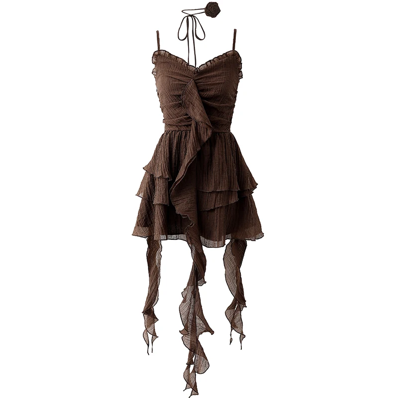 DAIIIBABYYY  -  Spicy Girl Retro V-neck Sleeveless Waist Suspender Dresses Women Summer Sexy Three-dimensional Flower Backless Short Sling Dress