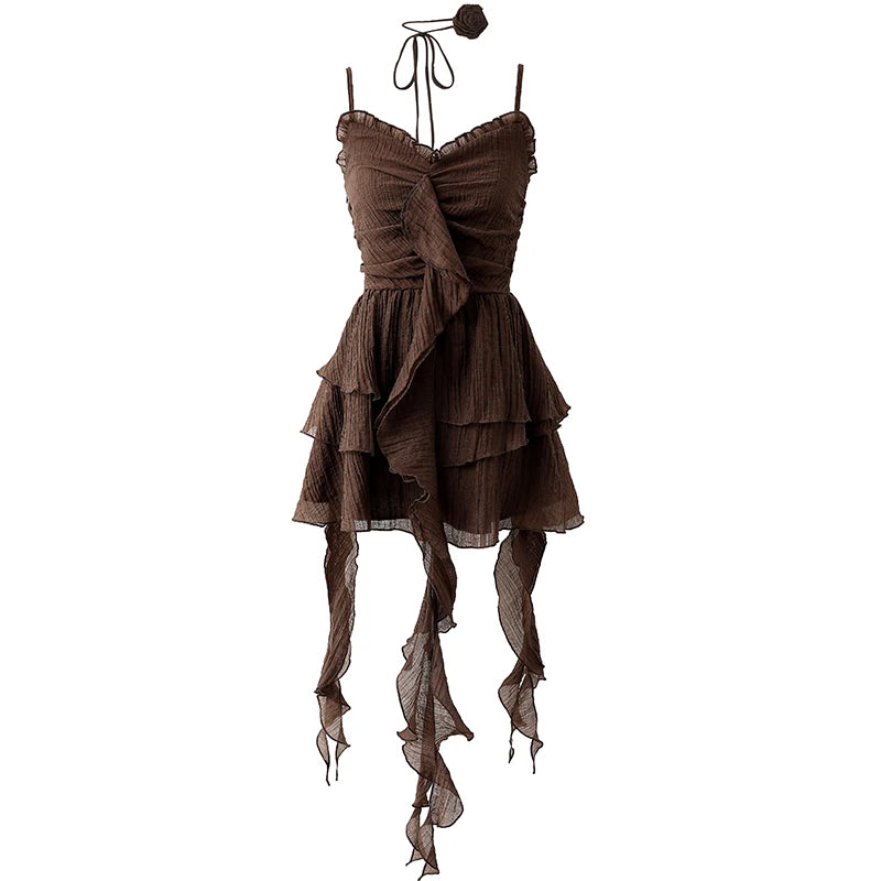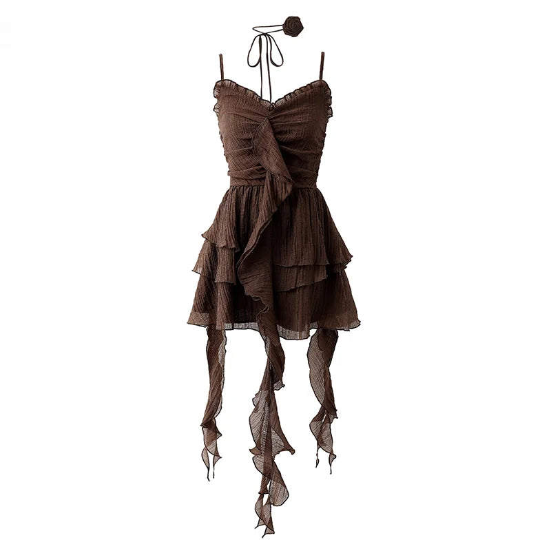 DAIIIBABYYY - Spicy Girl Retro V-neck Sleeveless Waist Suspender Dresses Women Summer Sexy Three-dimensional Flower Backless Short Sling Dress