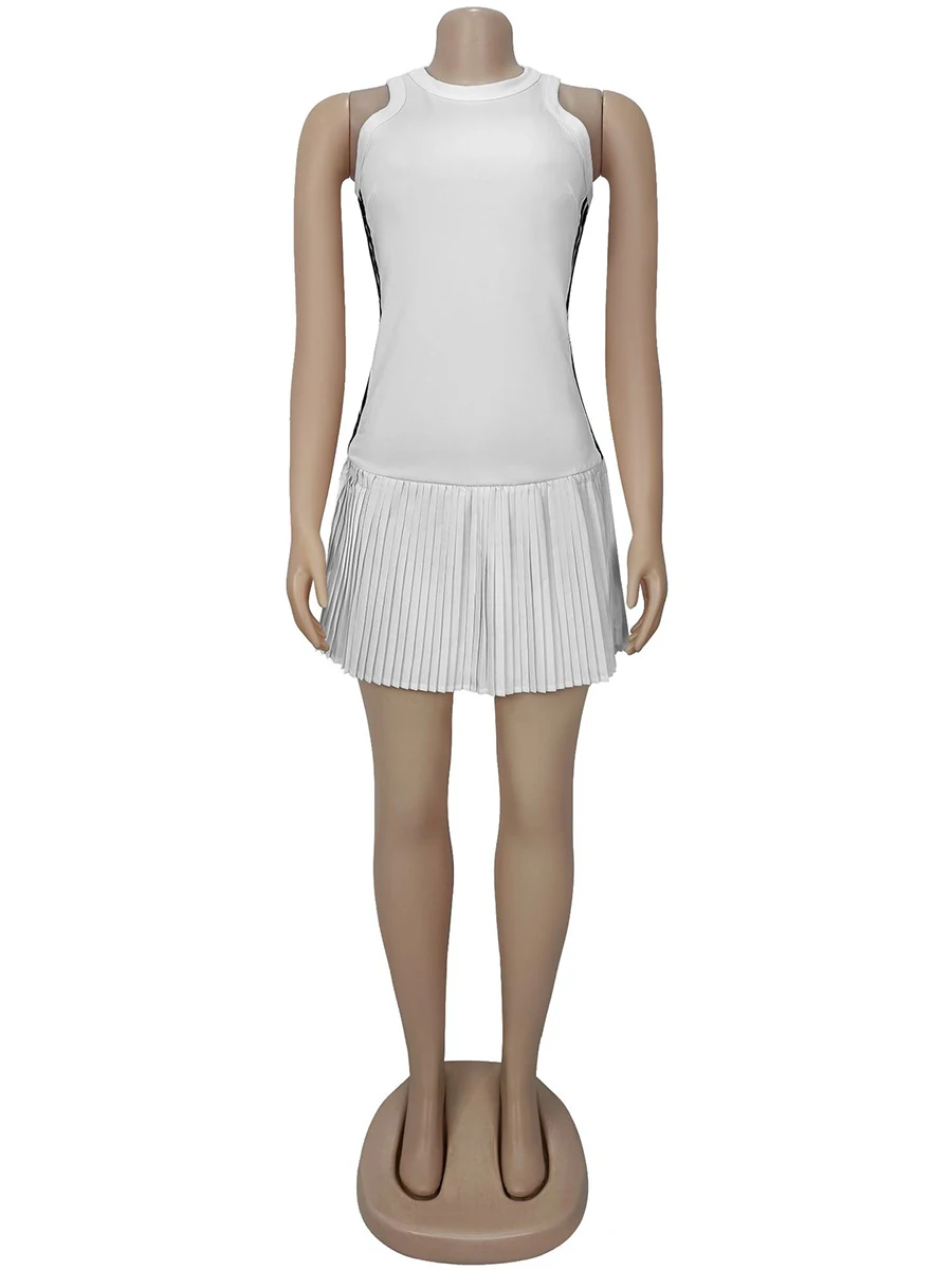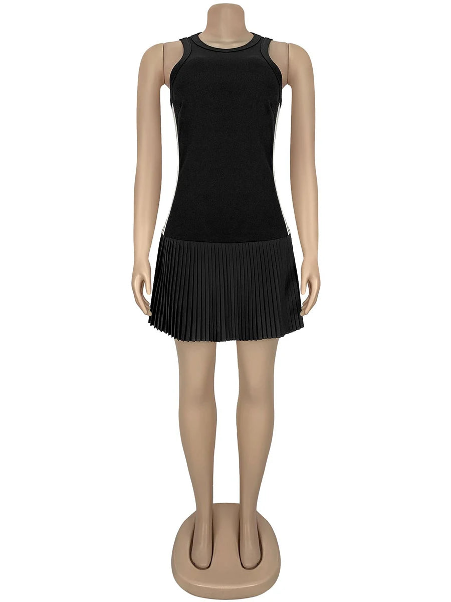 Daiiibabyyy  Stripe Slimming Sexy Chic Mini Dresses for Women Round Neck Sleeveless High Waist Temperament Dress Female Fashion Style
