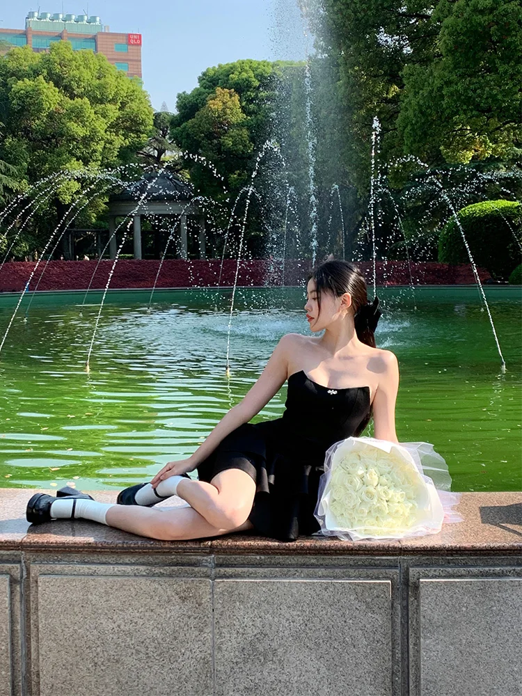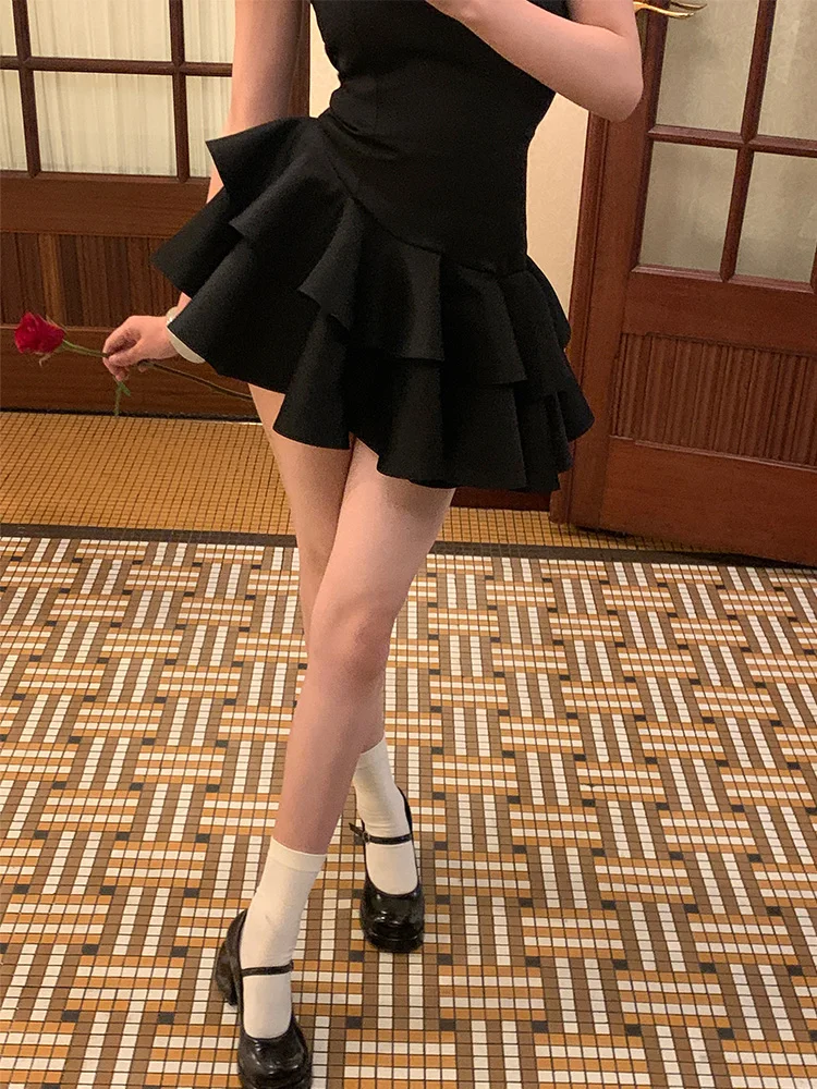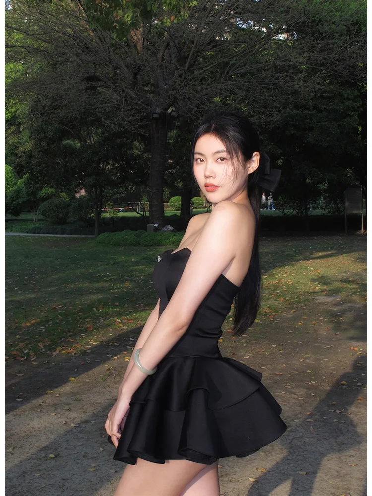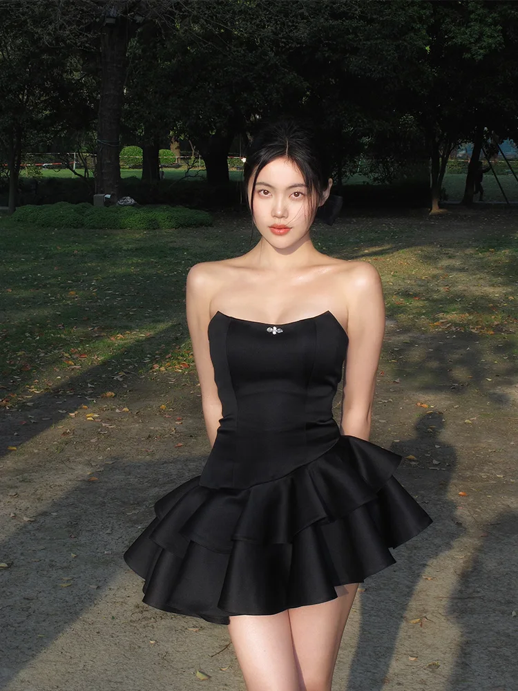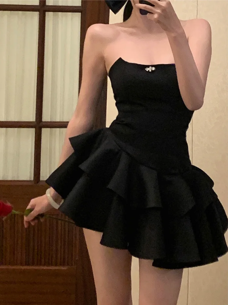 DAIIIBABYYY - Summer Black Dress Womens Dress Tube Top Ceremonial Dress Irregular Fluffy Skirt Backless Sleeveless Sexy French Party Dress