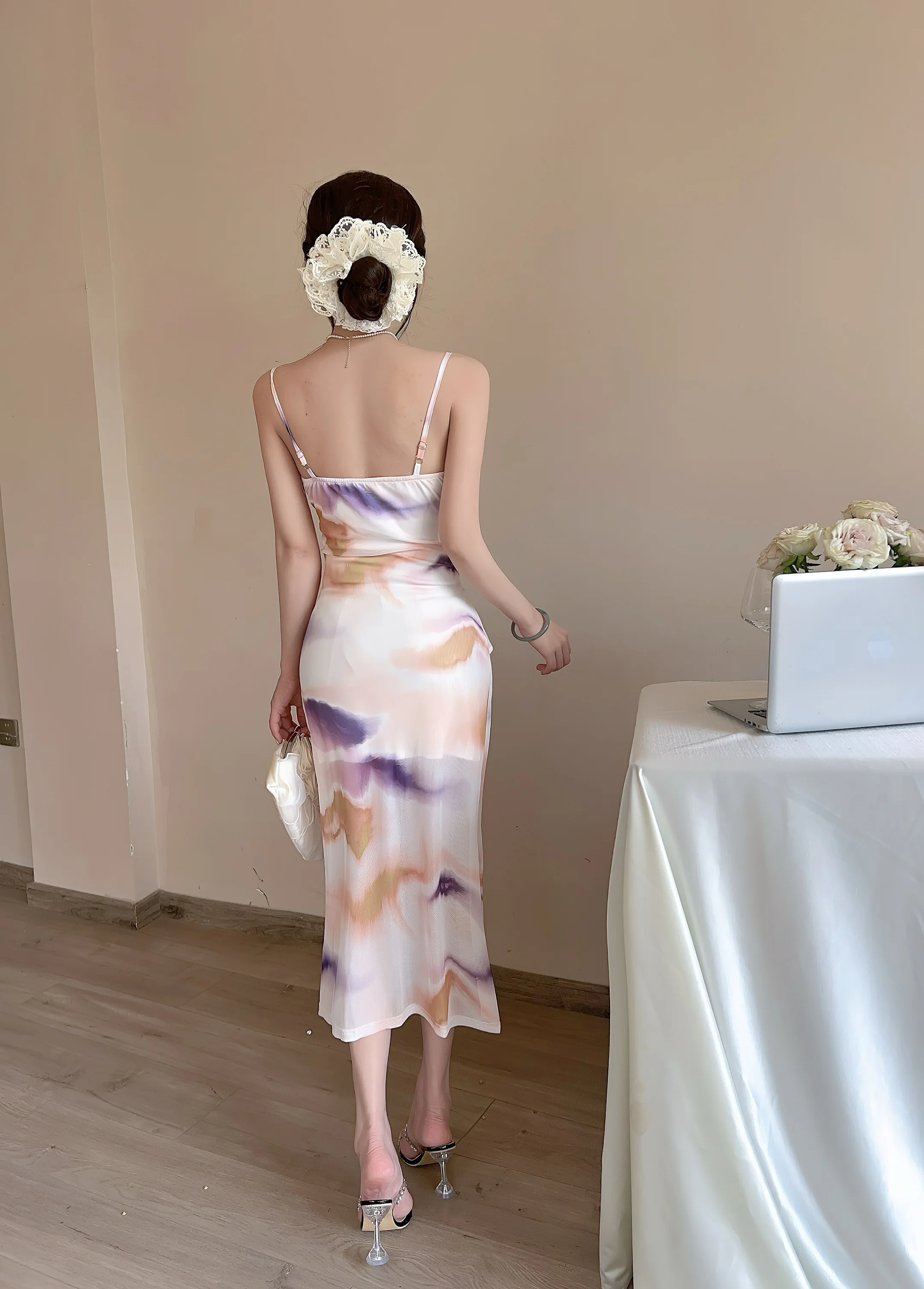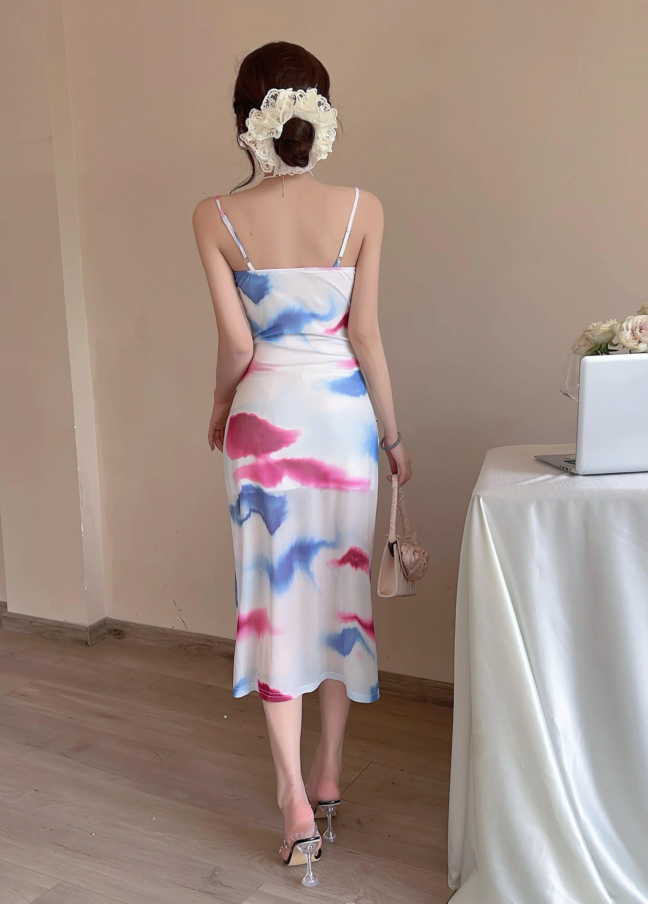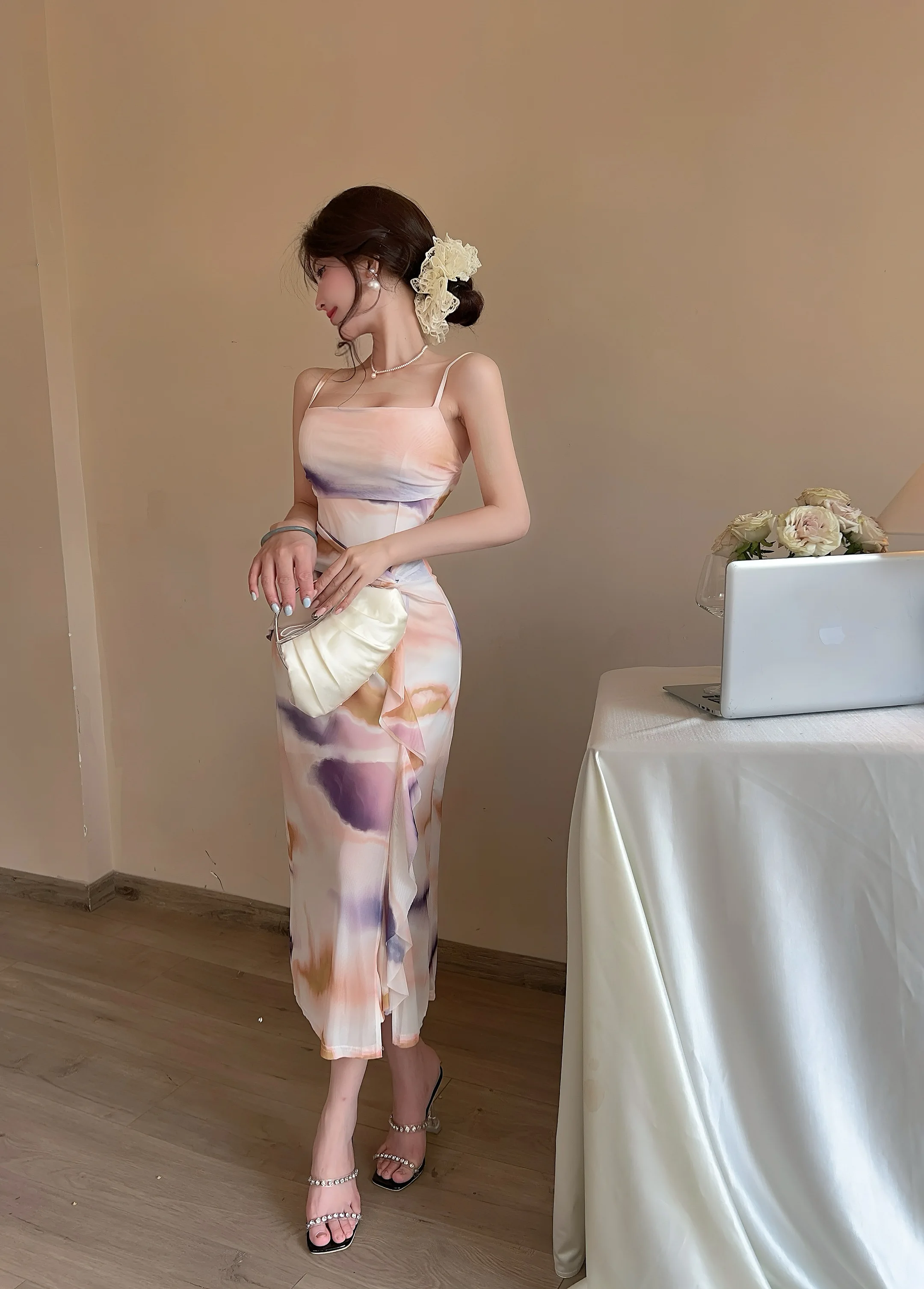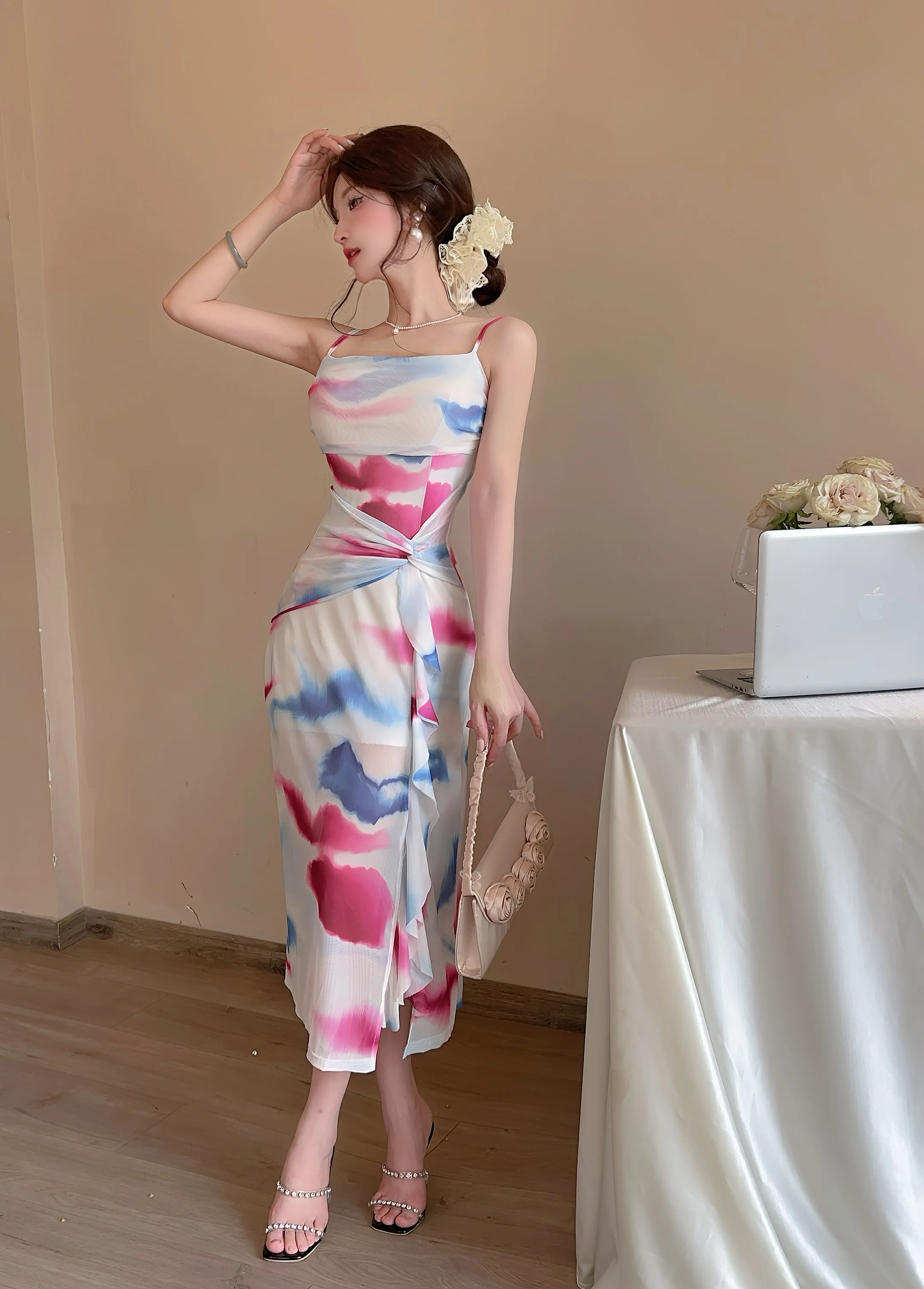 DAIIIBABYYY - Summer Boho Print Mesh Chic Ruffled Long Dress Women Elegant Bodycon Sling Sexy Dress 2025 Korean Fashion Luxury One Piece Dress