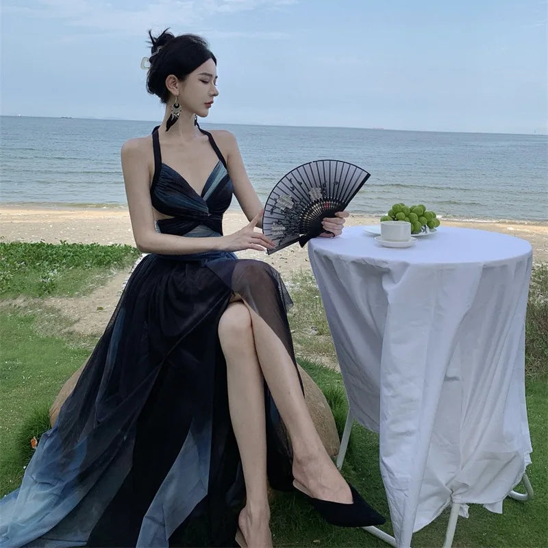 DAIIIBABYYY  -  Summer Casual Holiday Dress Women Beatutiful Halter Bandage Dress Fairy Tie-dye Backless Cut-out Seaside Beach Vestidos Sexy