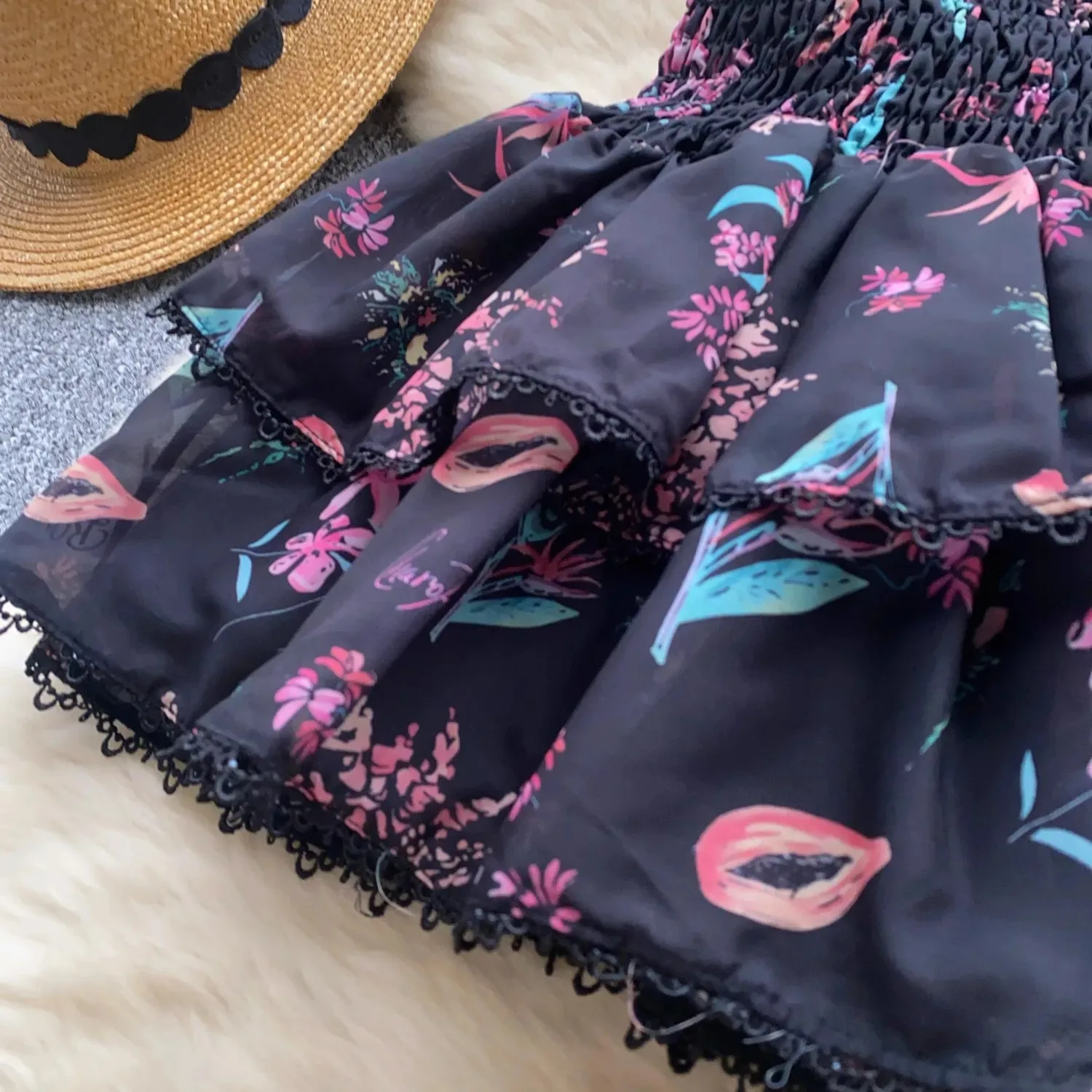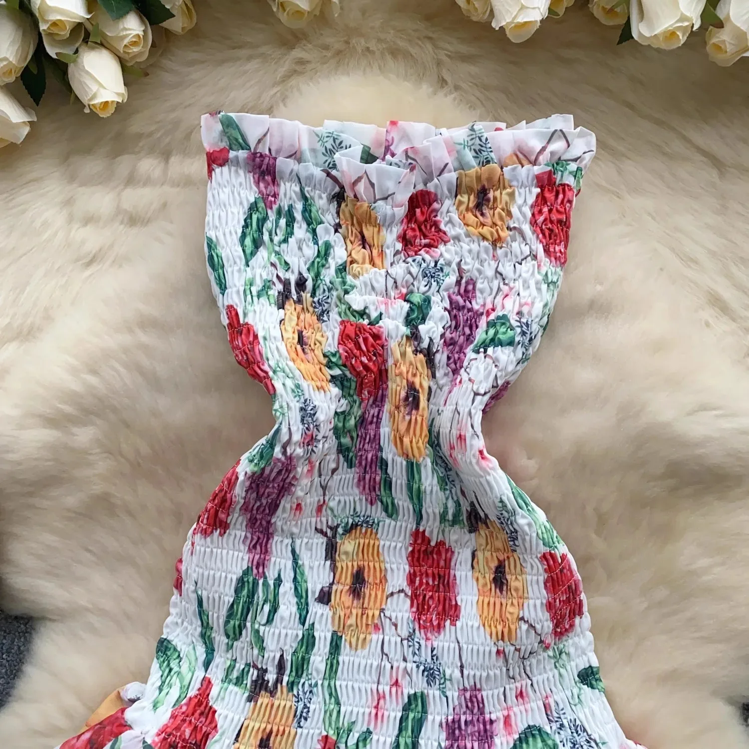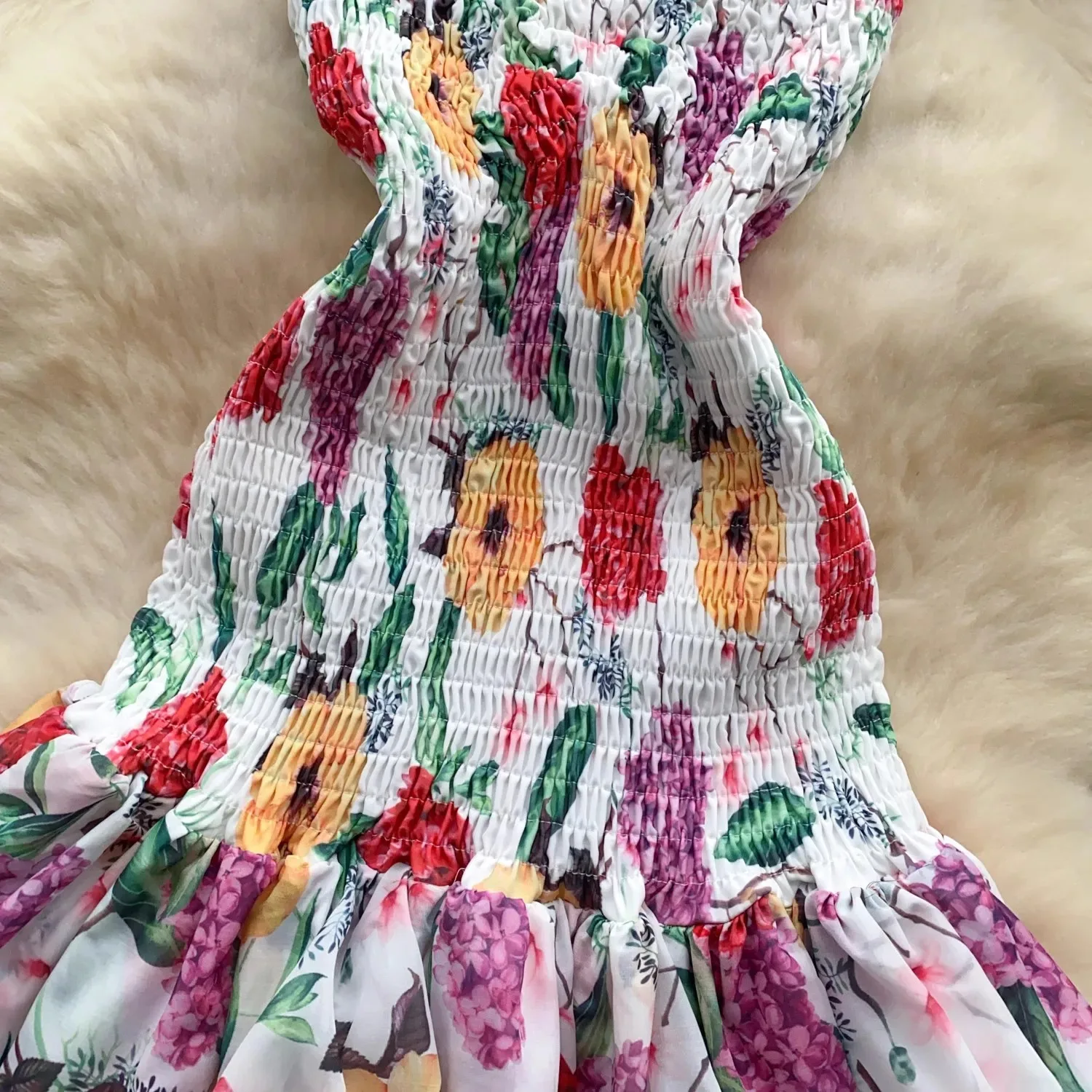 DAIIIBABYYY - Summer Floral Sundress Holiday Halter Print Corset Short Dress Women Sexy Backless Ruffles Cake Vestidos Mini Flower Beach Robe