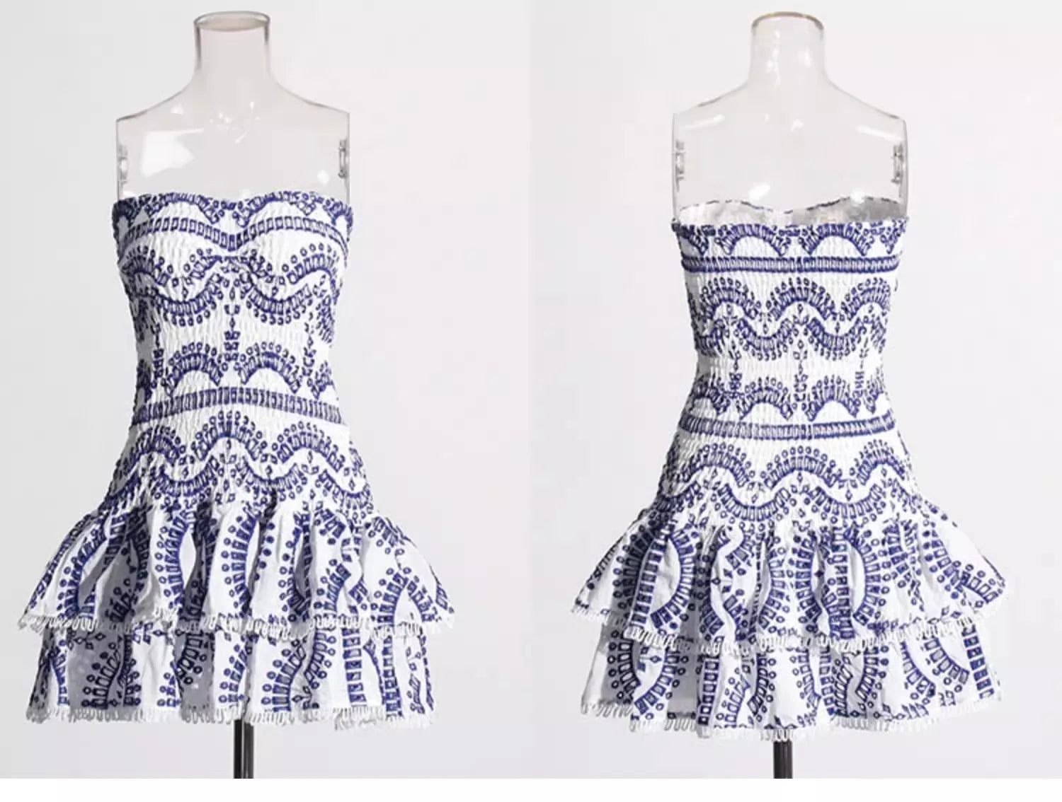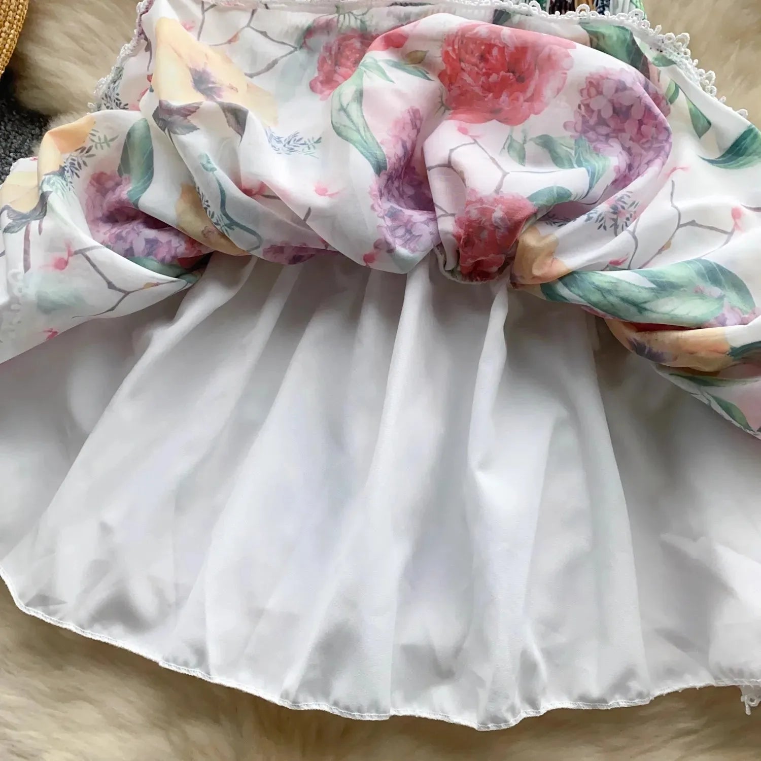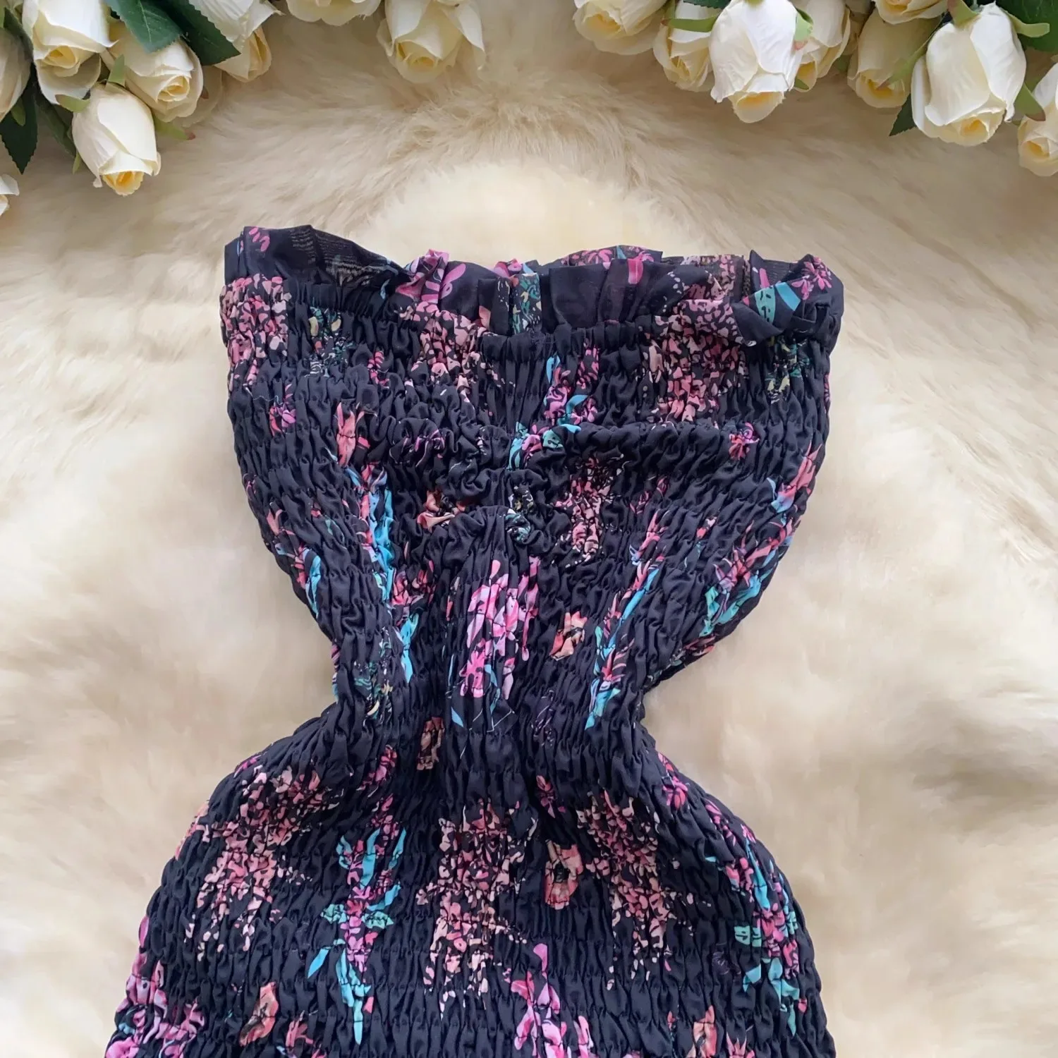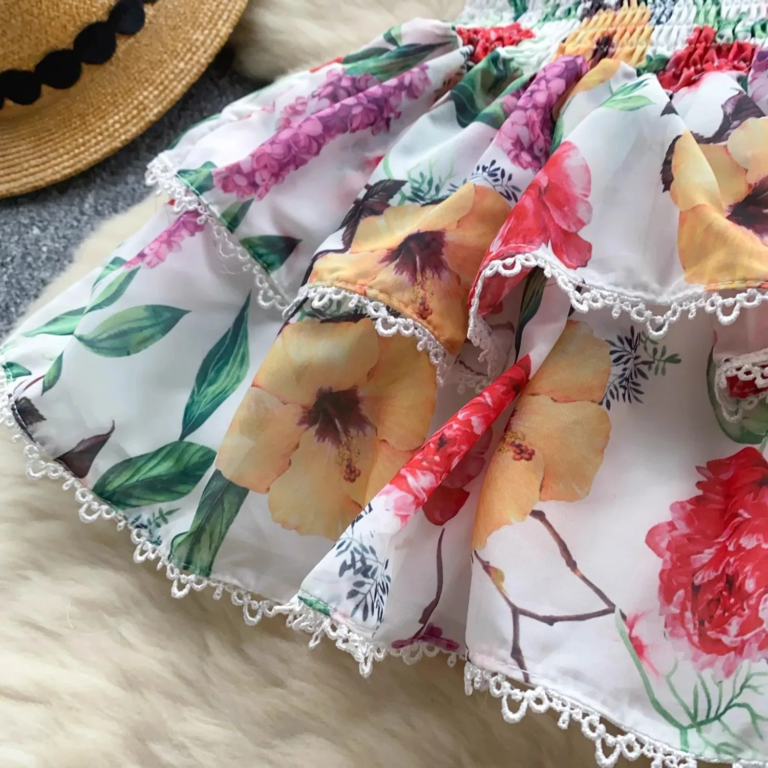 DAIIIBABYYY - Summer Floral Sundress Holiday Halter Print Corset Short Dress Women Sexy Backless Ruffles Cake Vestidos Mini Flower Beach Robe