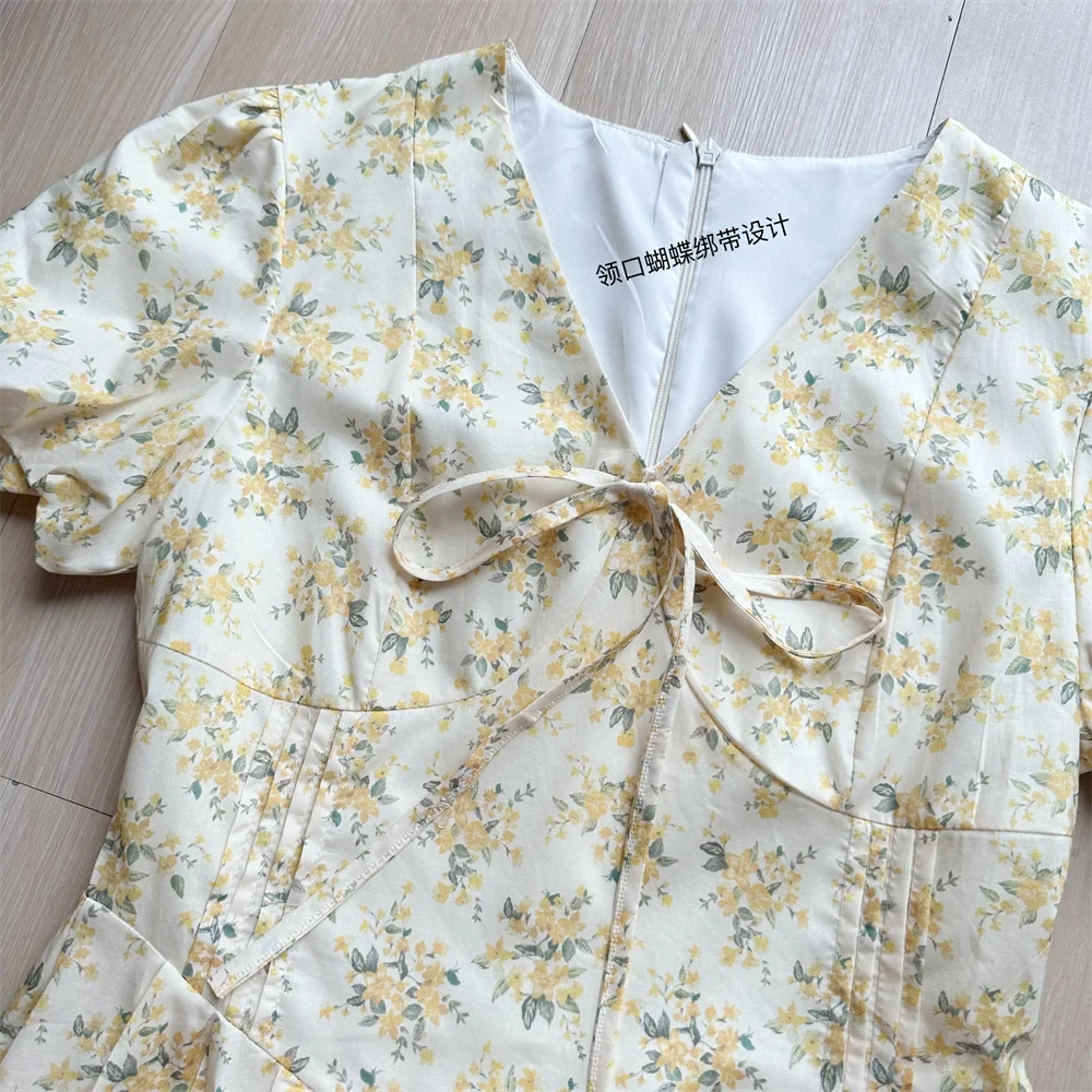 Daiiibabyyy Summer New Floral Pleated Short Dresses for Women V-neck Princess Birthday Party Dress Korean Chic One Piece Prom Vestidos Mujer