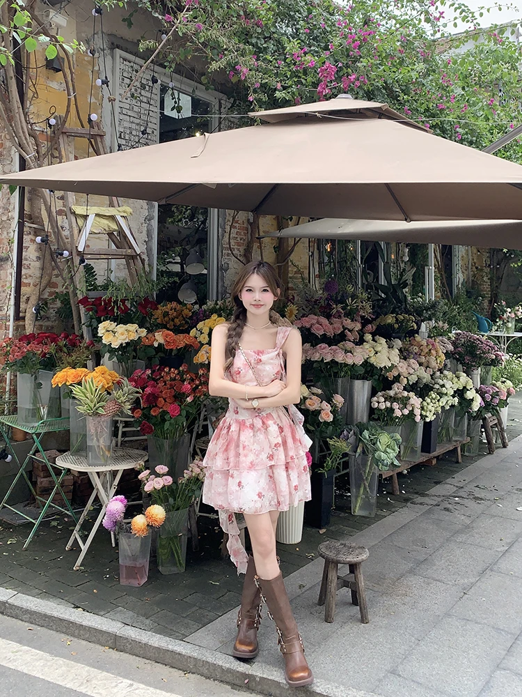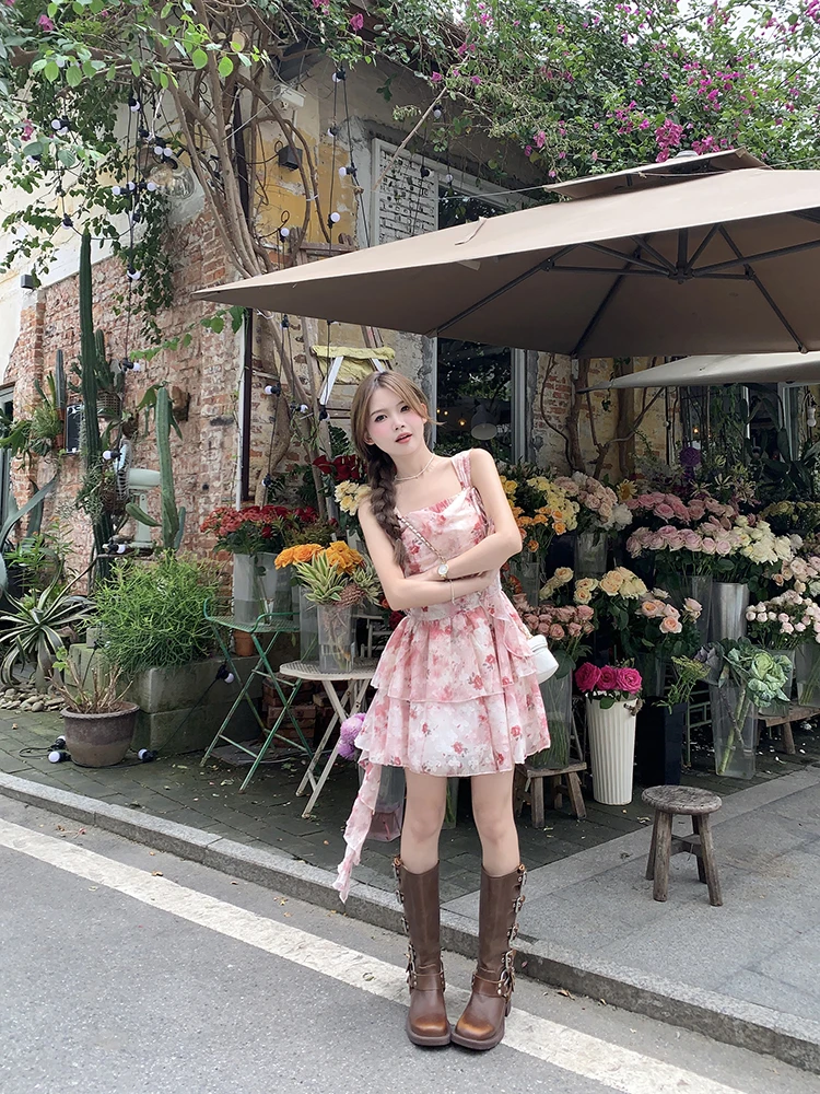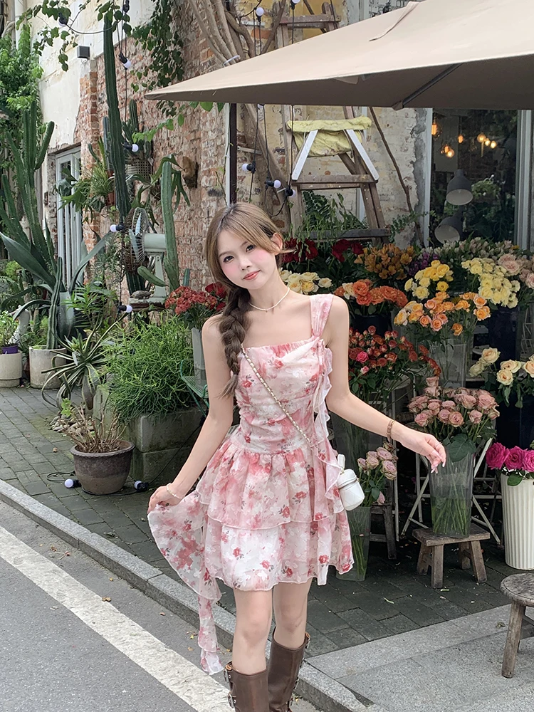 DAIIIBABYYY  -  Summer New French Floral Holiday Beach Y2k Irregular Dresses Women Fashion Elegant Camisole Dress Sweet Evening Party Prom Gown