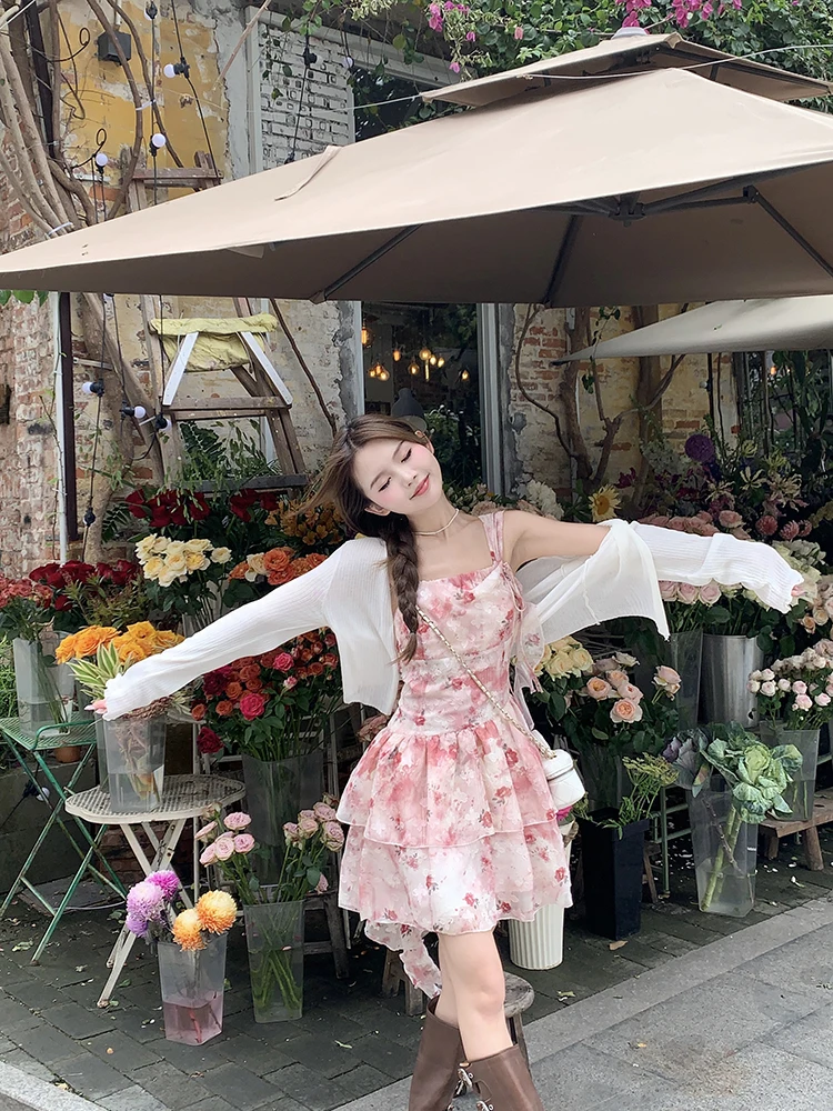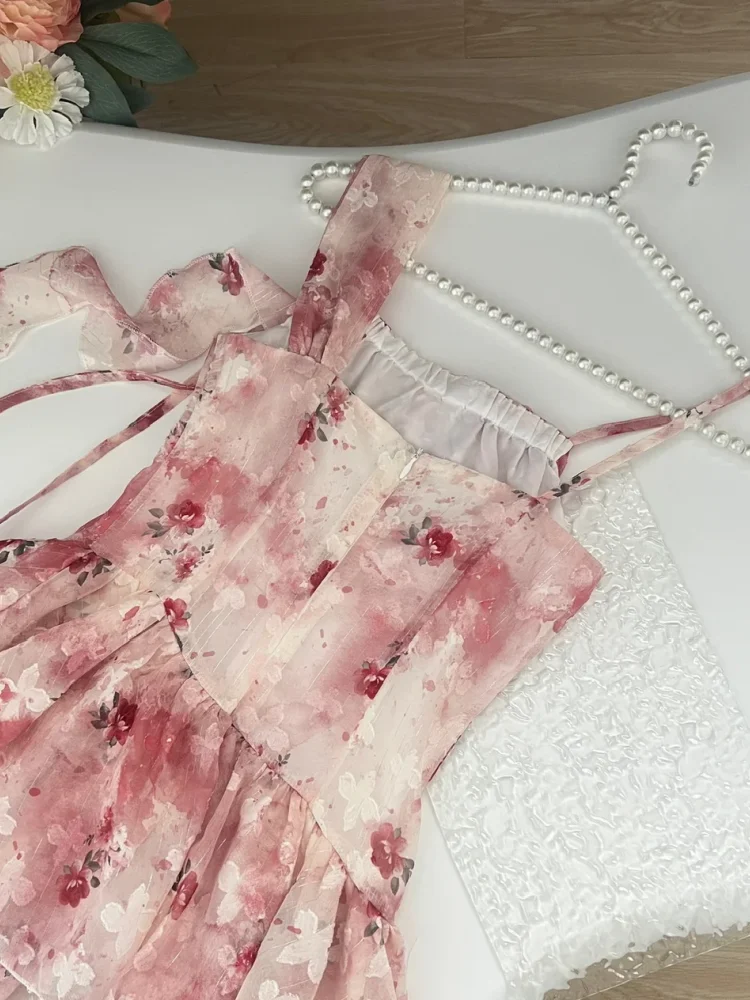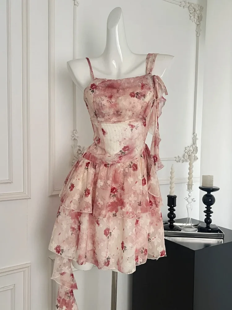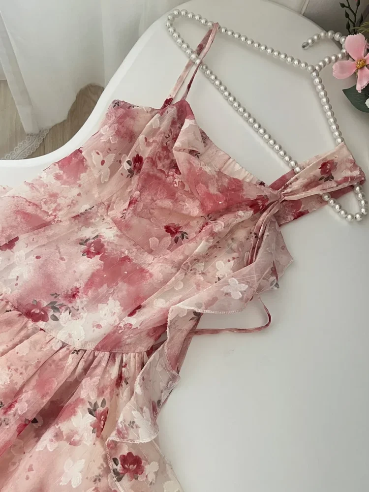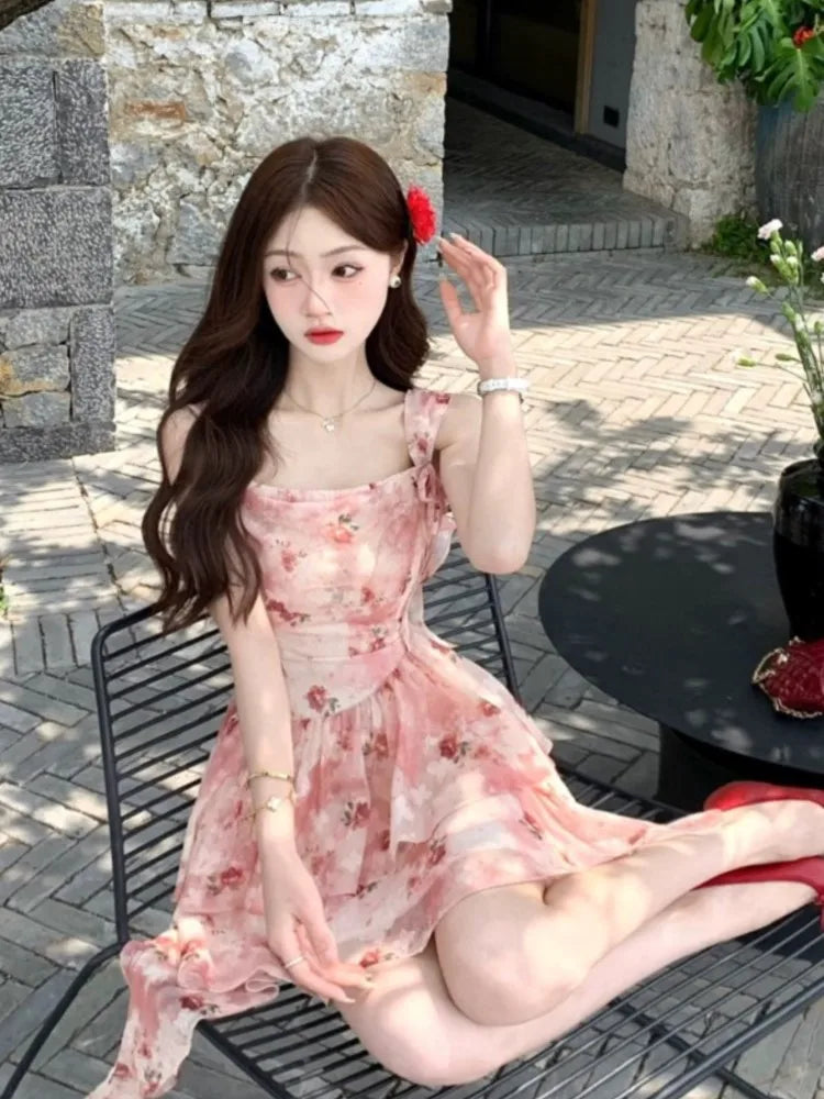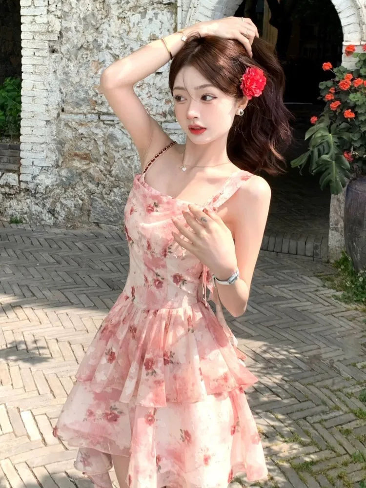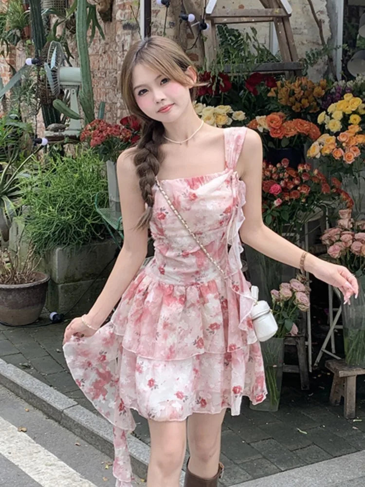 DAIIIBABYYY - Summer New French Floral Holiday Beach Y2k Irregular Dresses Women Fashion Elegant Camisole Dress Sweet Evening Party Prom Gown