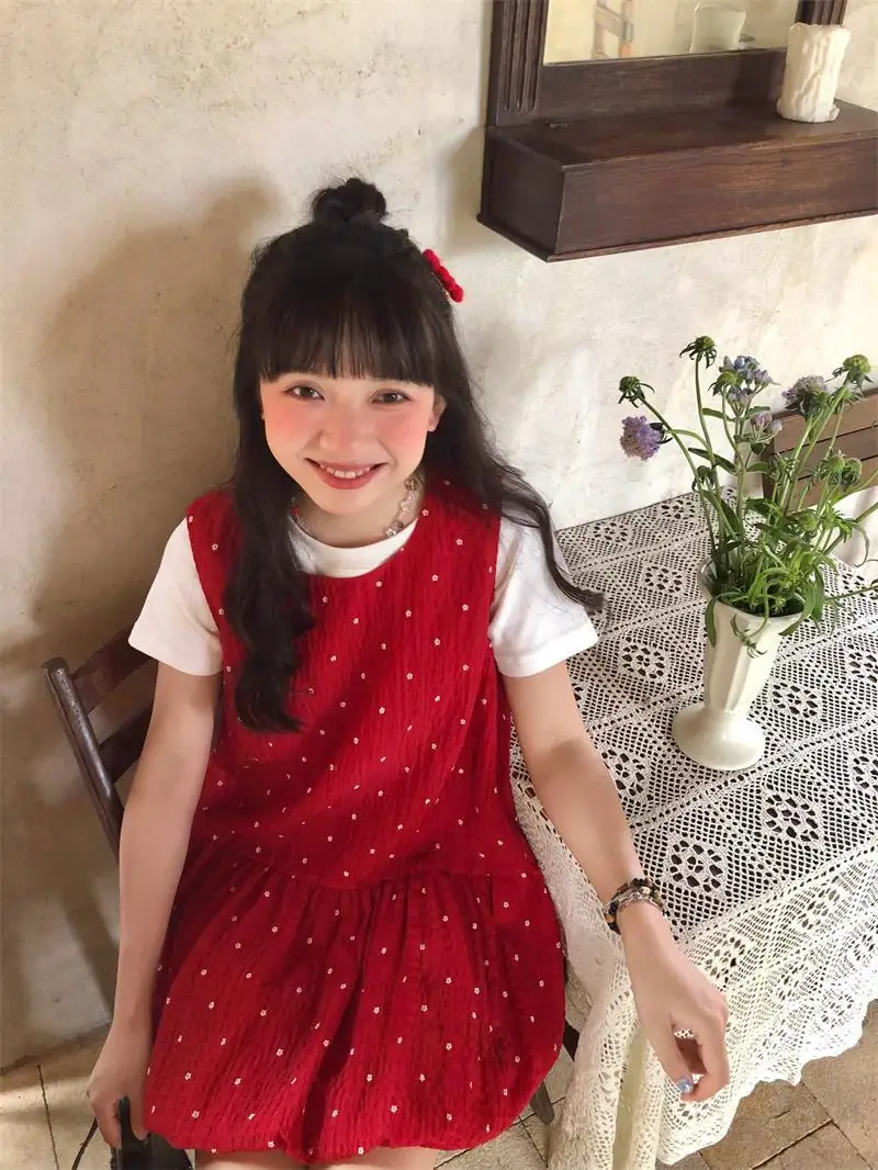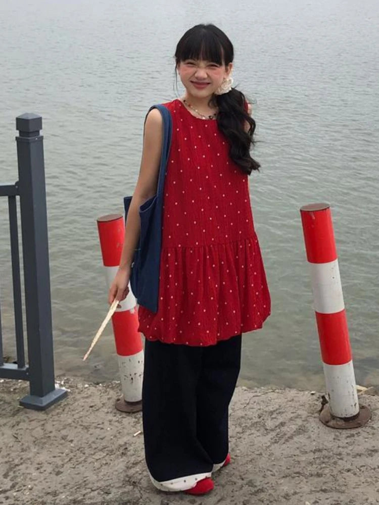 DAIIIBABYYY - Summer Printing Sleeveless Tank Dress Women Vintage Harajuku Sweet Mini Dresses Y2k Aesthetic Pleated Cute Grunge Vestidos