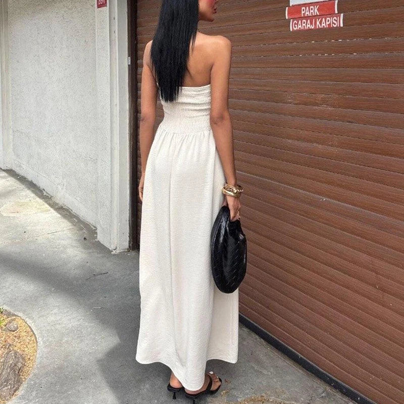Daiiibabyyy Summer Sexy Sleeveless Draped Women Dress 2025 New Casual Backless Party Dresses Elegant Strapless Hight Waist Solid Long Dress
