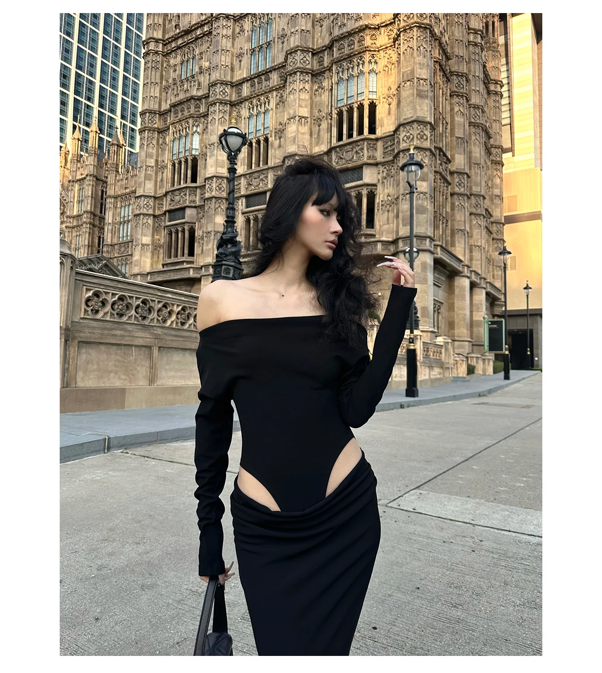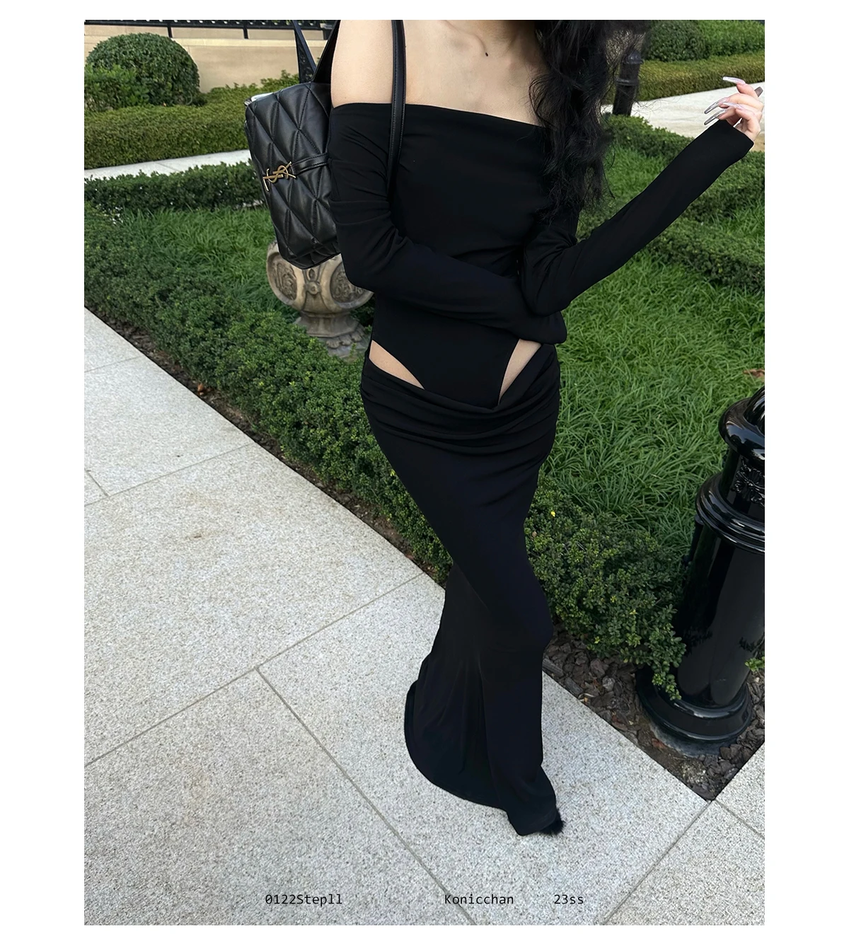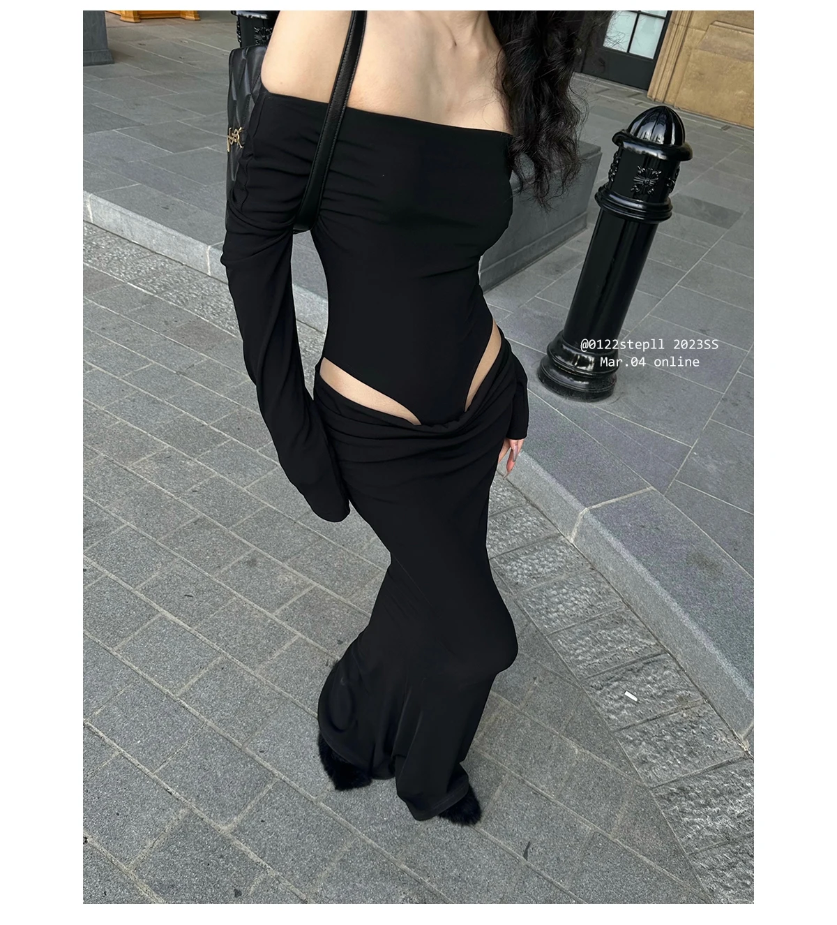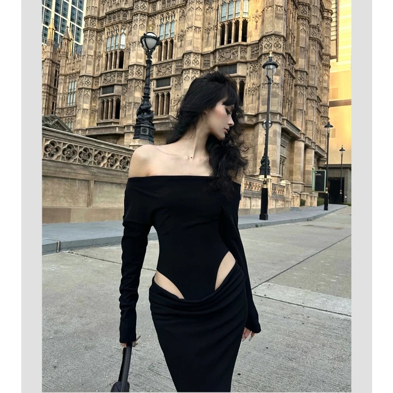 DAIIIBABYYY - Summer Womens Black Sexy Dress Strapless Hollow Out Europe and America Fashion Luxury Spicy Girl Female NEW Long Dress