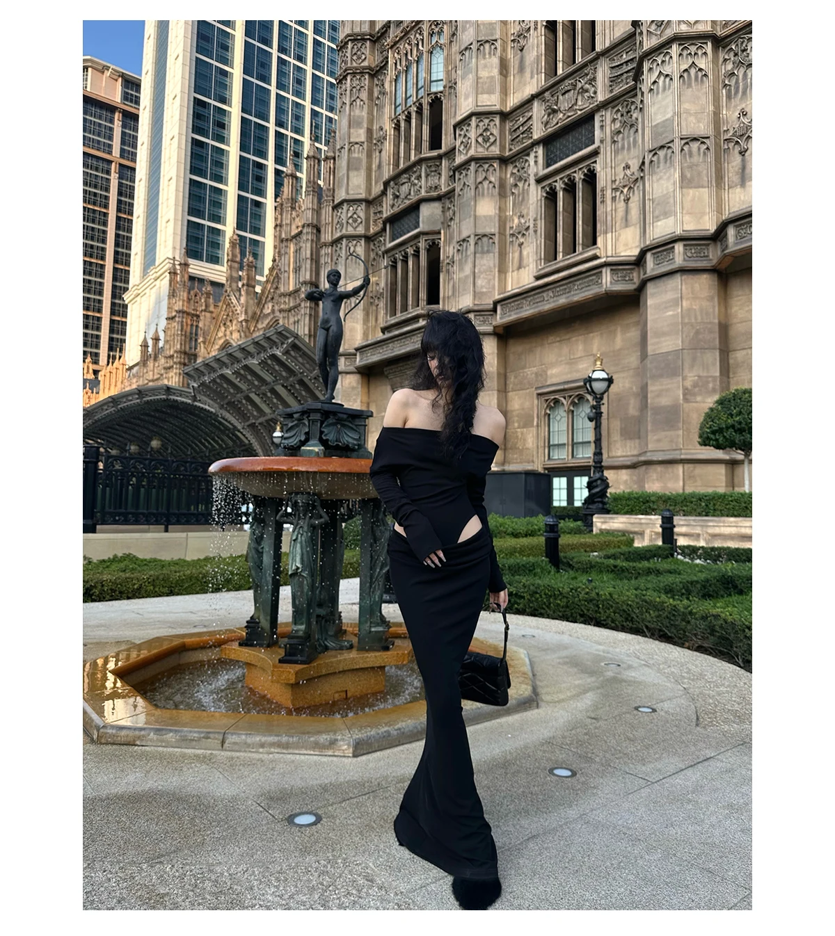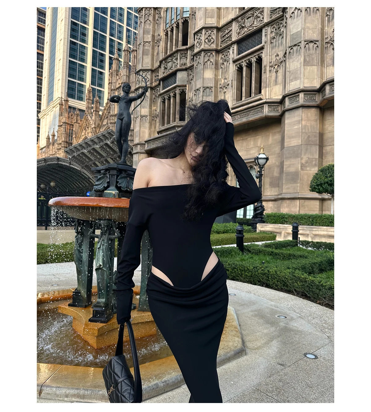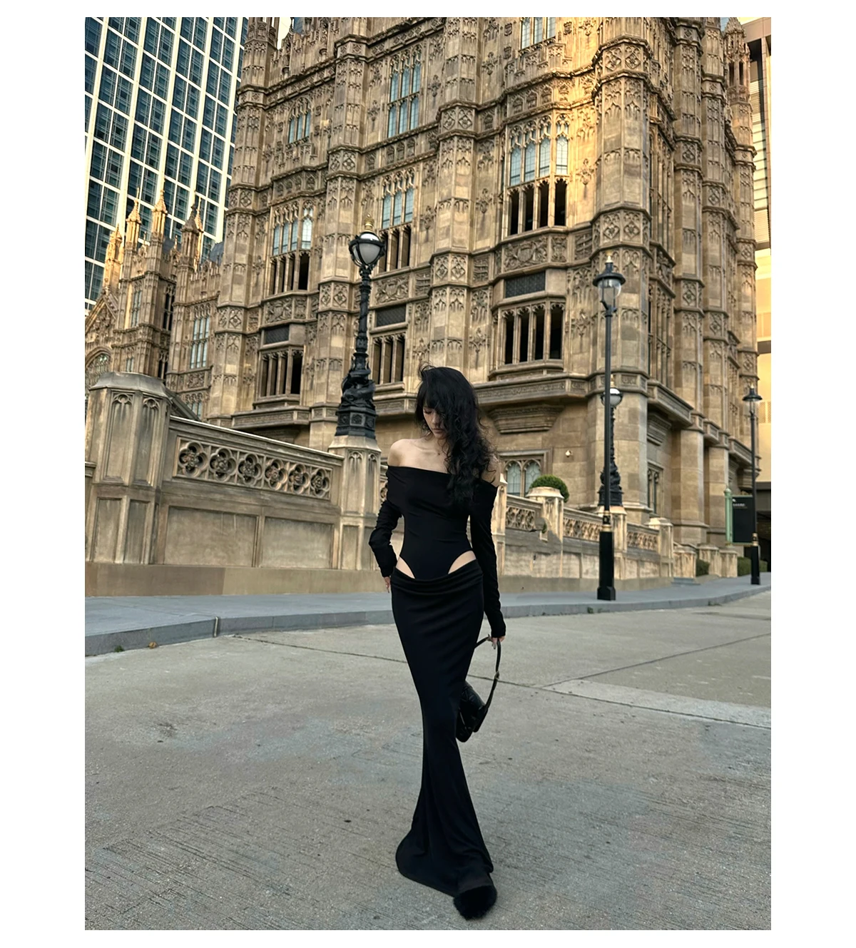 DAIIIBABYYY - Summer Womens Black Sexy Dress Strapless Hollow Out Europe and America Fashion Luxury Spicy Girl Female NEW Long Dress