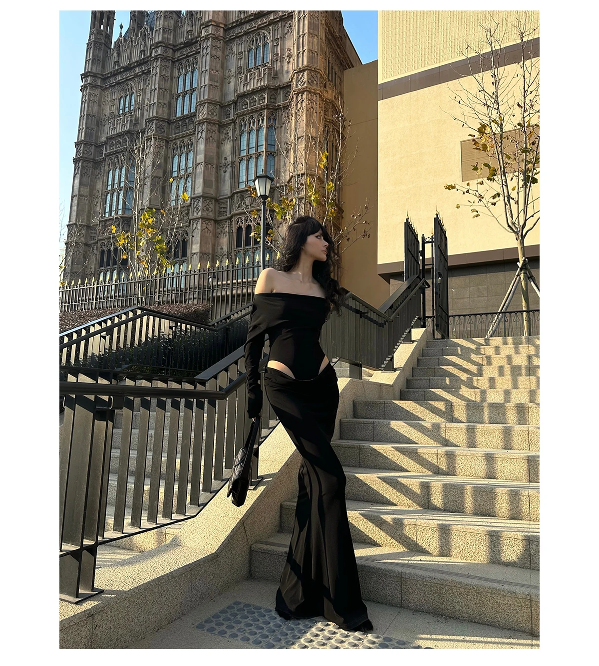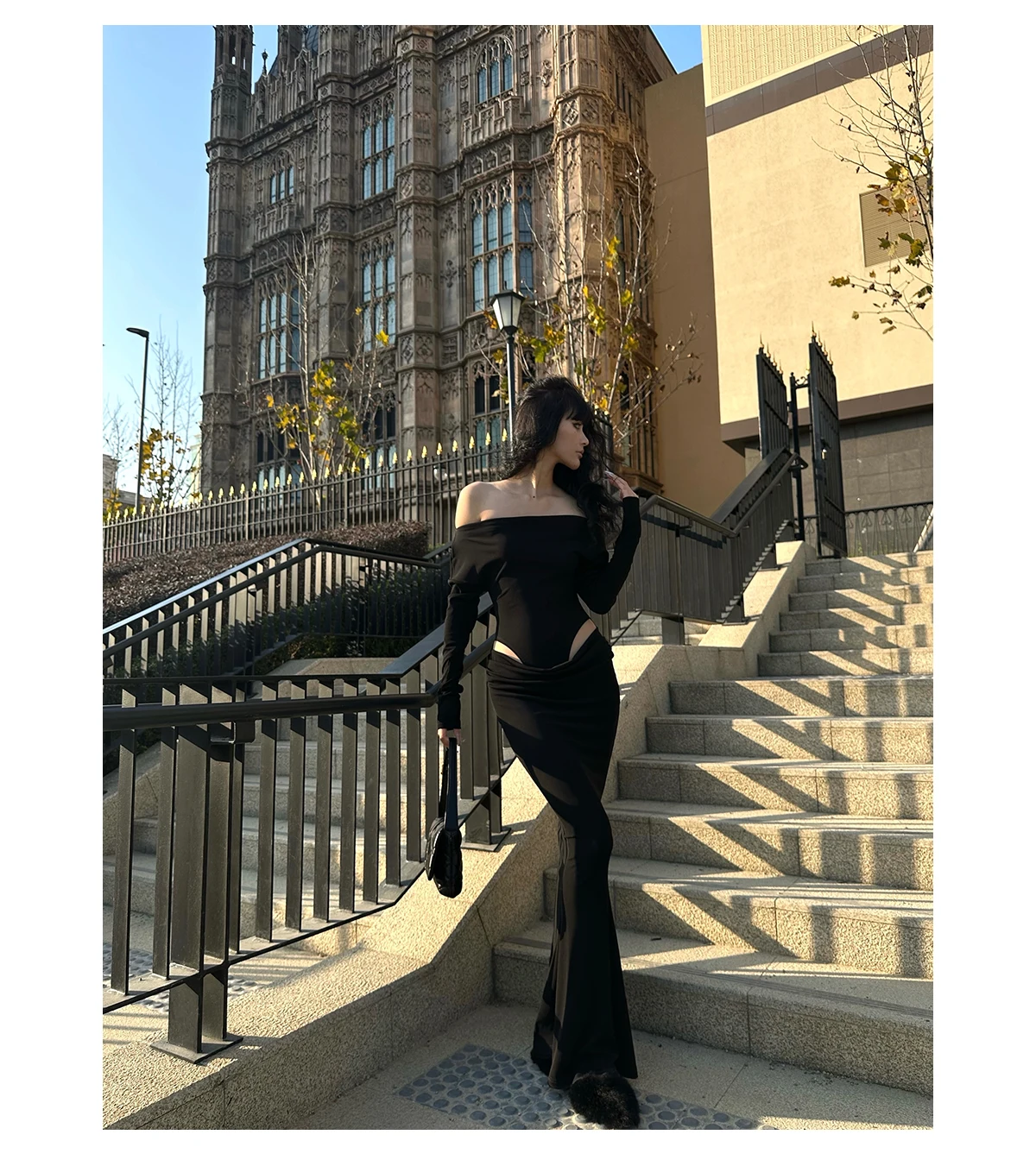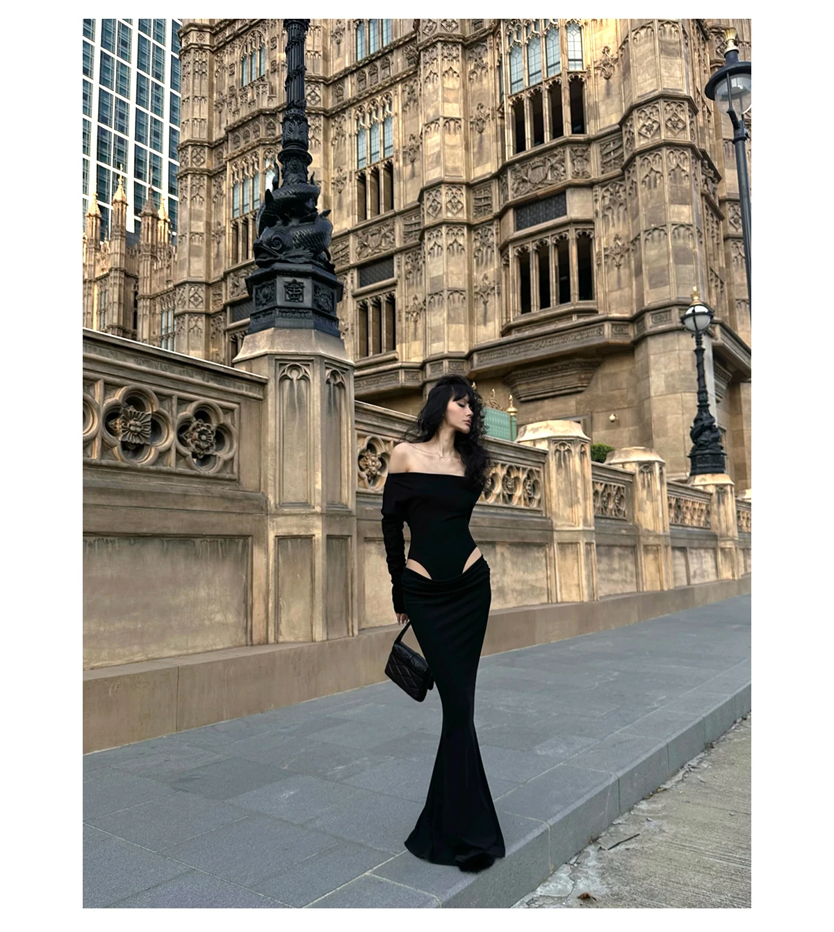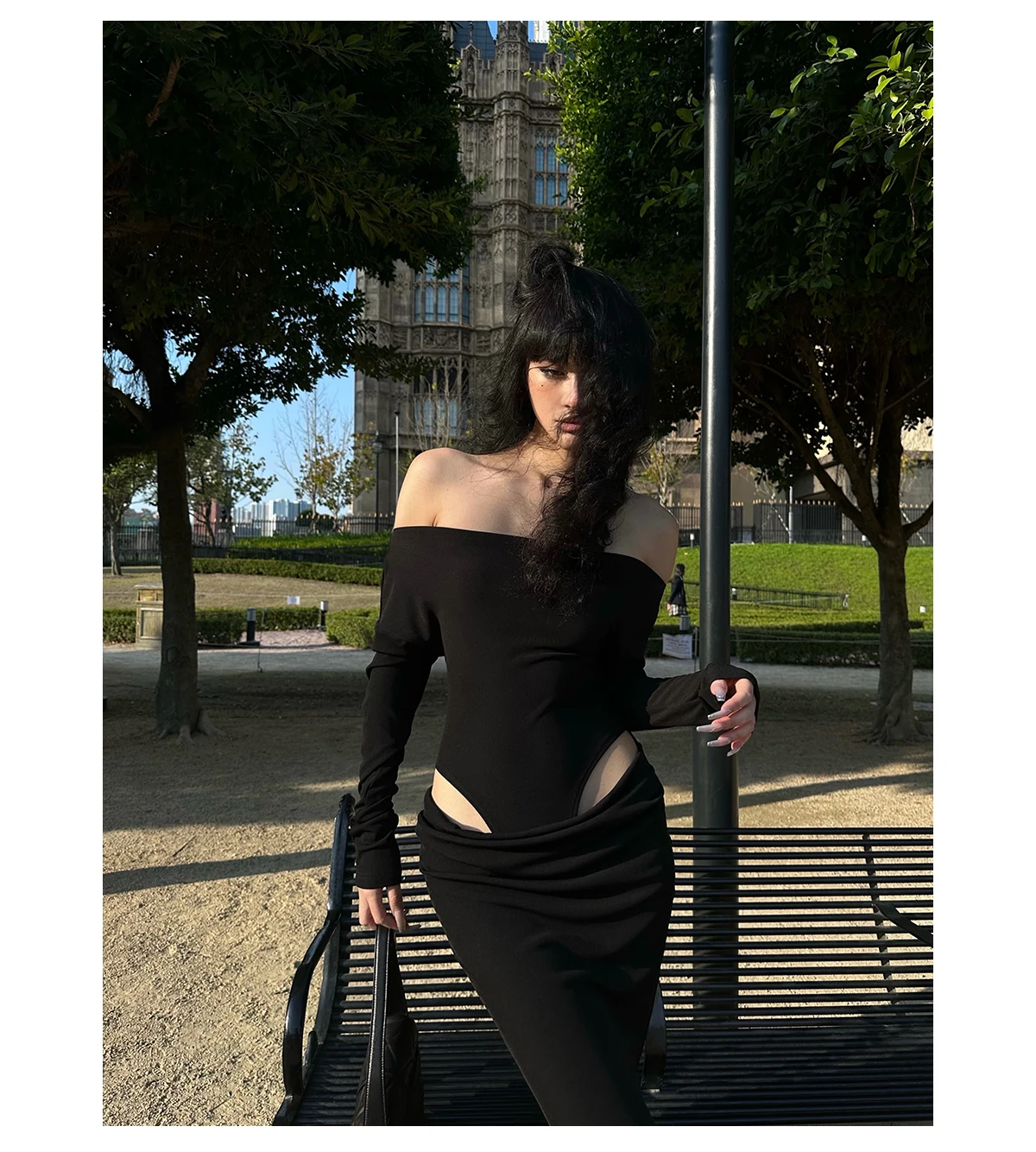 DAIIIBABYYY - Summer Womens Black Sexy Dress Strapless Hollow Out Europe and America Fashion Luxury Spicy Girl Female NEW Long Dress