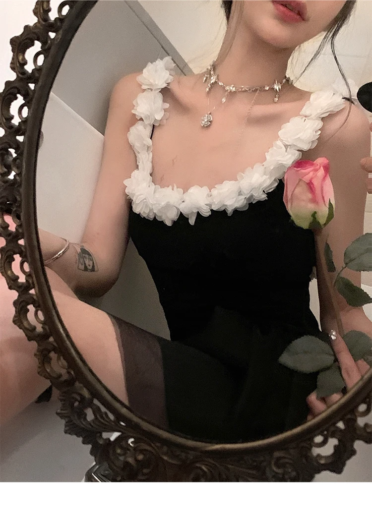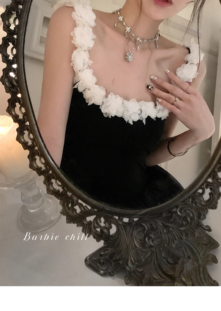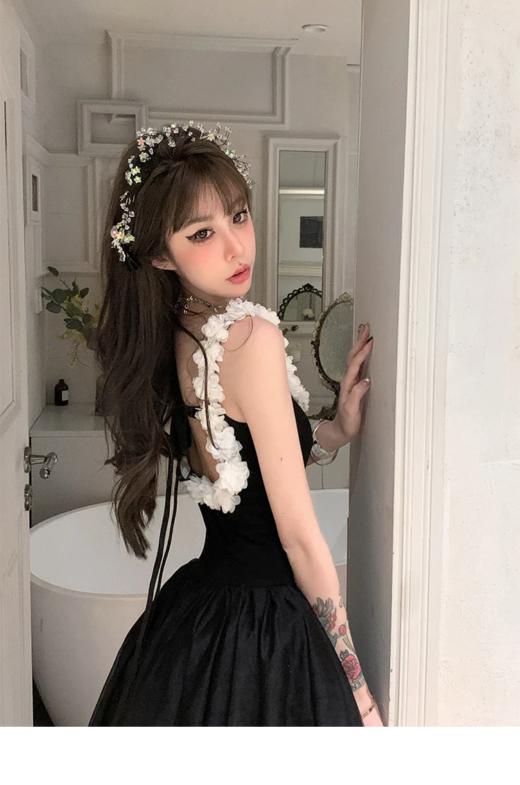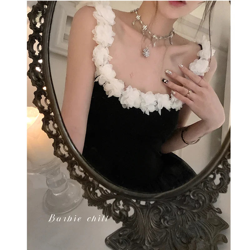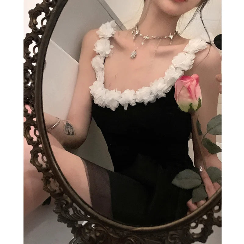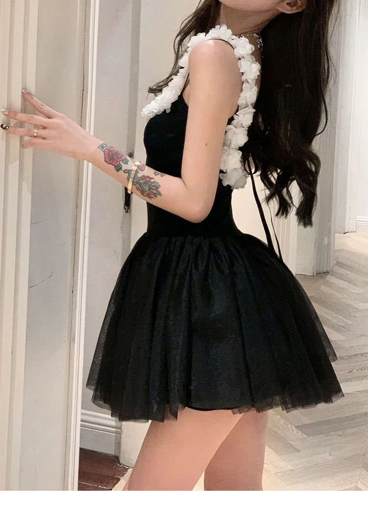 DAIIIBABYYY - Summer Women's Black Straps Dress Sexy Square Neck High Level Sense Fashion Ballet Wind Suspender Ball Gown Short Skirt Dress