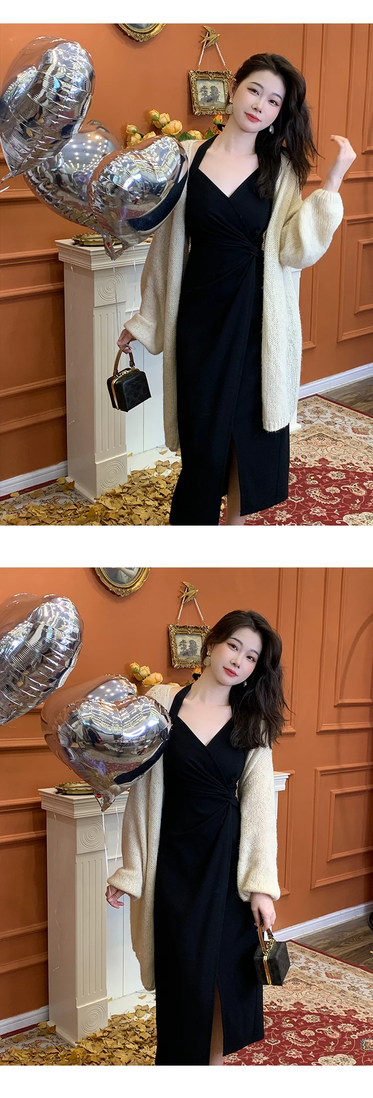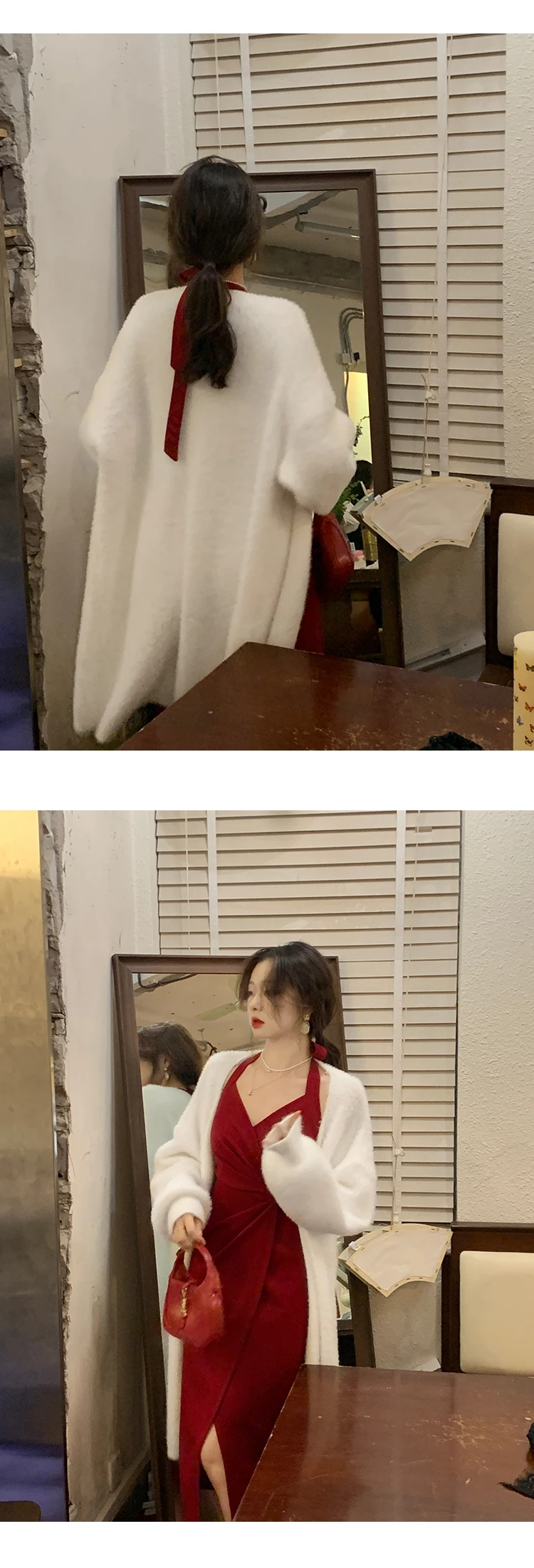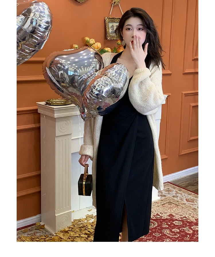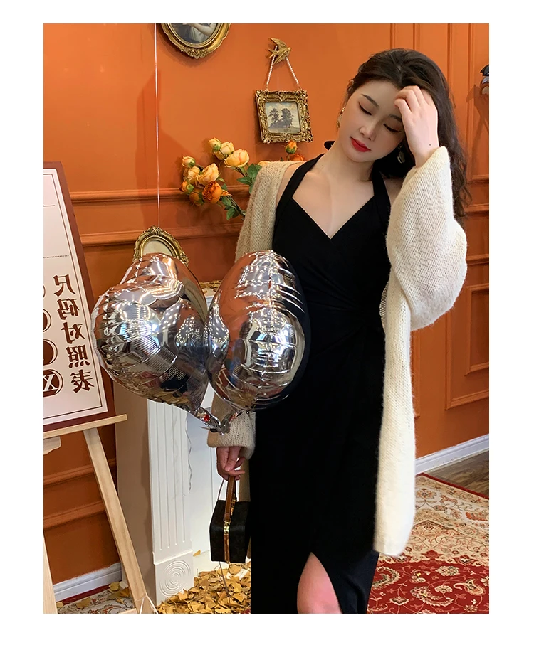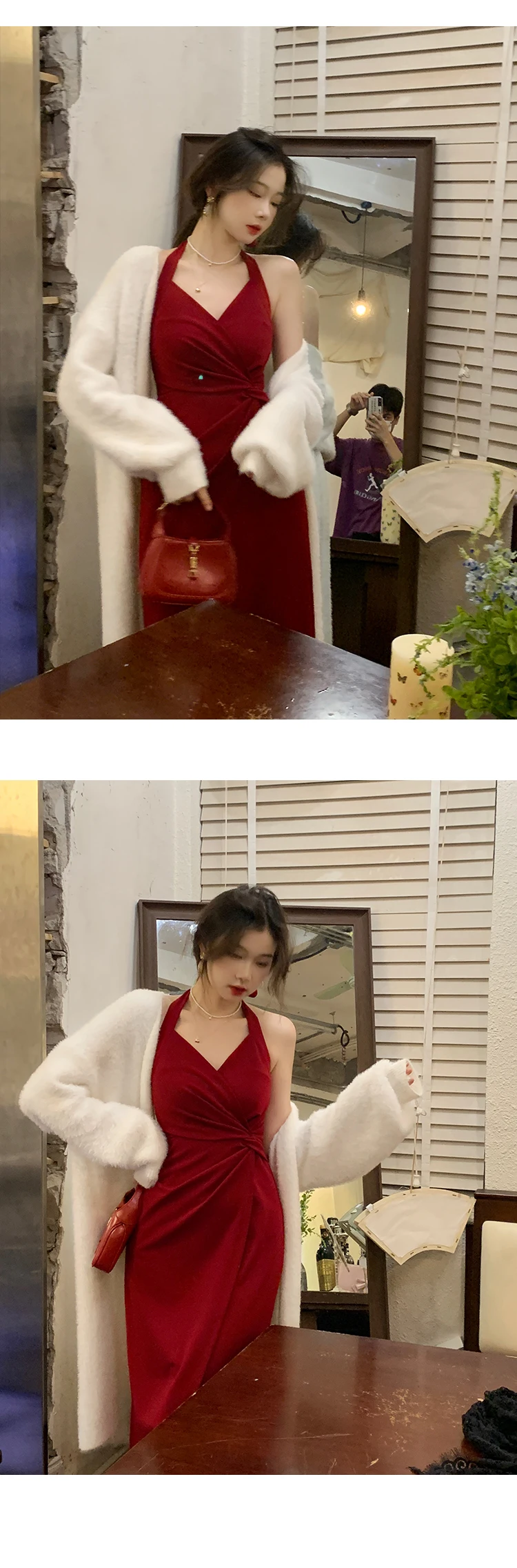 DAIIIBABYYY - Summer Womens Red Dress Straps Dress Sleeveless Sexy New Chinese Style Fashion Suspender Simple Slit Skirt Hanging Neck Dress