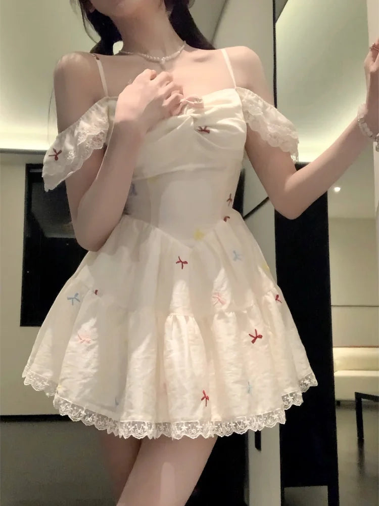 DAIIIBABYYY - Sweet Hot Girl Pure Sexy Slim Dress Women's Summer Off Shoulder Slash Neck Slim Fit A-line Short Dress Fashion Female Clothes