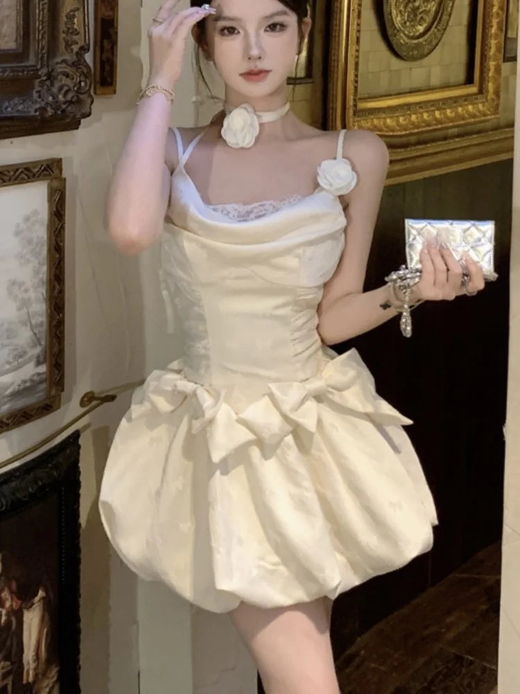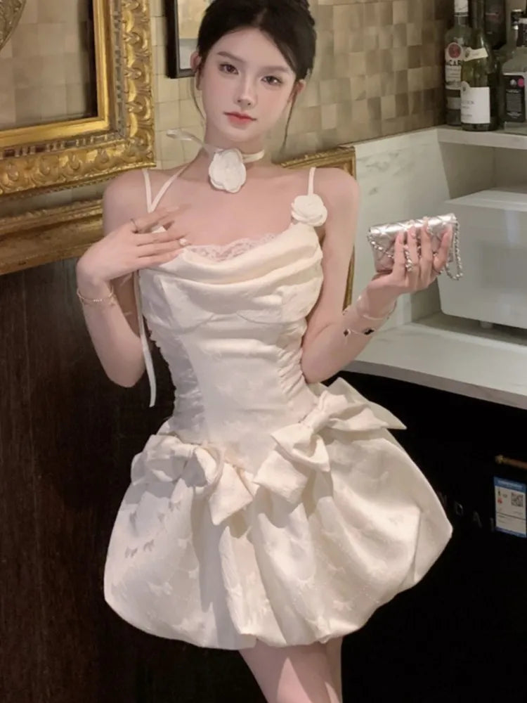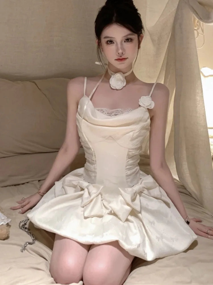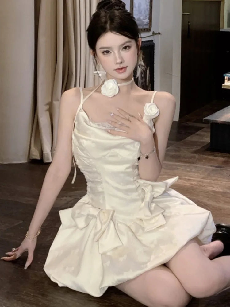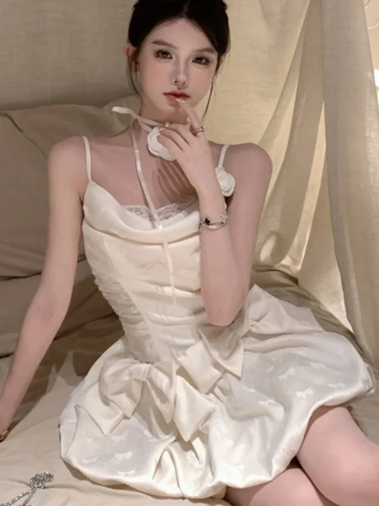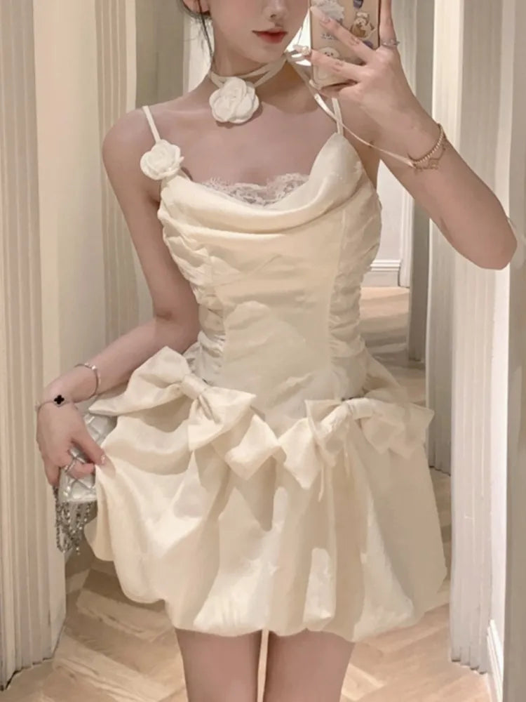 DAIIIBABYYY  -  Sweet Spaghetti Strap Mini Dress for Women Chic Tie Flower Bow Party Dresses Summer Spring Fashion Female Vestidos New Outfits